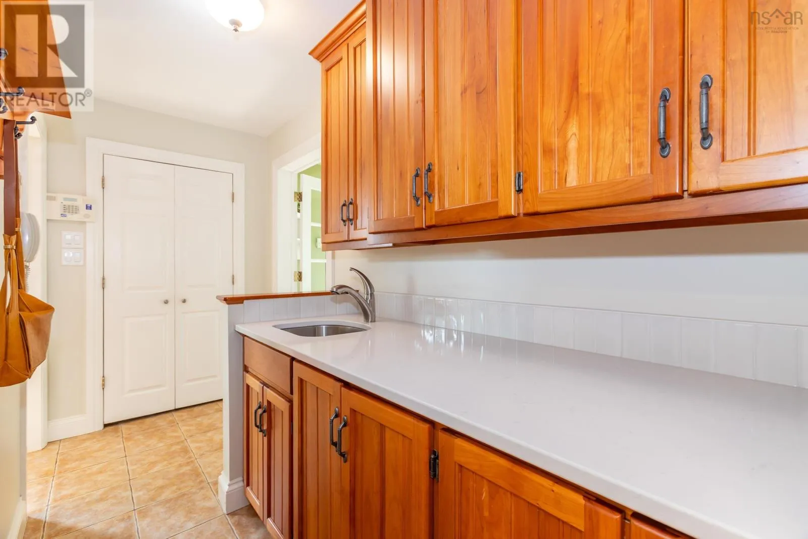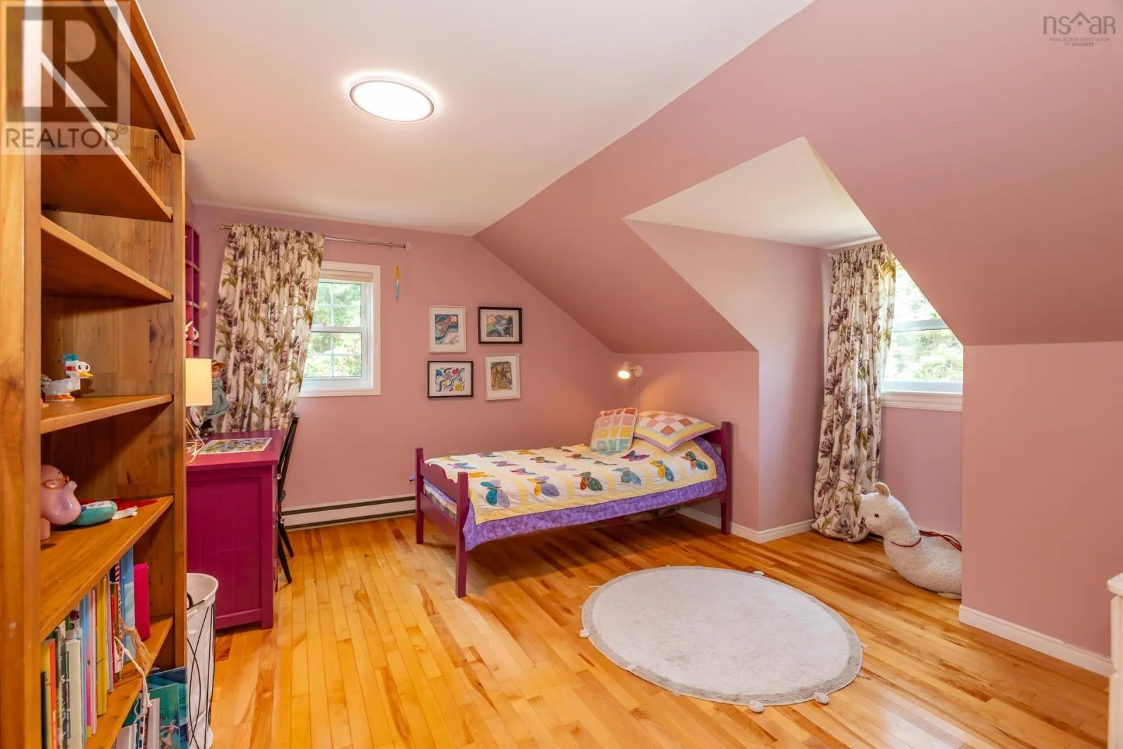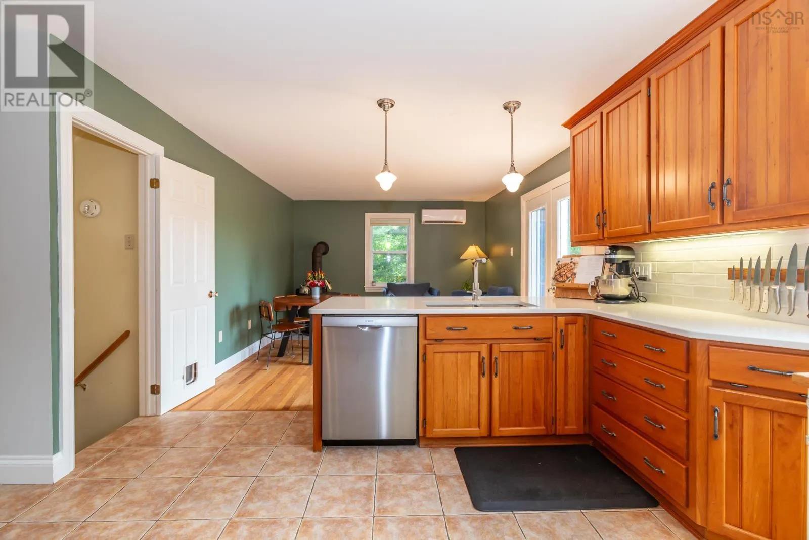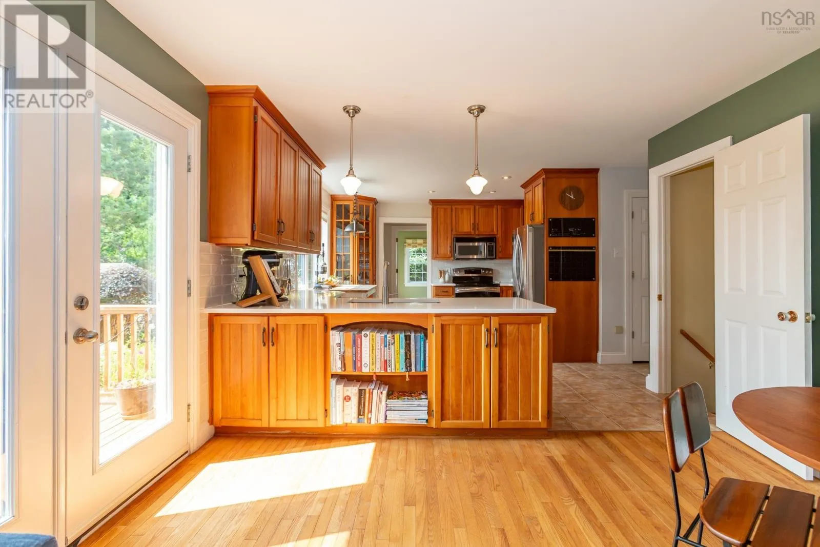 Hwy 1 in to Granville Road, to North Street - house is on South side of street Set well back from the road on an exceptionally private 1.8-acre lot with picturesque views of the Annapolis Basin, this custom Cape offers both a quiet refuge and the connection of village life. Invisible from the street yet served by municipal utilities, the property is located in sought-after Granville Ferry, just minutes from Annapolis Royal and within walking distance of the elementary school. Built in 1990 by a respected local builder, the home is solidly constructed and thoughtfully updated. The main level features refinished hardwood floors and a generous layout with formal living and dining rooms, a full bath, a pantry with wash station, and a large kitchen fitted with DeCoste cherry cabinetry, quartz countertops, and custom tile. The kitchen opens to a cozy family room with wood stove and patio doors leading to a two-level deck that extends the living space outdoors. Heat pumps provide efficient year-round comfort. Upstairs, the primary bedroom has been enhanced with a new picture window that draws in natural light and frames the water view. Floors here have also been refinished. A dedicated walk-in closet room offers ample storage for the household. Two additional bedrooms and a full family bath complete the upper level. The lower level includes a walkout to the garden, a laundry area, workshop, and a finished room suited for a home office or studio. Outdoors, the lot is larger than typical for the area and remarkably private, bordered by mature trees and landscaped with perennial gardens, foundation plantings, and a productive vegetable patch. Peaceful and green, the property feels tucked away yet lies just minutes from the shops, markets, and galleries of Annapolis Royal. (id:27476)
