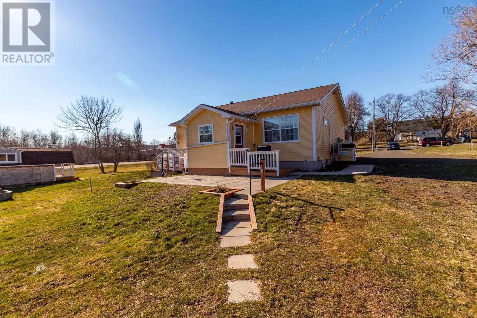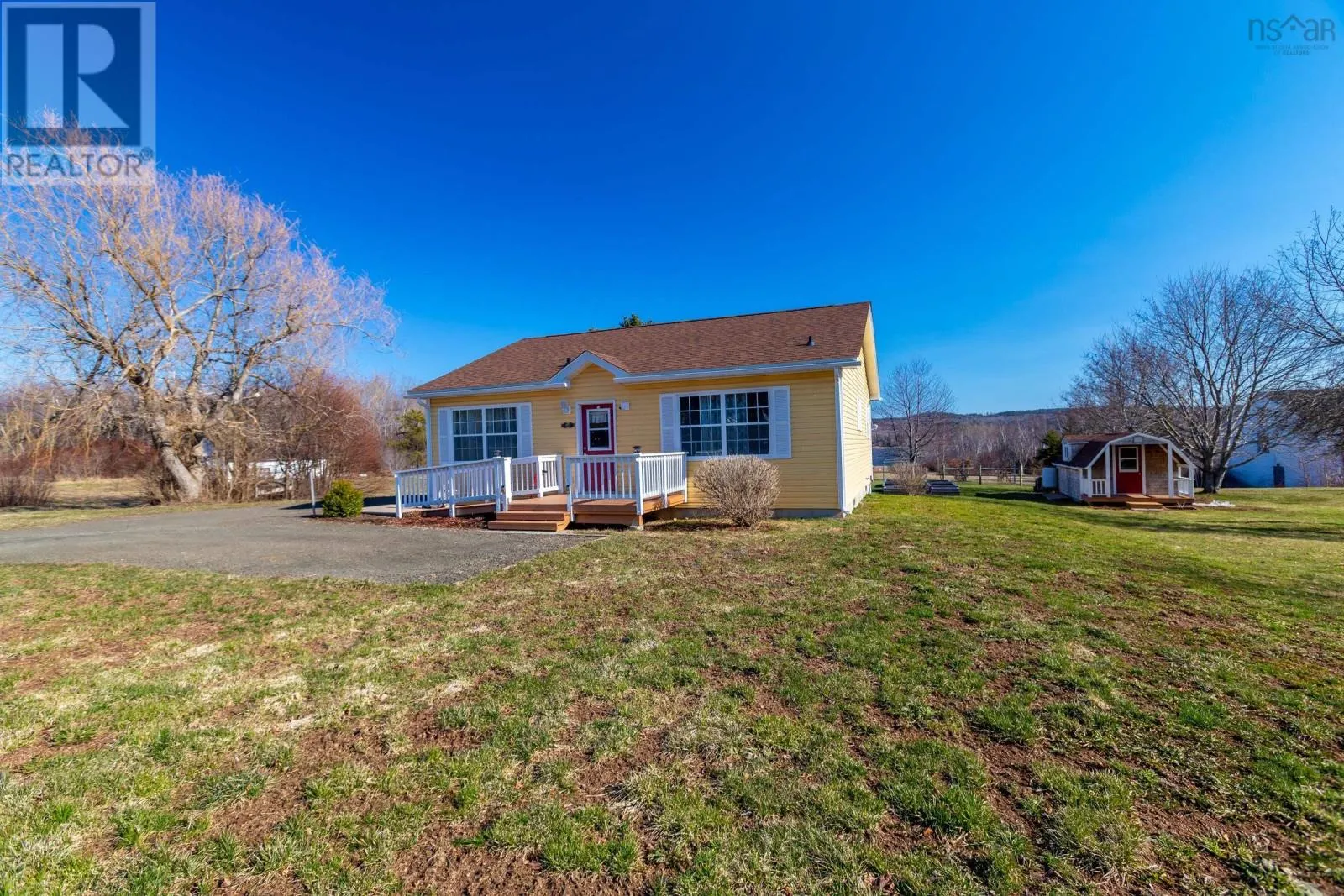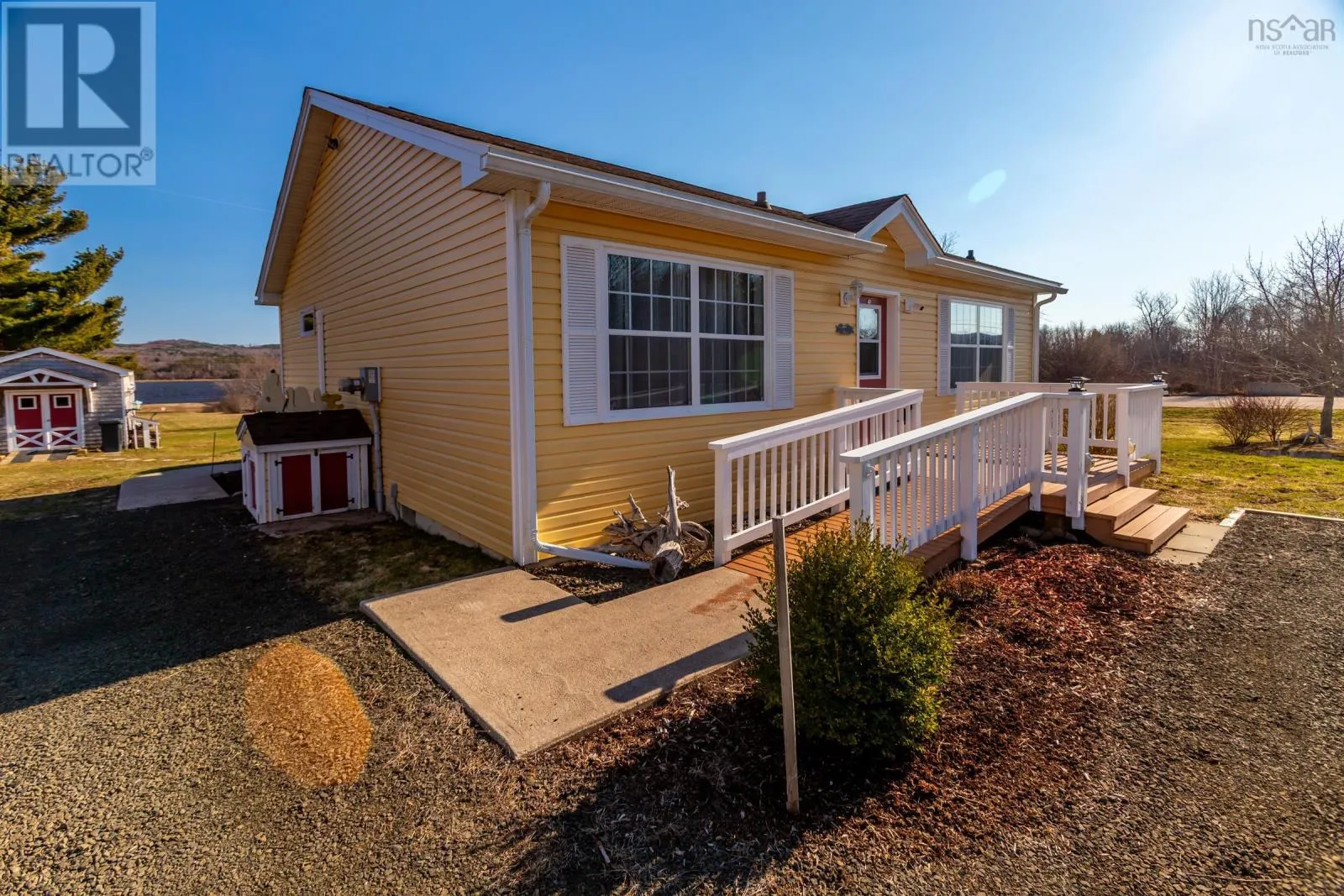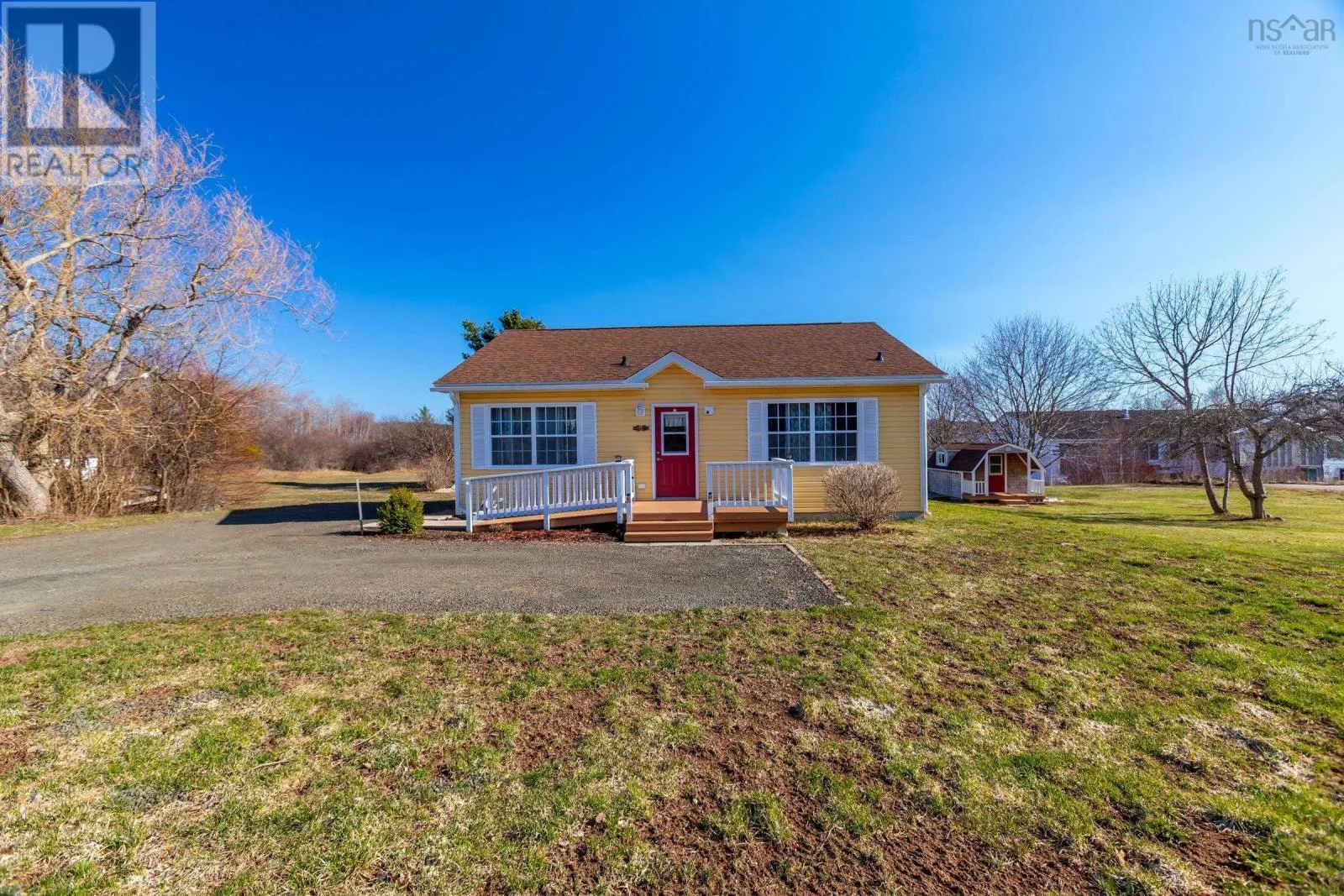From Highway 1, take Granville Road west. Property will be on the left. Discover your private oasis on the shores of the Annapolis Basin. This seven-year old, maintenance free bungalow offers a rare blend of modern comfort and breathtaking natural beauty, perfect as a sophisticated retirement retreat or high-quality starter home. Designed for accessibility, the home features a front-door ramp and three-foot-wide doorways. The sun-drenched, open-concept interior is anchored by large windows framing the Basin, seamlessly connecting the eat-in kitchen to a spacious living room. The functional layout includes large entry with a built-in office, two bedrooms with ample storage, a full family bath, and main-floor laundry. A ductless heat pump ensures efficient, year round climate control. The nearly four-acre property is a gardener's dream, featuring raised beds, mature grapevines, a blueberry patch, and two sturdy outbuildings. Near the water's edge, a private viewing platform provides the perfect vantage point to watch the tides and coastal birds. Enjoy peaceful waterfront living just minutes from the culture and amenities of historic Annapolis Royal. Fully serviced with municipal water and sewer, this home offers urban convenience in a serene pastoral setting. Book your private viewing today. (id:27476)