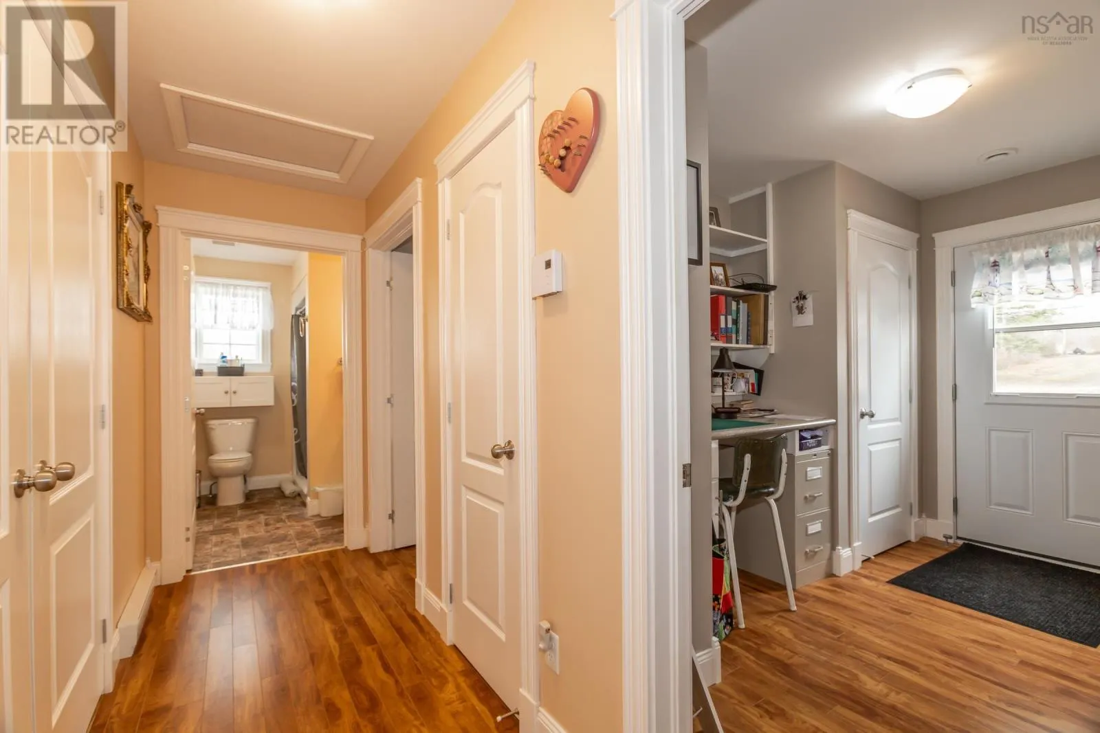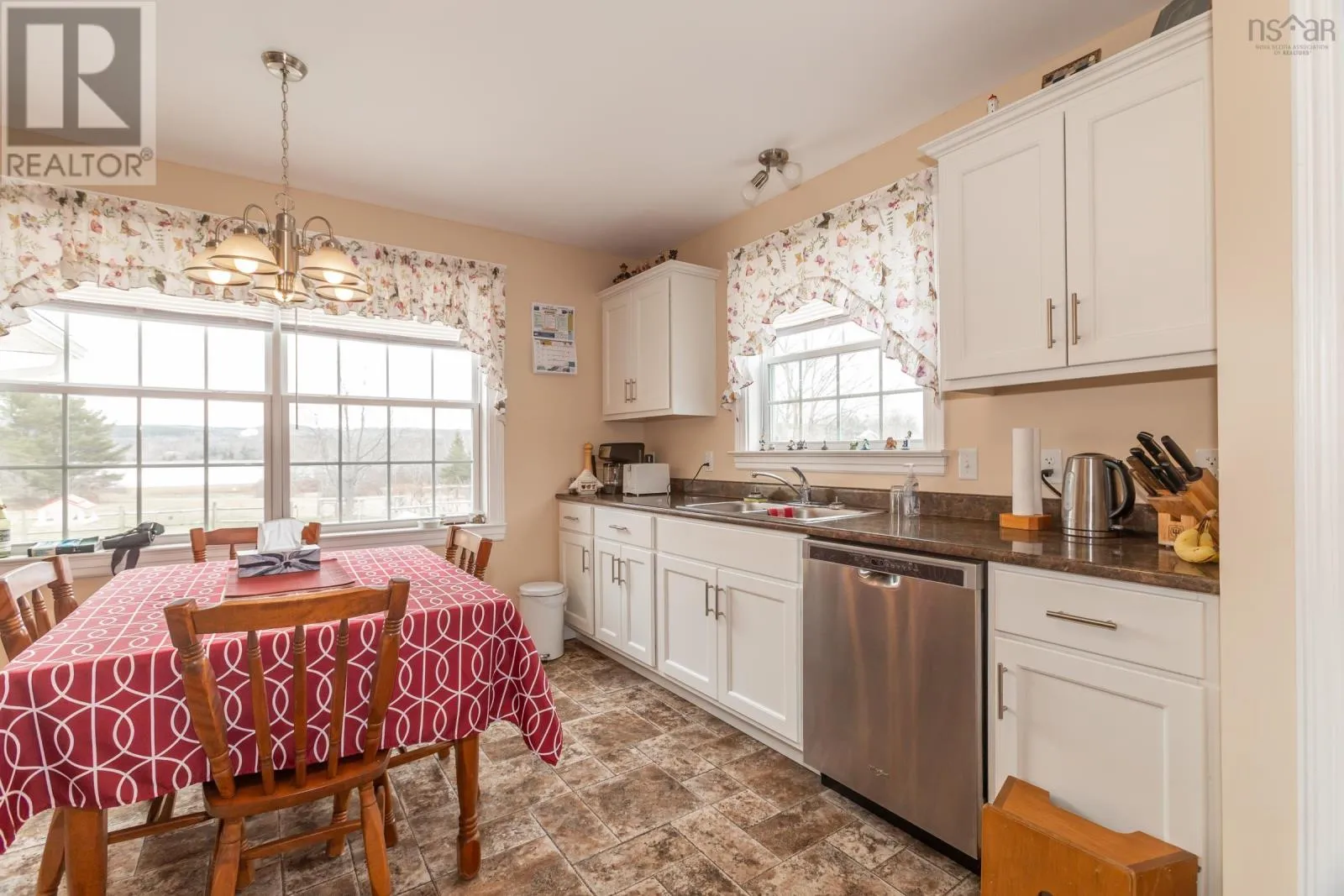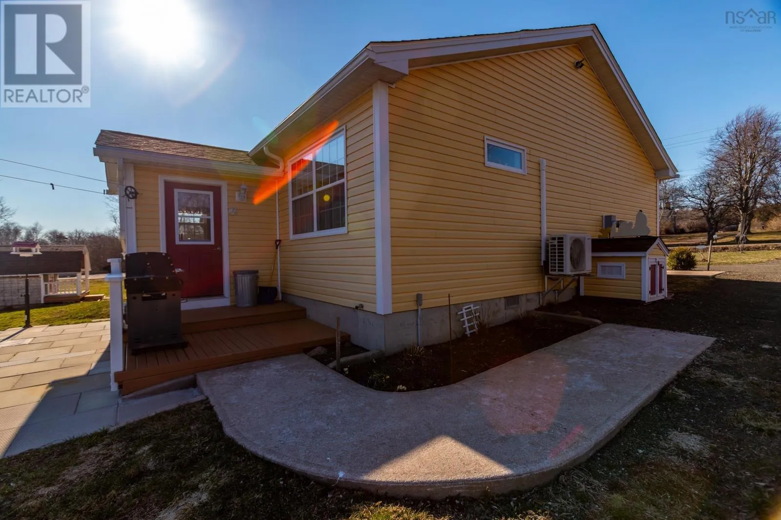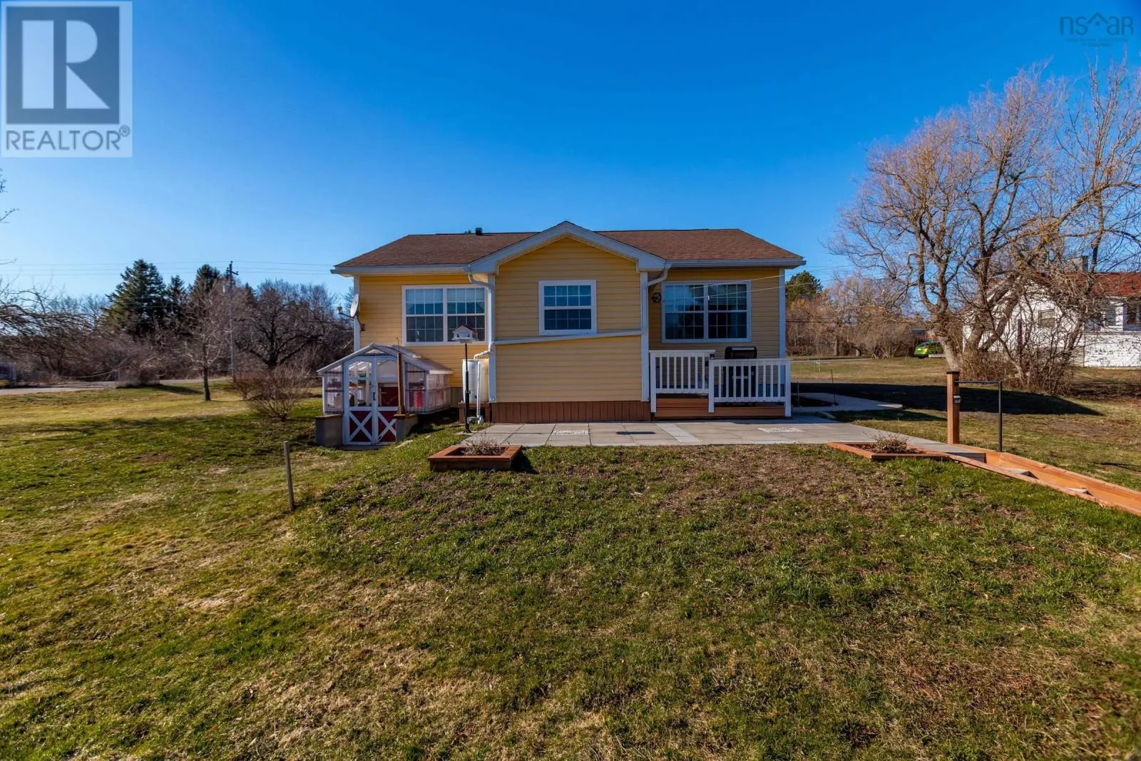 From Highway 1, take Granville Road west. Property will be on the left. Discover your private oasis on the shores of the Annapolis Basin. This seven-year old, maintenance free bungalow offers a rare blend of modern comfort and breathtaking natural beauty, perfect as a sophisticated retirement retreat or high-quality starter home. Designed for accessibility, the home features a front-door ramp and three-foot-wide doorways. The sun-drenched, open-concept interior is anchored by large windows framing the Basin, seamlessly connecting the eat-in kitchen to a spacious living room. The functional layout includes large entry with a built-in office, two bedrooms with ample storage, a full family bath, and main-floor laundry. A ductless heat pump ensures efficient, year round climate control. The nearly four-acre property is a gardener's dream, featuring raised beds, mature grapevines, a blueberry patch, and two sturdy outbuildings. Near the water's edge, a private viewing platform provides the perfect vantage point to watch the tides and coastal birds. Enjoy peaceful waterfront living just minutes from the culture and amenities of historic Annapolis Royal. Fully serviced with municipal water and sewer, this home offers urban convenience in a serene pastoral setting. Book your private viewing today. (id:27476)