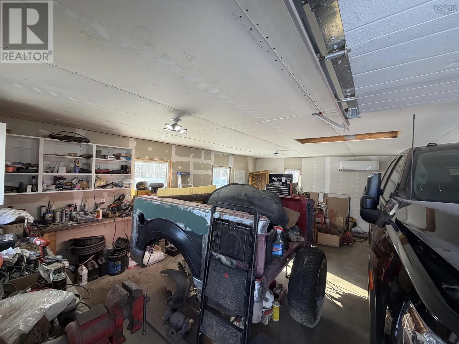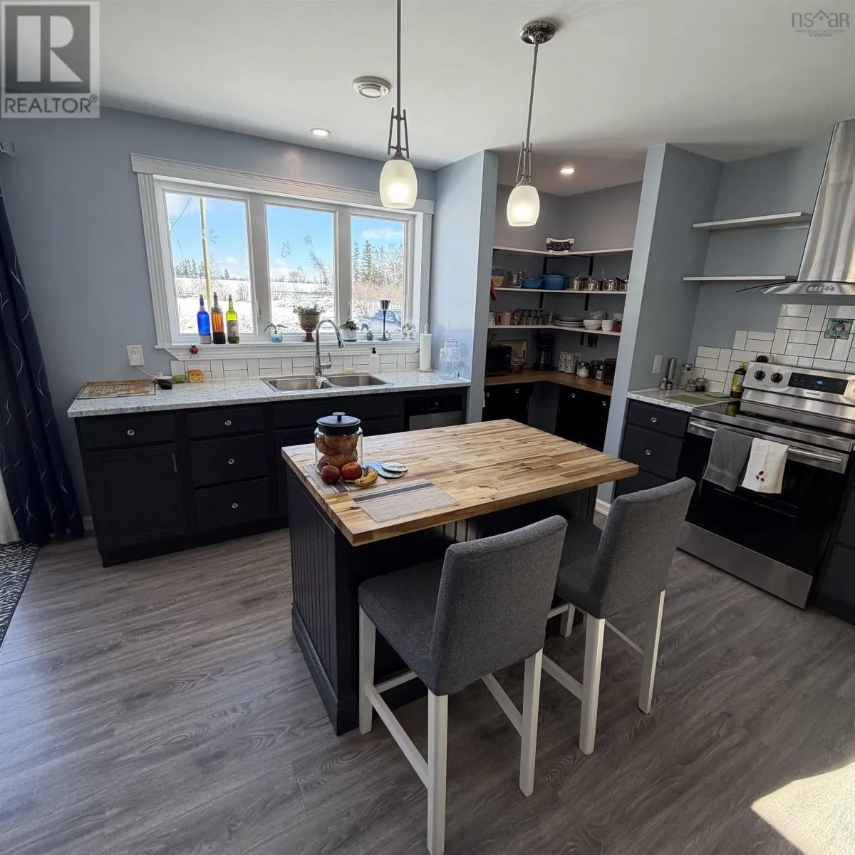 Masstown Market Exit - follow Hwy 4 towards great Village (Hwy 2) Cross Road on the right and look for the real estate sign. Completed in 2021, this 2 bedroom, 2 bath home is set on approximately 2.2 acres of peaceful countryside, offering space to enjoy the outdoors while still being within a convenient drive to local services and Masstown Market. The property features a pond and a welcoming outdoor setup with a deck that leads to a covered pavilion, creating a comfortable place to relax or entertain. Your 24x24 garage is heated by a heat pump and has plenty of room to work on your car or hobby, or just store extra things around the home. Inside, the layout is bright and practical, with an open main living area designed for everyday living. The kitchen includes a central island and flows easily into the dining and living spaces. The living room is accented with built-in shelving and an electric fireplace for added comfort. A side entry provides access near the laundry area, a helpful feature for busy households. The primary bedroom looks out over the backyard and includes its own ensuite bath with a tiled walk-in shower. A second bedroom and a full main bathroom offer flexibility for family, guests, or workspace needs. Generator panel for power outages will keep your home running, a newer front deck, and large shed in the rear of the property are additional highlights. This property offers the benefits of modern construction and country living. (id:27476)