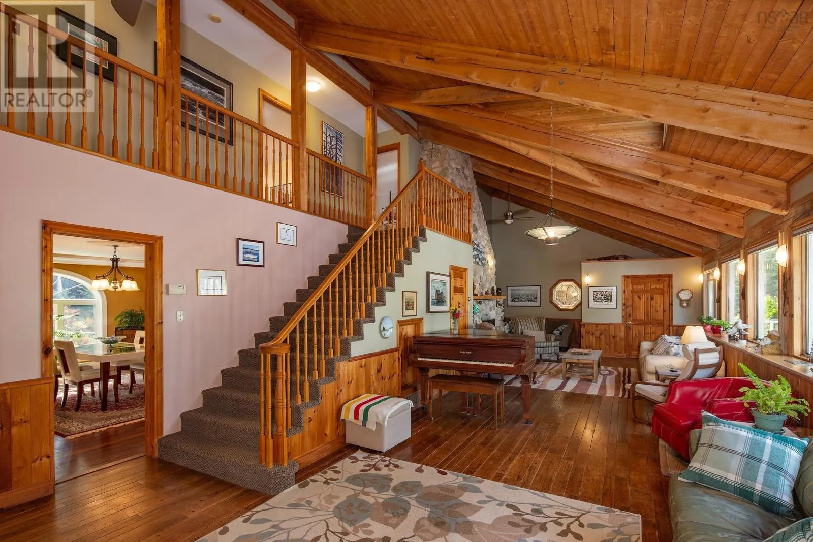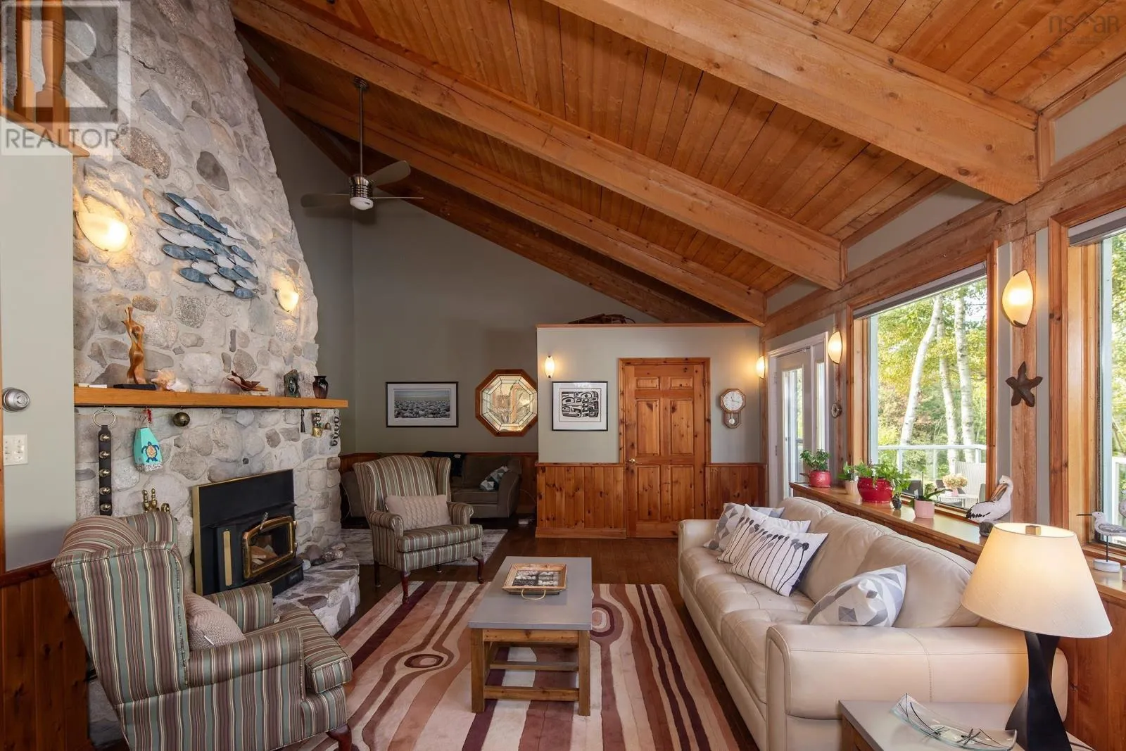 Highway 103 to Exit 5 (Tantallon). Take Highway 333 to Hacketts Cove. Turn left on Bremner Drive. The property is on the left, Civic #20. 20 Bremner Drive is truly one of a kind. This remarkable home in picturesque Hackett's Cove defies the ordinary, blending artistry, space, and natural beauty in equal measure. Just 35 minutes from Halifax, it sits between the beauty of the Atlantic and the serenity of the forest. The home's 47-foot vaulted great room is nothing short of spectacular, with oak pegged floors, massive beams, and a hand-laid beachstone fireplace rising to the ceiling. The custom kitchen, anchored by a Moroccan marble-topped island, was built for those who love to cook and connect. Every corner reveals thoughtful details and craftsmanship rarely found today. Upstairs, three bedrooms include a serene primary suite with ensuite bath, while the main-level sunroom offers a peaceful, year-round link to the outdoors. Step outside to a two-tier cedar deck, custom pizza oven, gazebo, and hot tub - perfect for gathering or unwinding in total privacy. The adjacent lot is also available to purchase. A home as distinctive as its setting. Viewings by appointment - discover it for yourself. (id:27476)