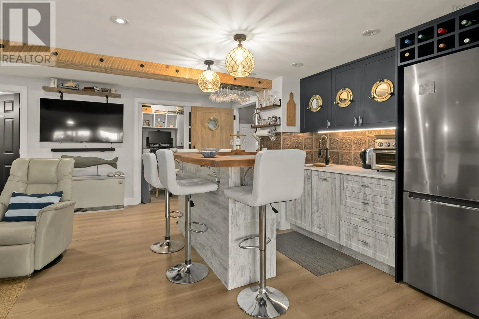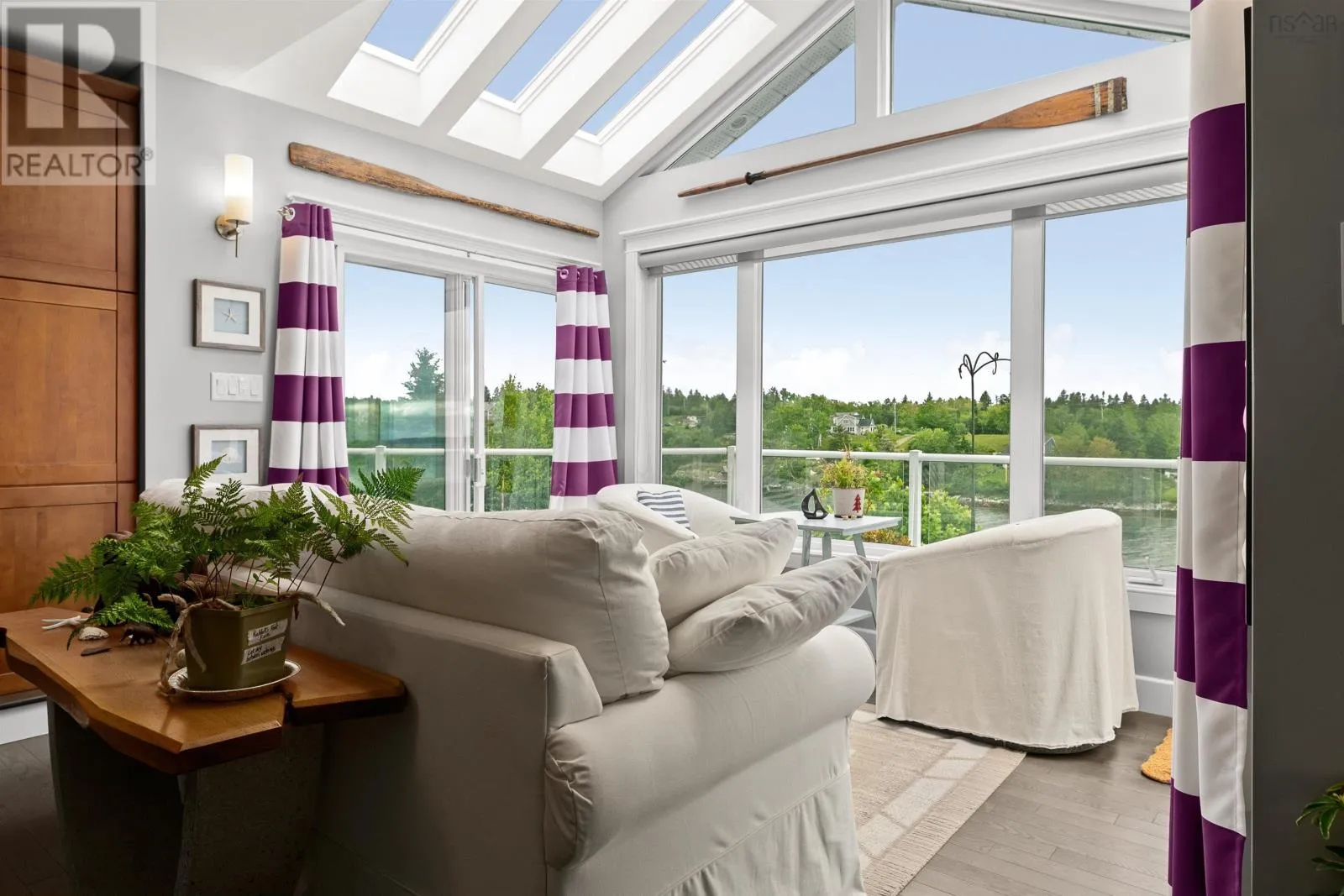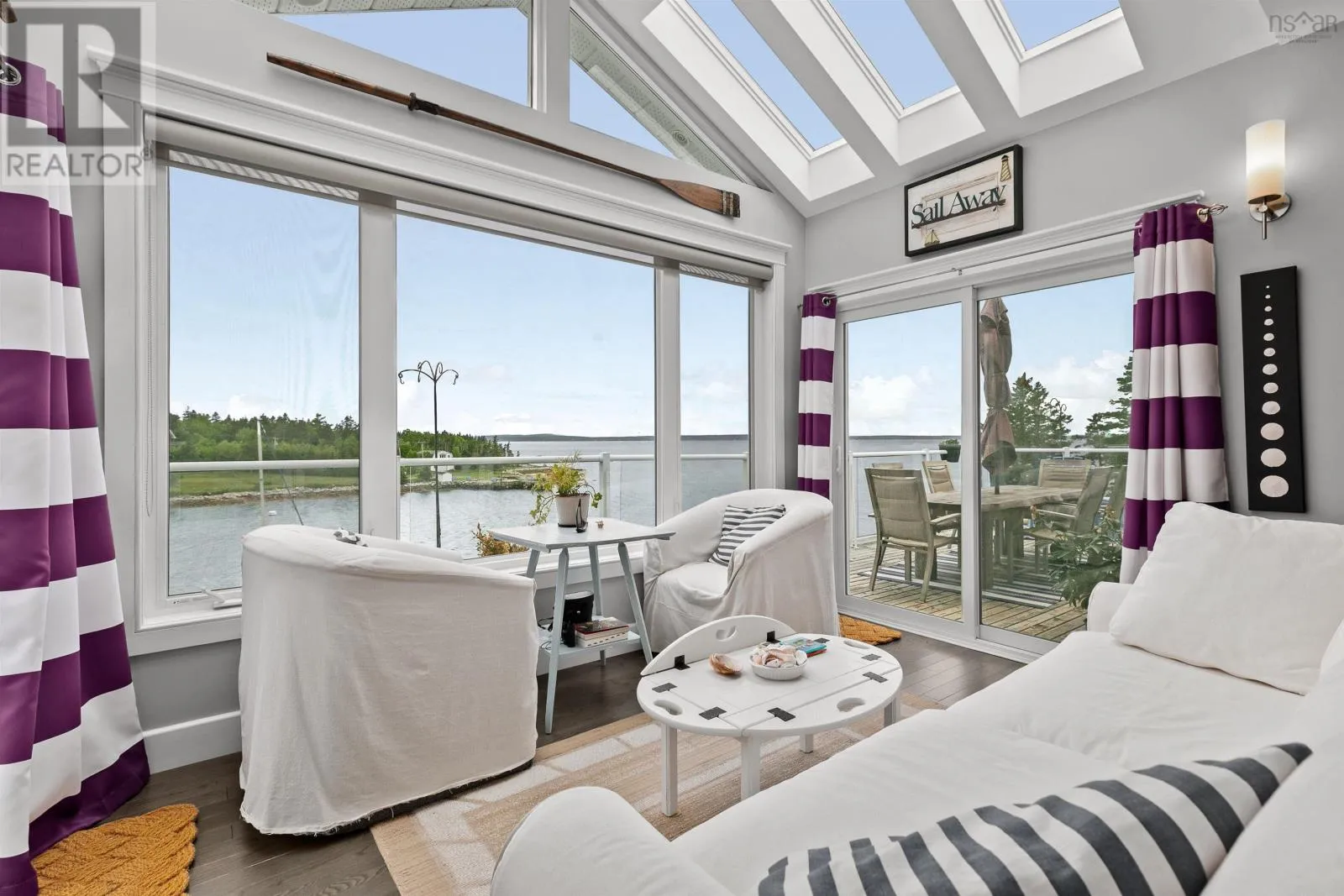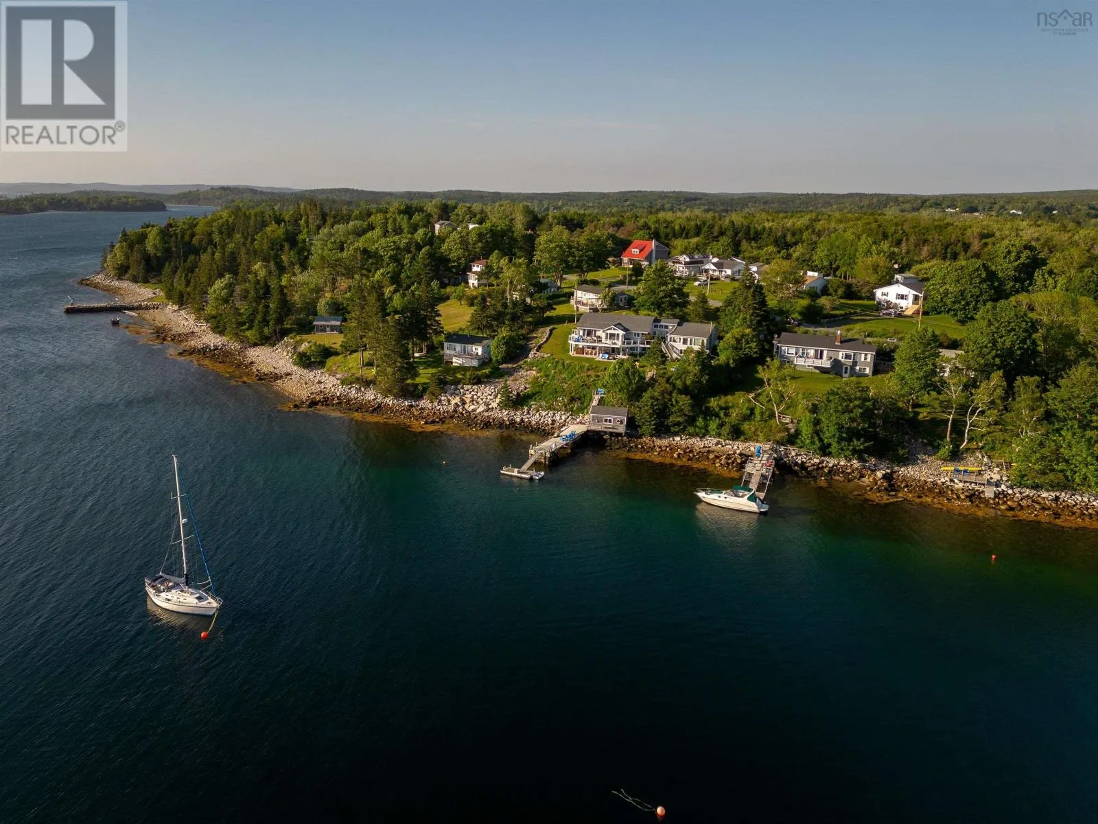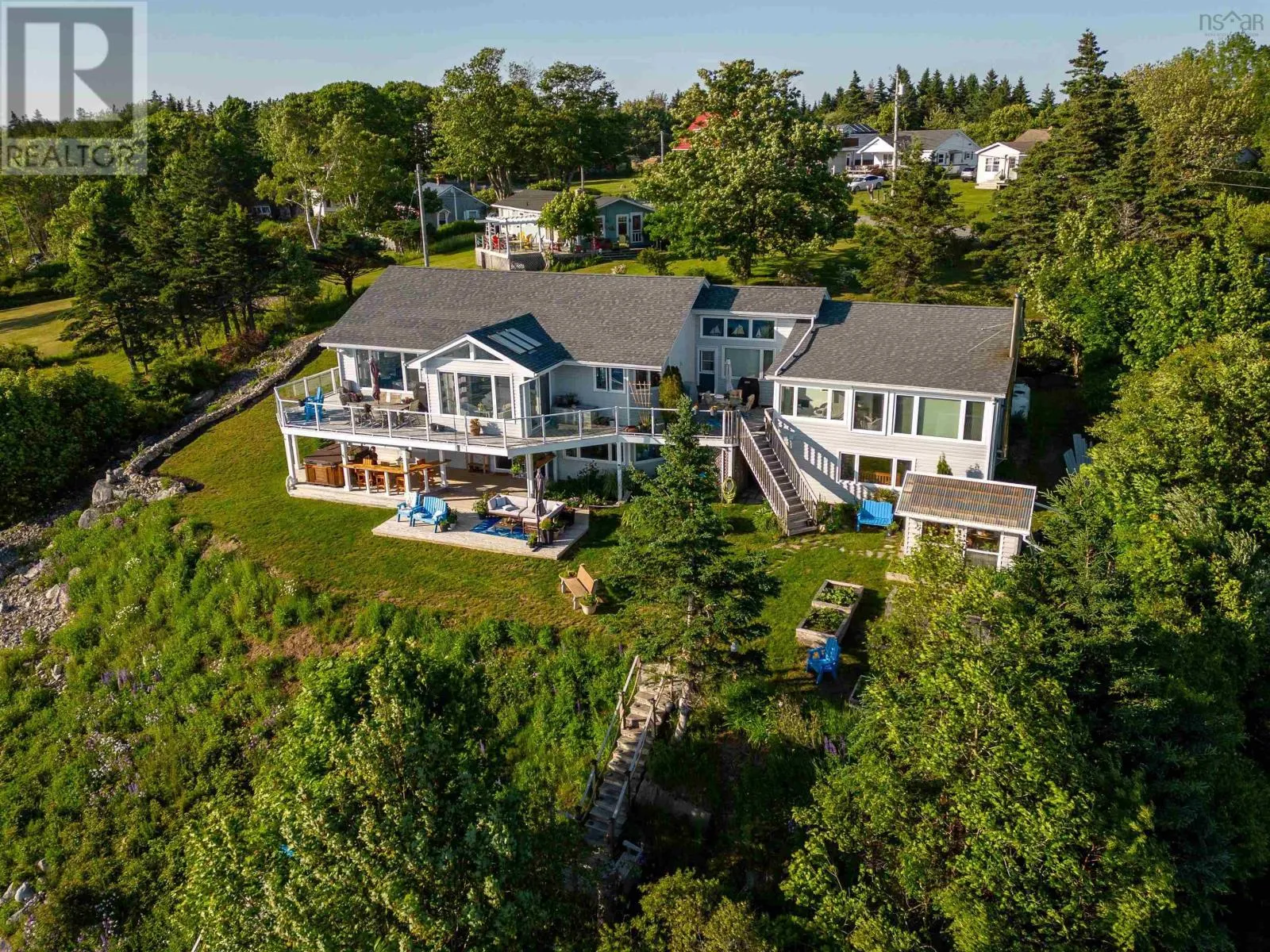 Peggys Cove Road to Boutilliers Cove Road to Bayview Drive( Hacketts Cove) Bayview - A Rare Jewel on the Nova Scotia Coastline. Discover one of Nova Scotias most captivating oceanfront homes, where timeless charm meets modern elegance. Perfectly positioned with coveted south facing views and unrivalled sunsets. Bayview offers a serene, retreat like setting just moments from urban convenience. The west wing boasts a dramatic open concept design, its walls of glass framing panoramic vistas of St Margarets Bay. A soaring vaulted ceiling crowns the living room , anchored by a grand stone fireplace, while the gourmet kitchen- finished with granite countertops flows seamlessly to the adjoining entertainment lounge. An elegant dinigroom and sun soaked sunroom open onto an expansive wrap around oceanview deck, creating the ultimate setting for hosting or simply indulging in the rhythm of the tides.. The main floor primary suite offers its own private balcony, breathtaking views and a spa inspired ensuite with heated floors. the walkout lower level has been thoughtfully updated, featuring a stylish kitchenette, bar two additional bedroom, two bathrooms, an office, laundry centre, workshop a a cozy fireplace, plus a private covered deck with an oceanfront bar and hot tub. The east wing is home to a private two level, two bedroom suite with its own deck, where you can watch eagles soar, ospreys hunt and lobster boats colour the cove. For boating enthusiasts, Bayview delivers deep water anchorage, three moorings, a large dock, boathouse and exceptional fishing. Paddle your kayak to hidden beaches and nearby islands or explore the lush grounds, complete with a charming potting shed, rock gardens and raised beds. This move in ready property is only minutes from dining, a marina and the youth club, with hiking trails, Peggy's Cove and Halifax within easy Reach. Bayview isn't just a home - it's a lifestyle! Experience the very best of seaside living in Nova Scotia (id:27476)