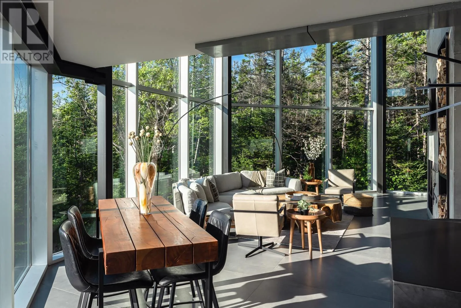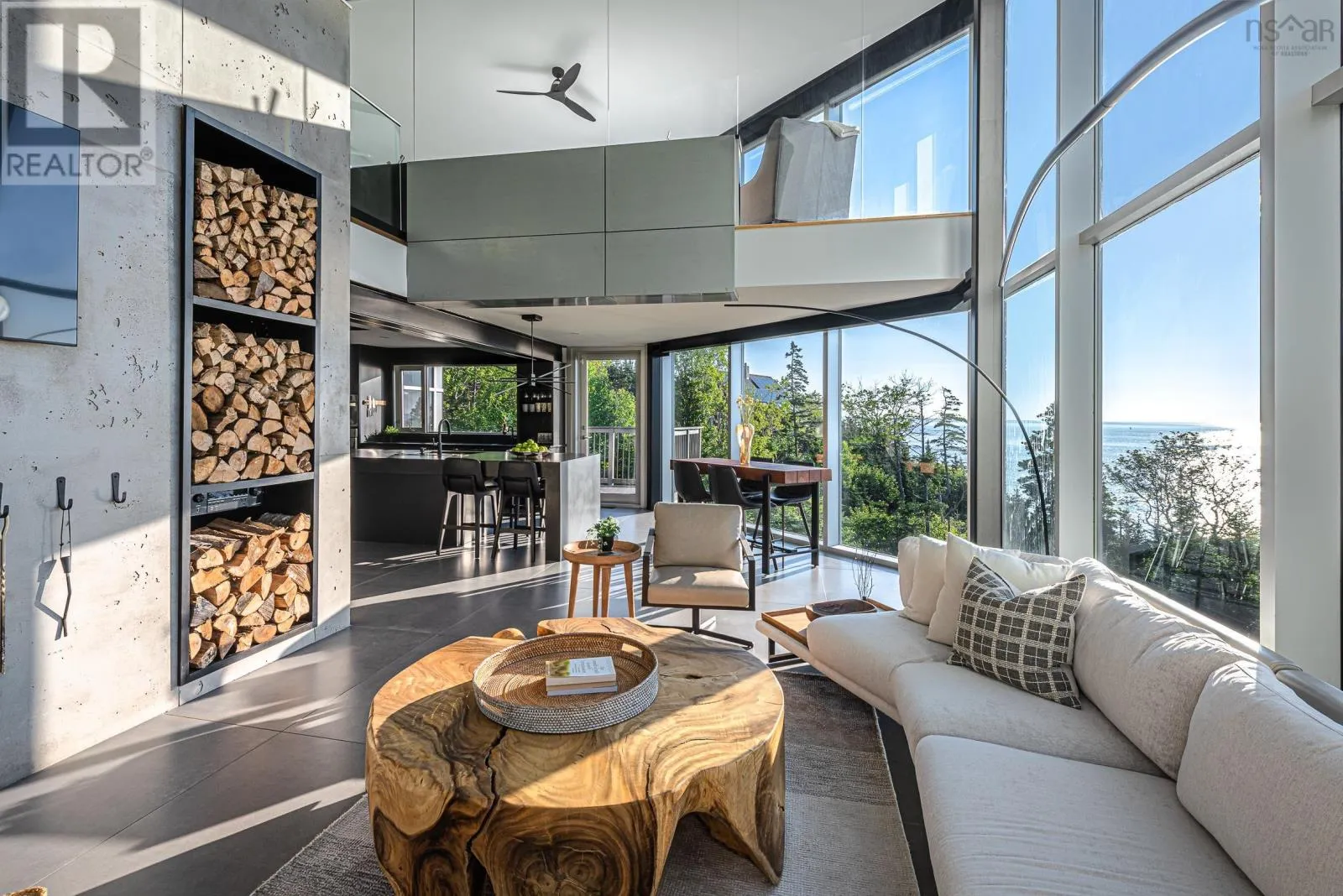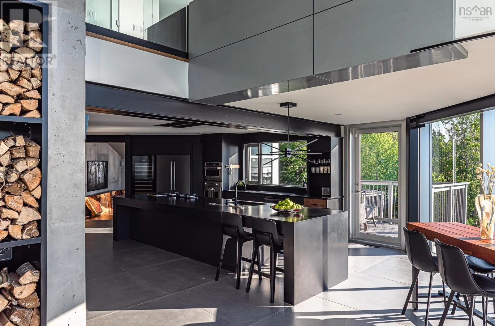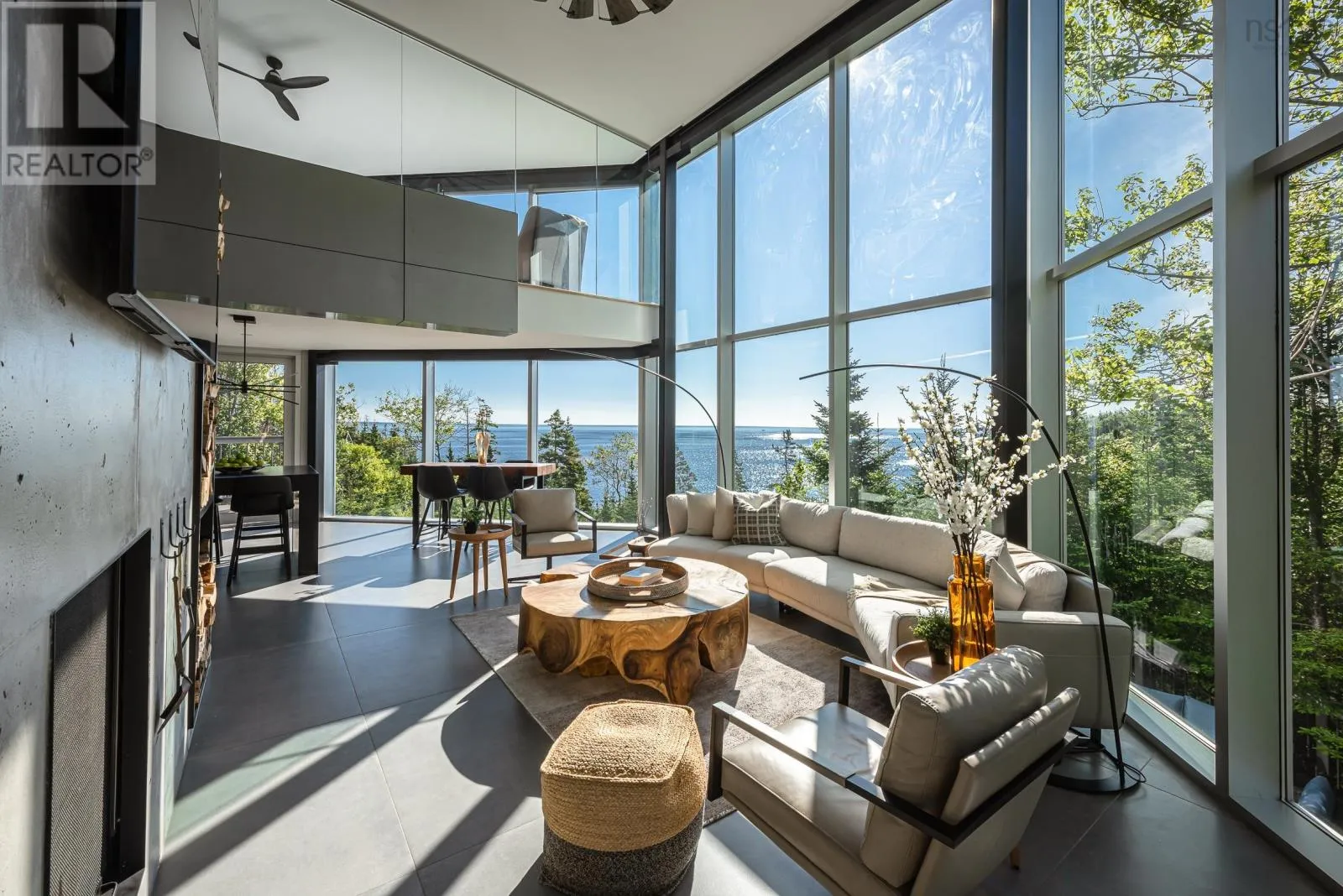 Herring Cove Rd. to Ketch Harbour Rd., Ashley Dr is on the left just past the Wilsons Gas Station, #20 is through the gates and first driveway on left This East Coast modern masterpiece known by locals as "The Glass House" hosts awe inspiring views from its uniquely designed perch in the heart of Halibut Bay. Your perfectly private 2 acre oceanfront oasis a mere 20-minute drive from downtown Halifax beckons for those looking to live in extraordinary circumstances. Step into stunning views and sleek design. From the understated but captivating entrance to the unparalleled views of the bold ocean frontage, lush forests, and stunning sunrises that call 20 Ashley home. The open-concept main level seamlessly blends the outdoors with contemporary elegance, featuring a show-stopping kitchen with a 15-foot waterfall island, spacious butler's pantry, high-end appliances, and a captivating view of the Halifax shipping lanes. The living room impresses with both a double height window wall to frame those views and the opposing two story wood-burning fireplace which anchors the space with its beckoning presence. Also, on the main floor a generous sunken living room with cozy propane fireplace large enough to accommodate a pool table, baby grand piano or easily converted back to a formal dining room for those who like to entertain. Up the custom open tread staircase which itself feels like an art installation is the impressive primary suite with its open air sitting area, custom walk-in closet, a luxurious ensuite and of course jaw dropping ocean views. No detail was overlooked in the recent lower level renovation which delivers two bedrooms, two full baths with custom tile showers (one with ensuite), family room and of course access to the decks and the great outdoors. This property is just as captivating outside where a natural stream creates a picturesque waterfall and a delightful swimming hole along the southwest side of the property. Now is your chance to own this rare architecturally rich property that perfectly blends modern living with the quintessential rugged beauty of the Nova Scotia coast. (id:27476)