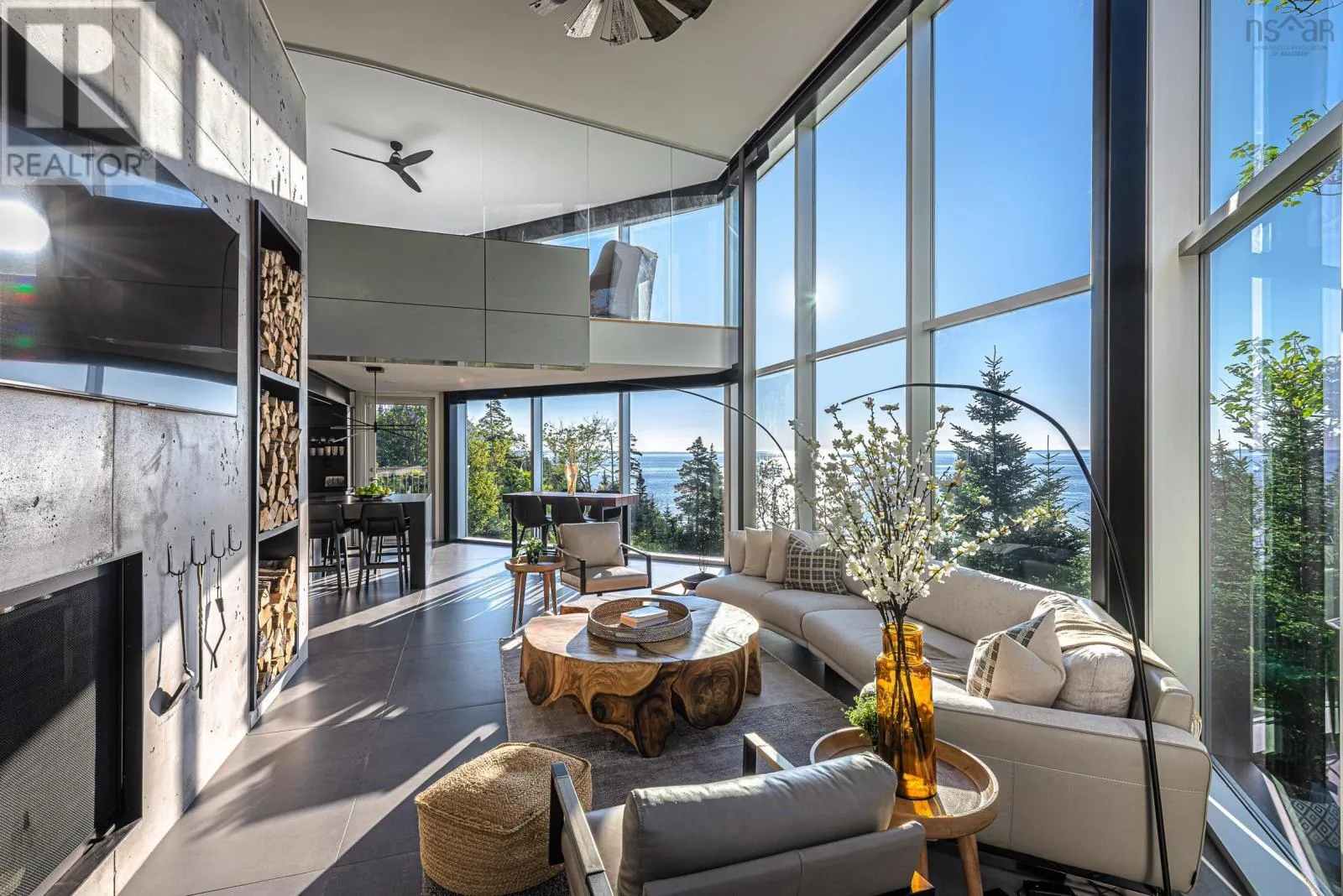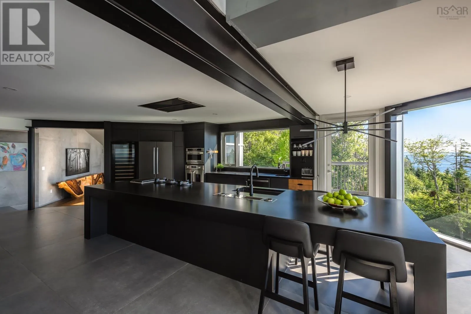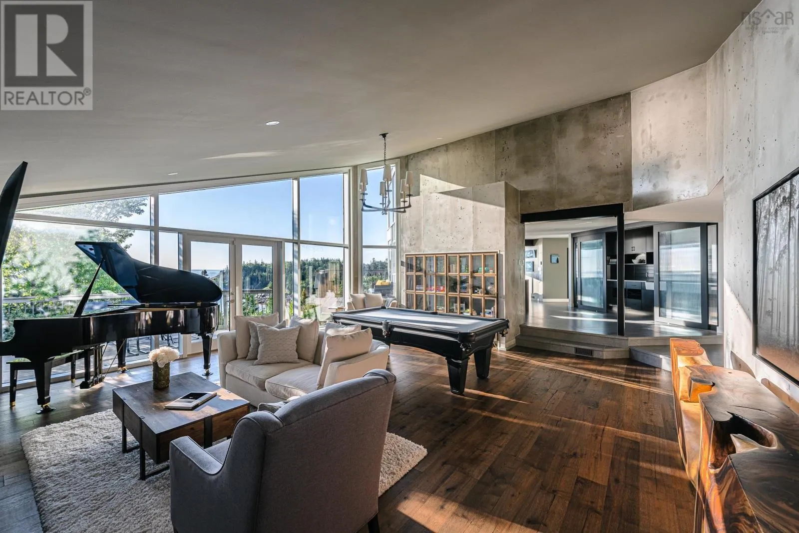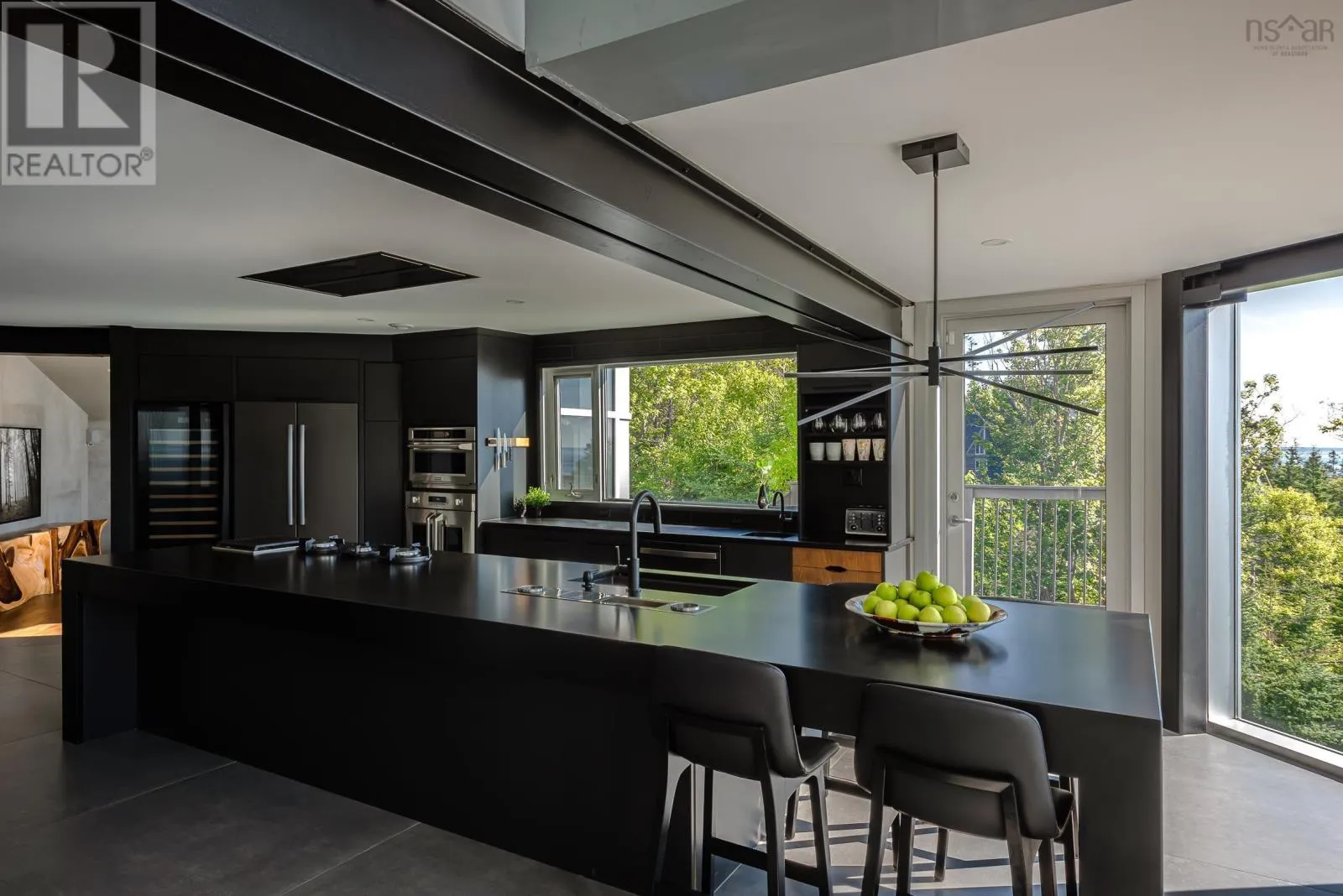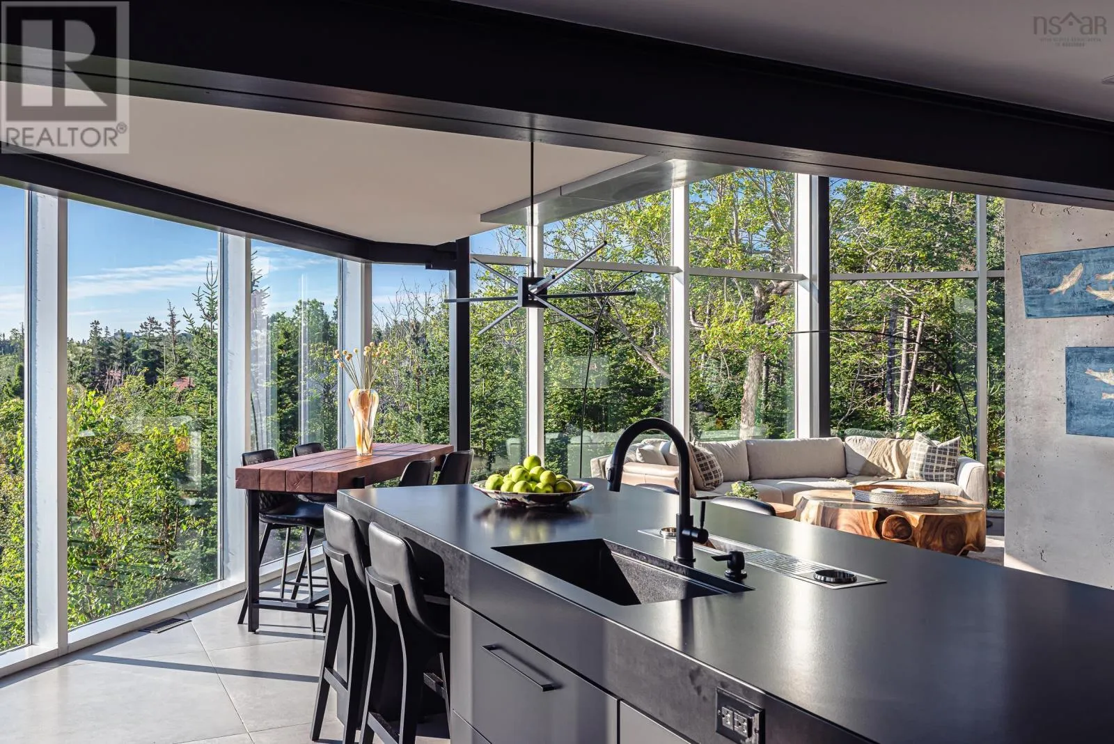Herring Cove Rd. to Ketch Harbour Rd., Ashley Dr is on the left just past the Wilsons Gas Station, #20 is through the gates and first driveway on left This East Coast modern masterpiece known by locals as "The Glass House" hosts awe inspiring views from its uniquely designed perch in the heart of Halibut Bay. Your perfectly private 2 acre oceanfront oasis a mere 20-minute drive from downtown Halifax beckons for those looking to live in extraordinary circumstances. Step into stunning views and sleek design. From the understated but captivating entrance to the unparalleled views of the bold ocean frontage, lush forests, and stunning sunrises that call 20 Ashley home. The open-concept main level seamlessly blends the outdoors with contemporary elegance, featuring a show-stopping kitchen with a 15-foot waterfall island, spacious butler's pantry, high-end appliances, and a captivating view of the Halifax shipping lanes. The living room impresses with both a double height window wall to frame those views and the opposing two story wood-burning fireplace which anchors the space with its beckoning presence. Also, on the main floor a generous sunken living room with cozy propane fireplace large enough to accommodate a pool table, baby grand piano or easily converted back to a formal dining room for those who like to entertain. Up the custom open tread staircase which itself feels like an art installation is the impressive primary suite with its open air sitting area, custom walk-in closet, a luxurious ensuite and of course jaw dropping ocean views. No detail was overlooked in the recent lower level renovation which delivers two bedrooms, two full baths with custom tile showers (one with ensuite), family room and of course access to the decks and the great outdoors. This property is just as captivating outside where a natural stream creates a picturesque waterfall and a delightful swimming hole along the southwest side of the property. Now is your chance to own this rare architecturally rich property that perfectly blends modern living with the quintessential rugged beauty of the Nova Scotia coast. (id:27476)
