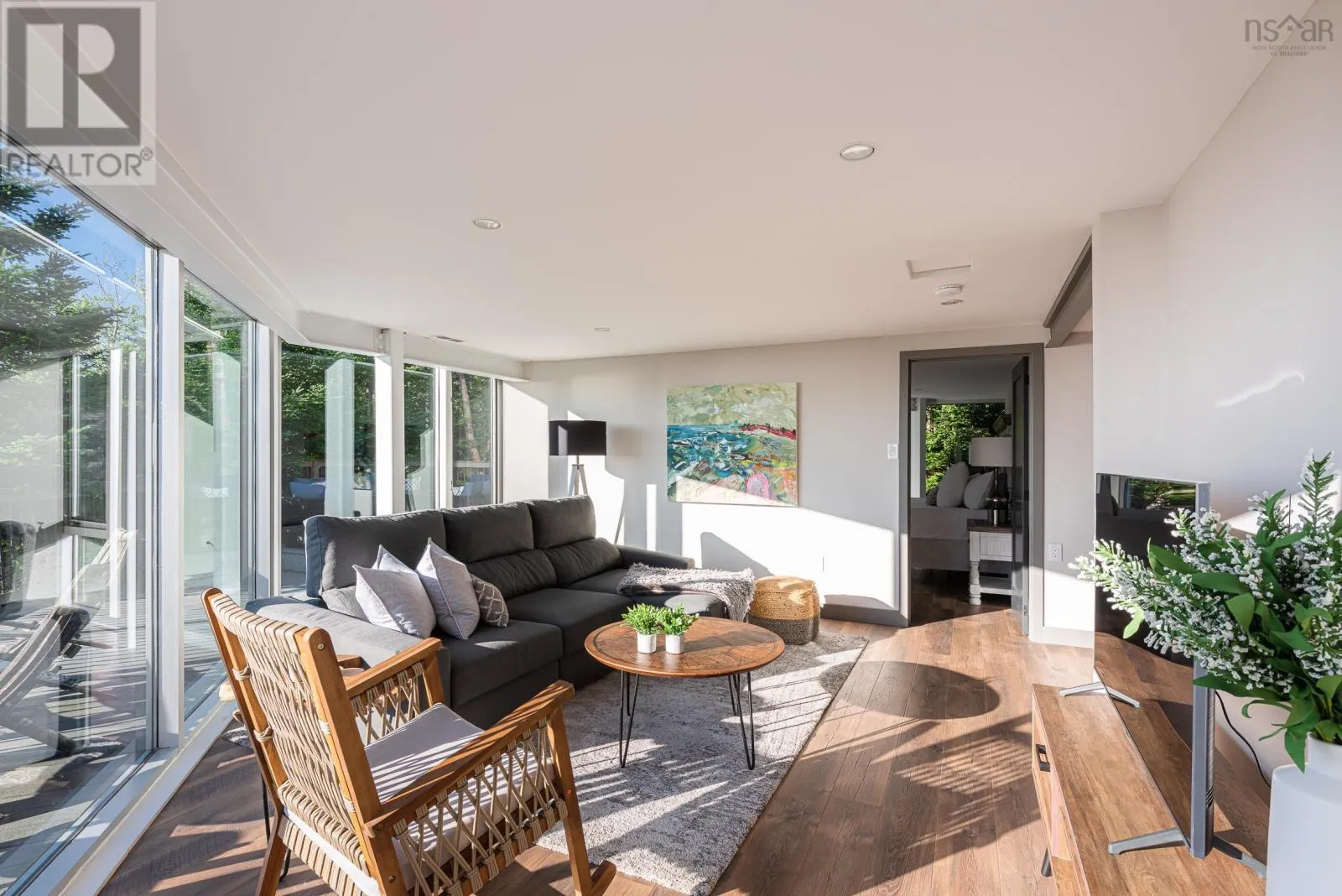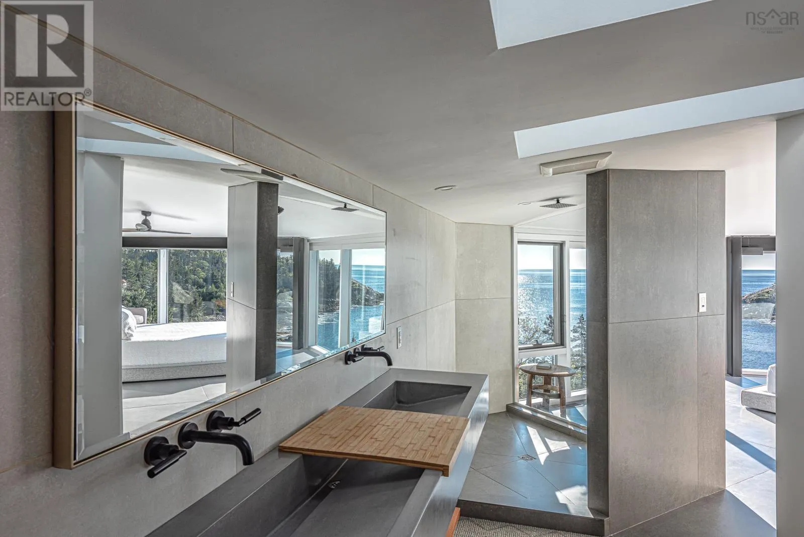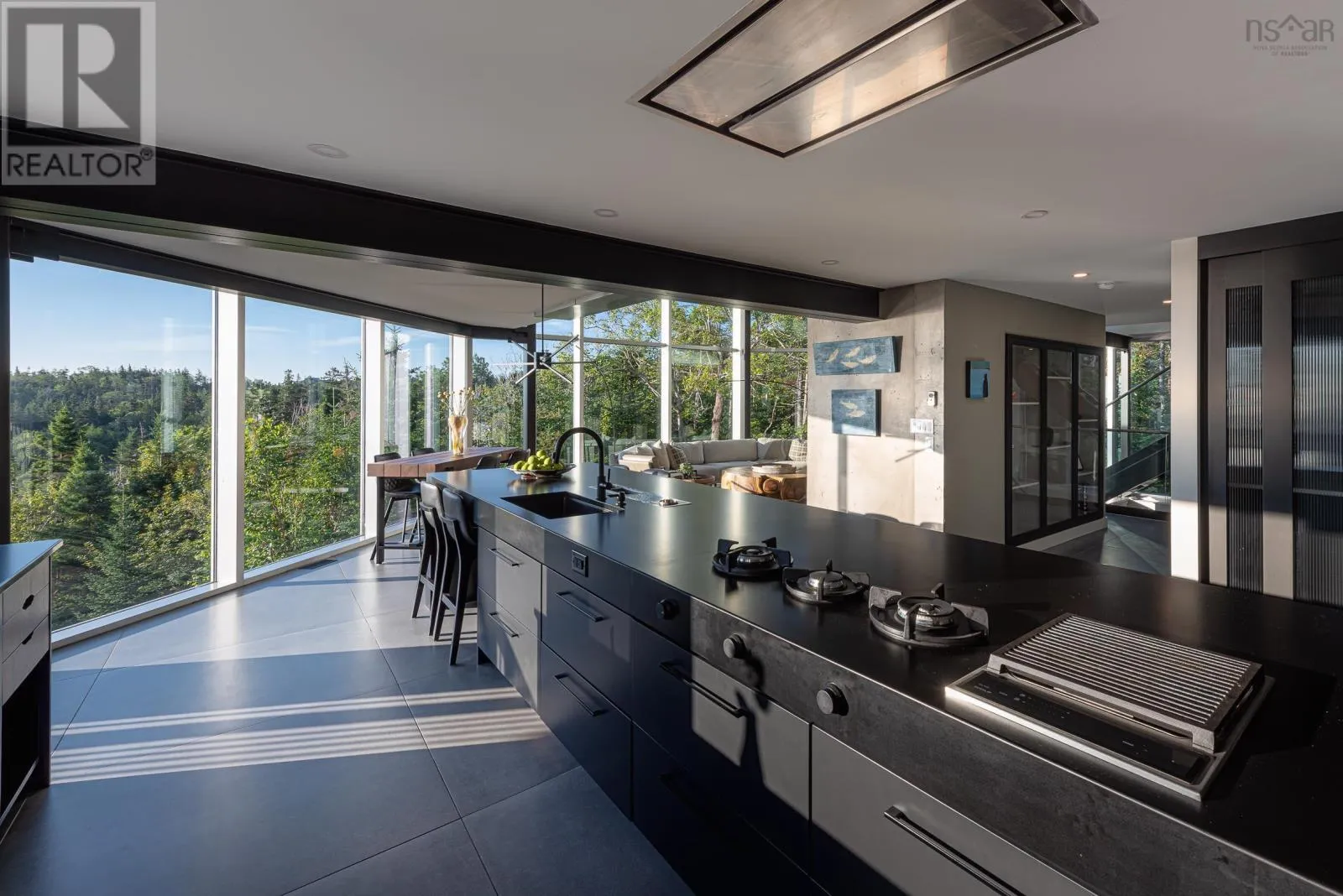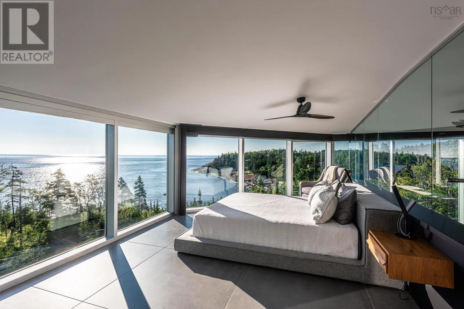Herring Cove Rd. to Ketch Harbour Rd., Ashley Dr is on the left just past the Wilsons Gas Station, #20 is through the gates and first driveway on left This East Coast modern masterpiece known by locals as "The Glass House" hosts awe inspiring views from its uniquely designed perch in the heart of Halibut Bay. Your perfectly private 2 acre oceanfront oasis a mere 20-minute drive from downtown Halifax beckons for those looking to live in extraordinary circumstances. Step into stunning views and sleek design. From the understated but captivating entrance to the unparalleled views of the bold ocean frontage, lush forests, and stunning sunrises that call 20 Ashley home. The open-concept main level seamlessly blends the outdoors with contemporary elegance, featuring a show-stopping kitchen with a 15-foot waterfall island, spacious butler's pantry, high-end appliances, and a captivating view of the Halifax shipping lanes. The living room impresses with both a double height window wall to frame those views and the opposing two story wood-burning fireplace which anchors the space with its beckoning presence. Also, on the main floor a generous sunken living room with cozy propane fireplace large enough to accommodate a pool table, baby grand piano or easily converted back to a formal dining room for those who like to entertain. Up the custom open tread staircase which itself feels like an art installation is the impressive primary suite with its open air sitting area, custom walk-in closet, a luxurious ensuite and of course jaw dropping ocean views. No detail was overlooked in the recent lower level renovation which delivers two bedrooms, two full baths with custom tile showers (one with ensuite), family room and of course access to the decks and the great outdoors. This property is just as captivating outside where a natural stream creates a picturesque waterfall and a delightful swimming hole along the southwest side of the property. Now is your chance to own this rare architecturally rich property that perfectly blends modern living with the quintessential rugged beauty of the Nova Scotia coast. (id:27476)