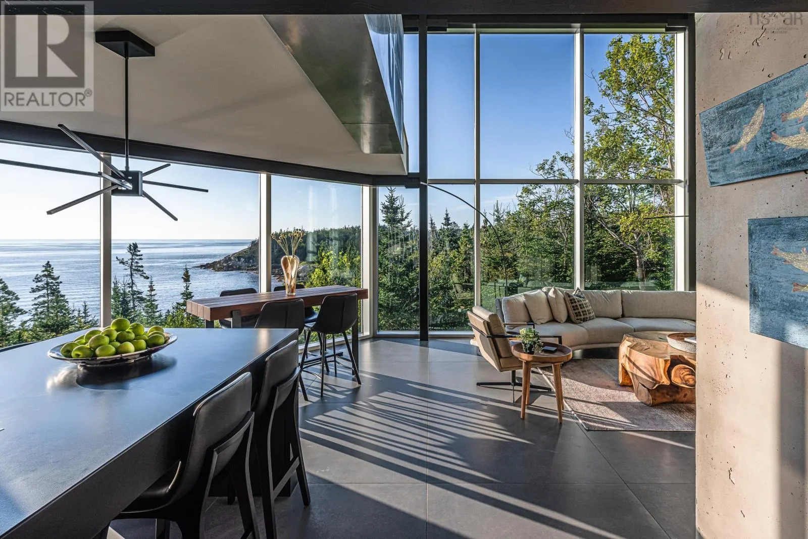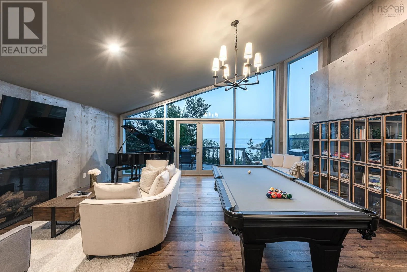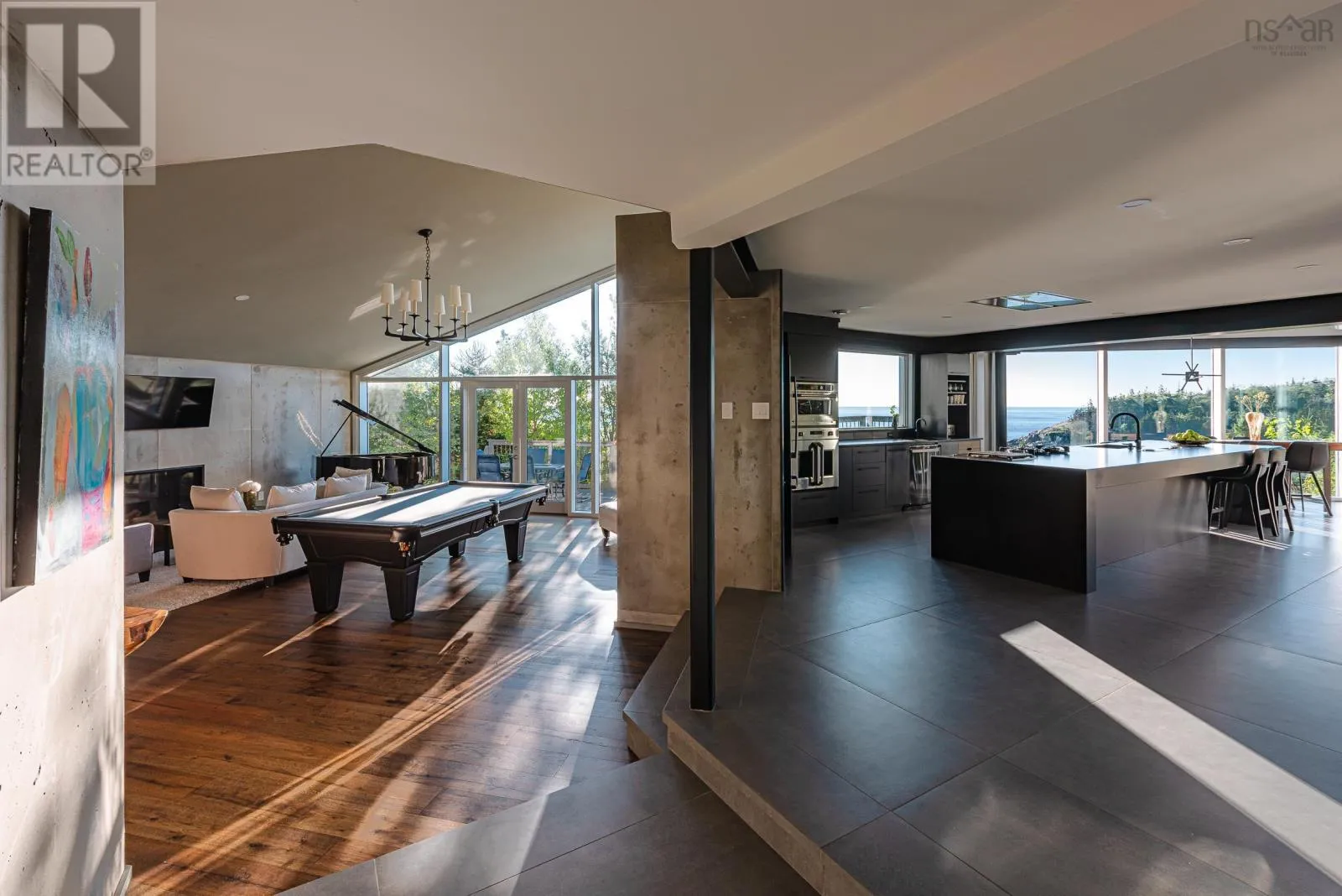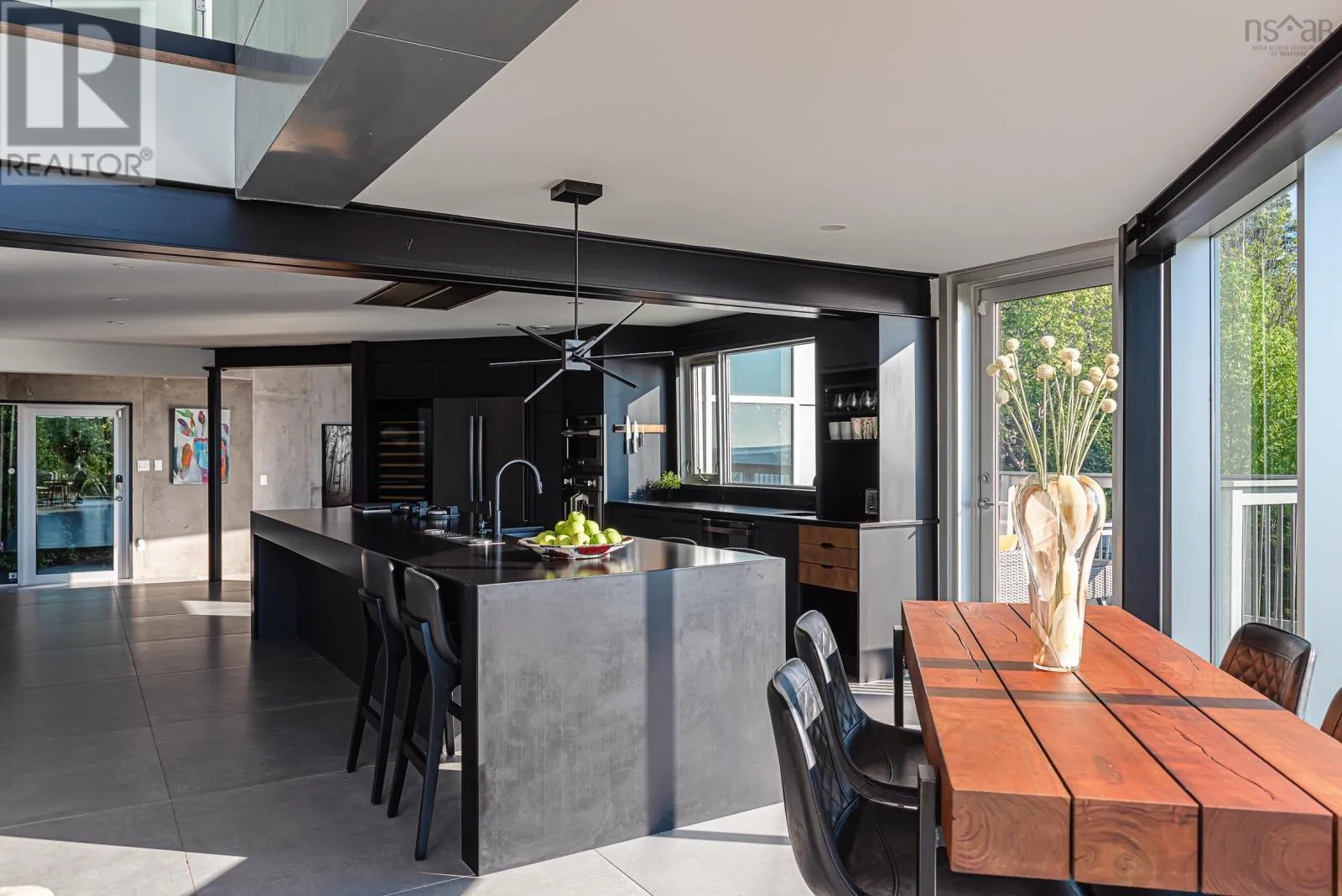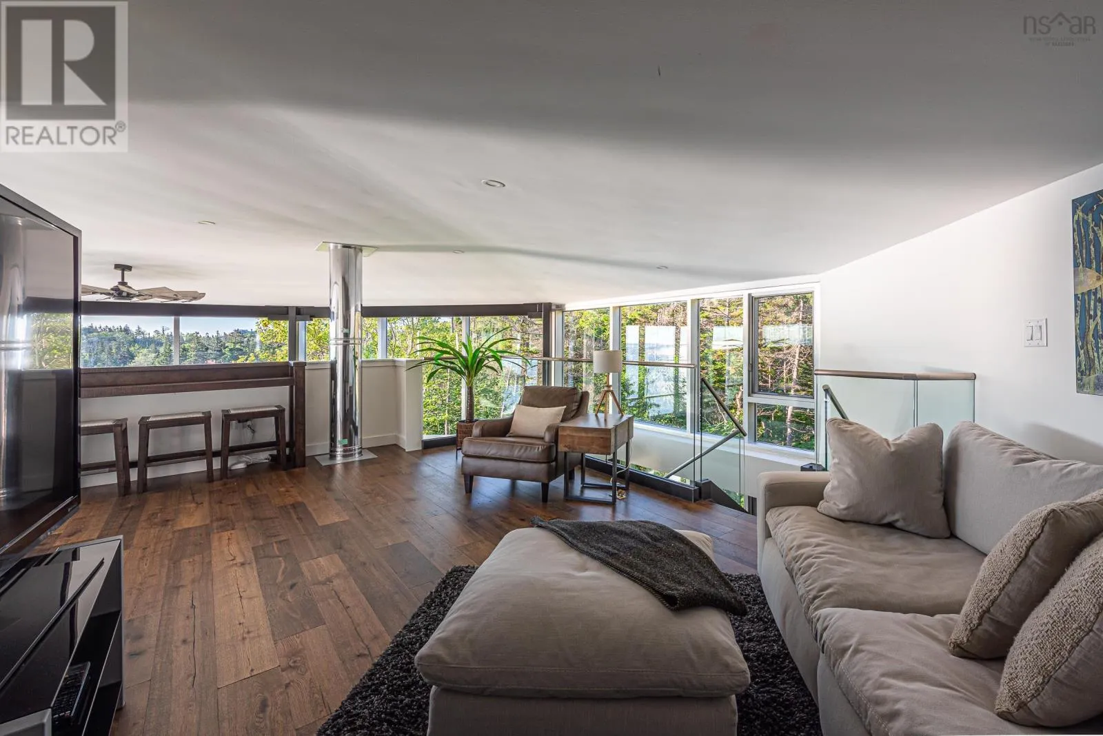 Herring Cove Rd. to Ketch Harbour Rd., Ashley Dr is on the left just past the Wilsons Gas Station, #20 is through the gates and first driveway on left This East Coast modern masterpiece known by locals as "The Glass House" hosts awe inspiring views from its uniquely designed perch in the heart of Halibut Bay. Your perfectly private 2 acre oceanfront oasis a mere 20-minute drive from downtown Halifax beckons for those looking to live in extraordinary circumstances. Step into stunning views and sleek design. From the understated but captivating entrance to the unparalleled views of the bold ocean frontage, lush forests, and stunning sunrises that call 20 Ashley home. The open-concept main level seamlessly blends the outdoors with contemporary elegance, featuring a show-stopping kitchen with a 15-foot waterfall island, spacious butler's pantry, high-end appliances, and a captivating view of the Halifax shipping lanes. The living room impresses with both a double height window wall to frame those views and the opposing two story wood-burning fireplace which anchors the space with its beckoning presence. Also, on the main floor a generous sunken living room with cozy propane fireplace large enough to accommodate a pool table, baby grand piano or easily converted back to a formal dining room for those who like to entertain. Up the custom open tread staircase which itself feels like an art installation is the impressive primary suite with its open air sitting area, custom walk-in closet, a luxurious ensuite and of course jaw dropping ocean views. No detail was overlooked in the recent lower level renovation which delivers two bedrooms, two full baths with custom tile showers (one with ensuite), family room and of course access to the decks and the great outdoors. This property is just as captivating outside where a natural stream creates a picturesque waterfall and a delightful swimming hole along the southwest side of the property. Now is your chance to own this rare architecturally rich property that perfectly blends modern living with the quintessential rugged beauty of the Nova Scotia coast. (id:27476)