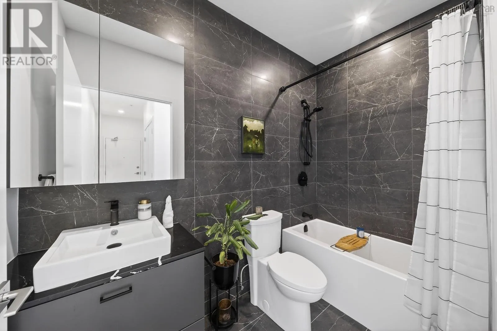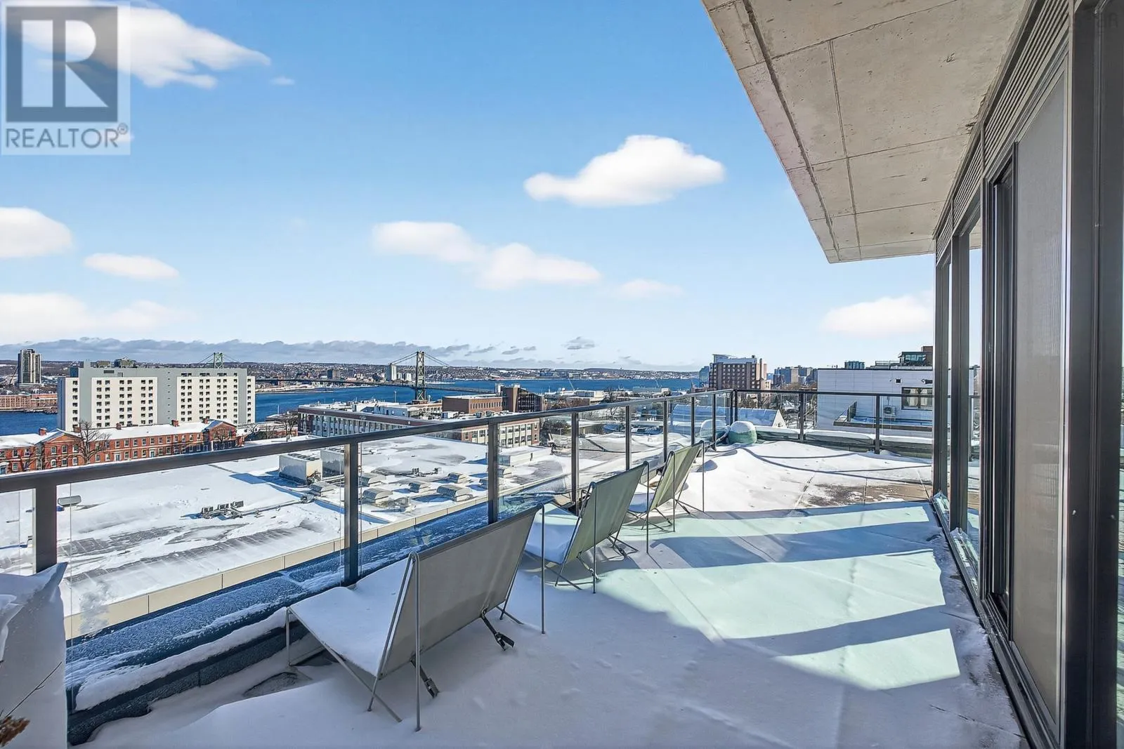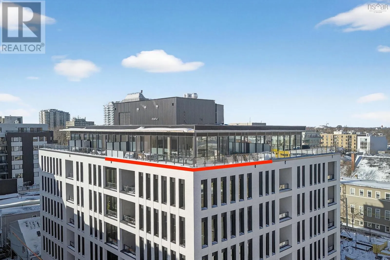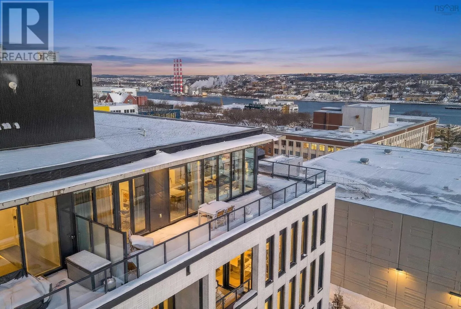 Gottingen to Bilby The Crown Jewel of the newly constructed NRTH building, Penthouse #1 is a one-of-a-kind residence positioned on the premier South-East corner of the top floor. Offering stunning panoramic views of the Halifax Harbour, the Macdonald Bridge, and the shimmering city skyline, this condo is the pinnacle of North End luxury. The defining feature is the massive 739 sq. ft. wrap-around corner terrace. Providing complete privacya rare luxury in condominium livingthis expansive outdoor oasis effectively doubles your living area. Whether hosting an open-air dinner party or enjoying a quiet morning coffee, you are surrounded by the most breathtaking vistas in the city. Inside, the exclusive Penthouse-level architecture shines with soaring ceilings and full-height windows that bathe the interior in natural light. The 865 sq. ft., 2-bedroom, 2-bathroom unit has been meticulously designed with extensive custom upgrades including premium kitchen and bathroom surfaces, backsplash, and bespoke hardware. The thoughtful layout affords maximum privacy with the bedrooms strategically positioned to offer separate retreats. Added touches include in-unit laundry, plenty of closet space, and panelled kitchen appliances. The NRTH building elevates the urban experience with a suite of amenities including a gym, yoga room, and secure bicycle storage. Designed for a forward-thinking lifestyle, the property also includes a private deeded parking space equipped with a dedicated EV charger and a storage unit. Located just steps from the historic Hydrostone Market, you are immersed in a "village in the city" vibe, surrounded by Halifaxs most celebrated shops and restaurants. Penthouse #1 at NRTH is more than just a residence; it is a private sanctuary with a front-row seat to the very best of Halifax. See Virtual Tour. (id:27476)