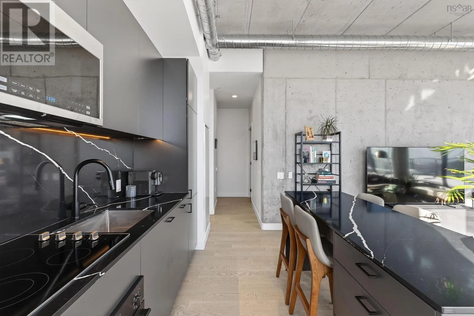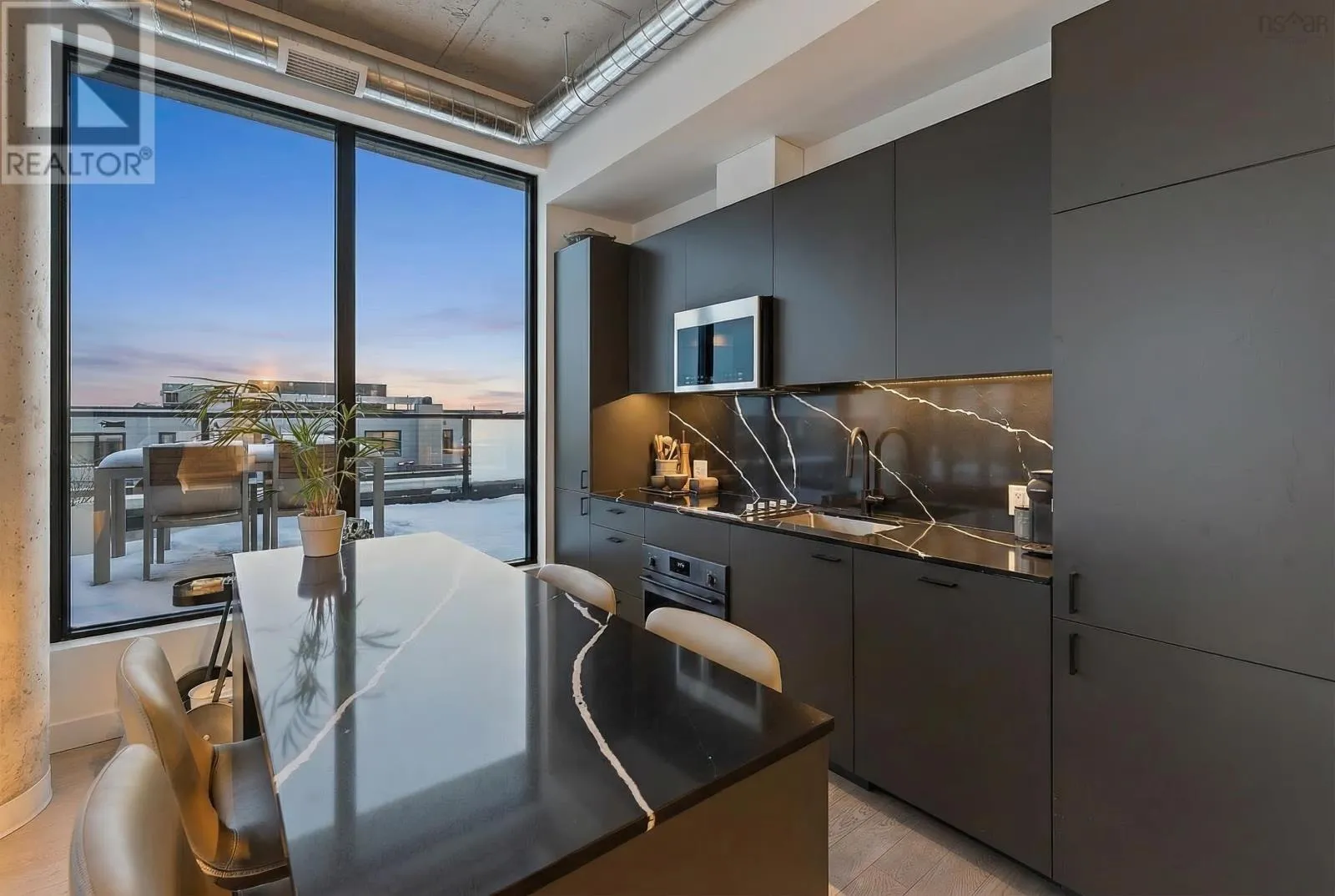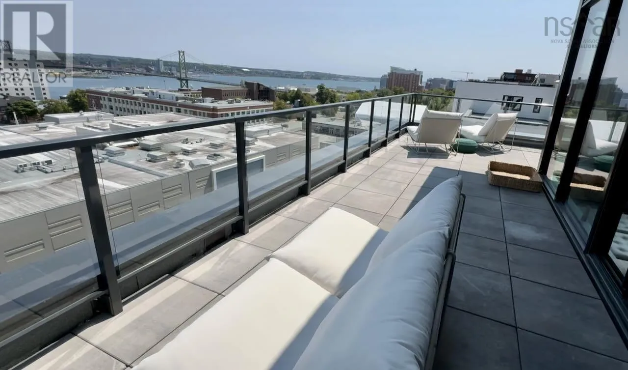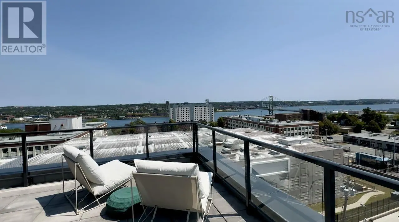 Gottingen to Bilby The Crown Jewel of the newly constructed NRTH building, Penthouse #1 is a one-of-a-kind residence positioned on the premier South-East corner of the top floor. Offering stunning panoramic views of the Halifax Harbour, the Macdonald Bridge, and the city skyline, this condo is the pinnacle of North End luxury. The defining feature is the massive wrap-around terrace (over 700 Square Feet) which provides complete privacy - a rare luxury in condominium living. This expansive outdoor oasis effectively doubles your living area. Whether hosting an open-air dinner party or enjoying a quiet morning coffee, you are surrounded by the most breathtaking vistas in the city. Inside, the exclusive Penthouse-level architecture shines with extra-high ceilings and full-height windows that bathe the interior in natural light. Spanning over 865 SqFt of living space with 2 bedrooms and 2 full bathrooms, this unit has been meticulously designed with extensive custom upgrades including premium kitchen and bathroom surfaces, backsplash, and bespoke hardware. The thoughtful layout affords maximum privacy with the bedrooms strategically positioned to offer separate retreats. Added touches include in-unit laundry, plenty of closet space, and panelled kitchen appliances. The NRTH building elevates the urban experience with a suite of amenities including a gym, yoga room, secure bicycle storage, and low condo fees which include everything but electricity. Designed for a forward-thinking lifestyle, this condo also includes a private deeded parking space equipped with a dedicated EV charger plus a storage unit. Located just steps from the historic Hydrostone Market, you are immersed in a "village in the city" vibe, surrounded by Halifaxs most celebrated shops and restaurants. Penthouse #1 at NRTH is more than just a residence; it is a private sanctuary with a front-row seat to the very best of Halifax. (id:27476)
