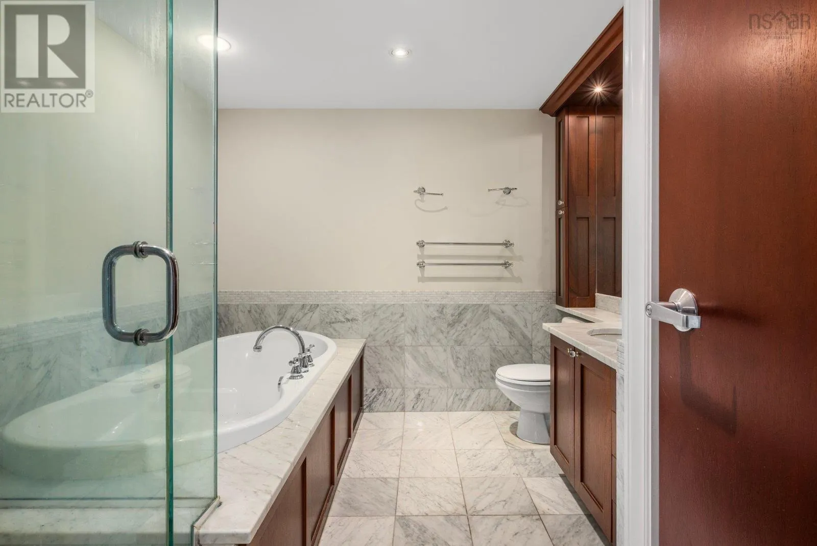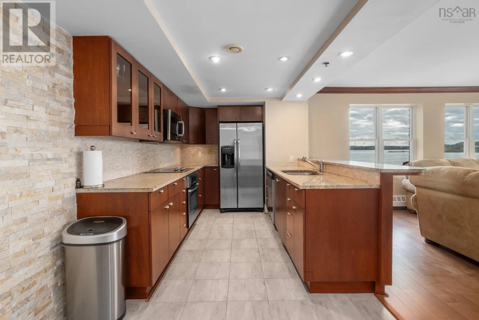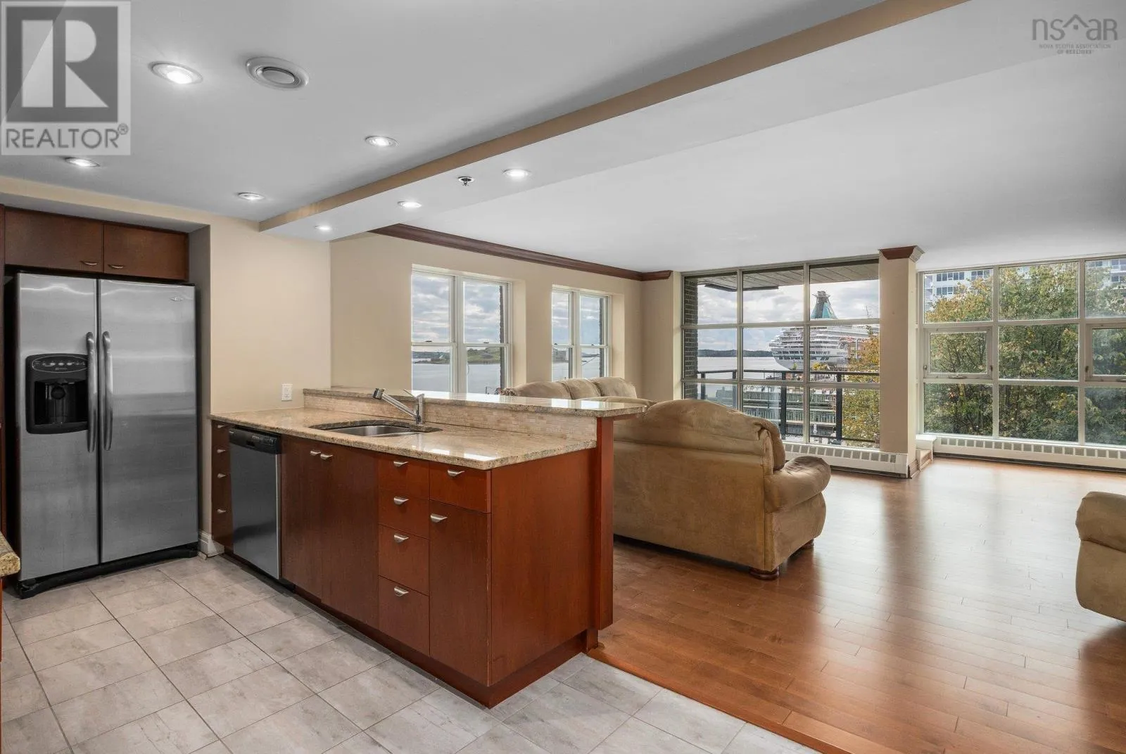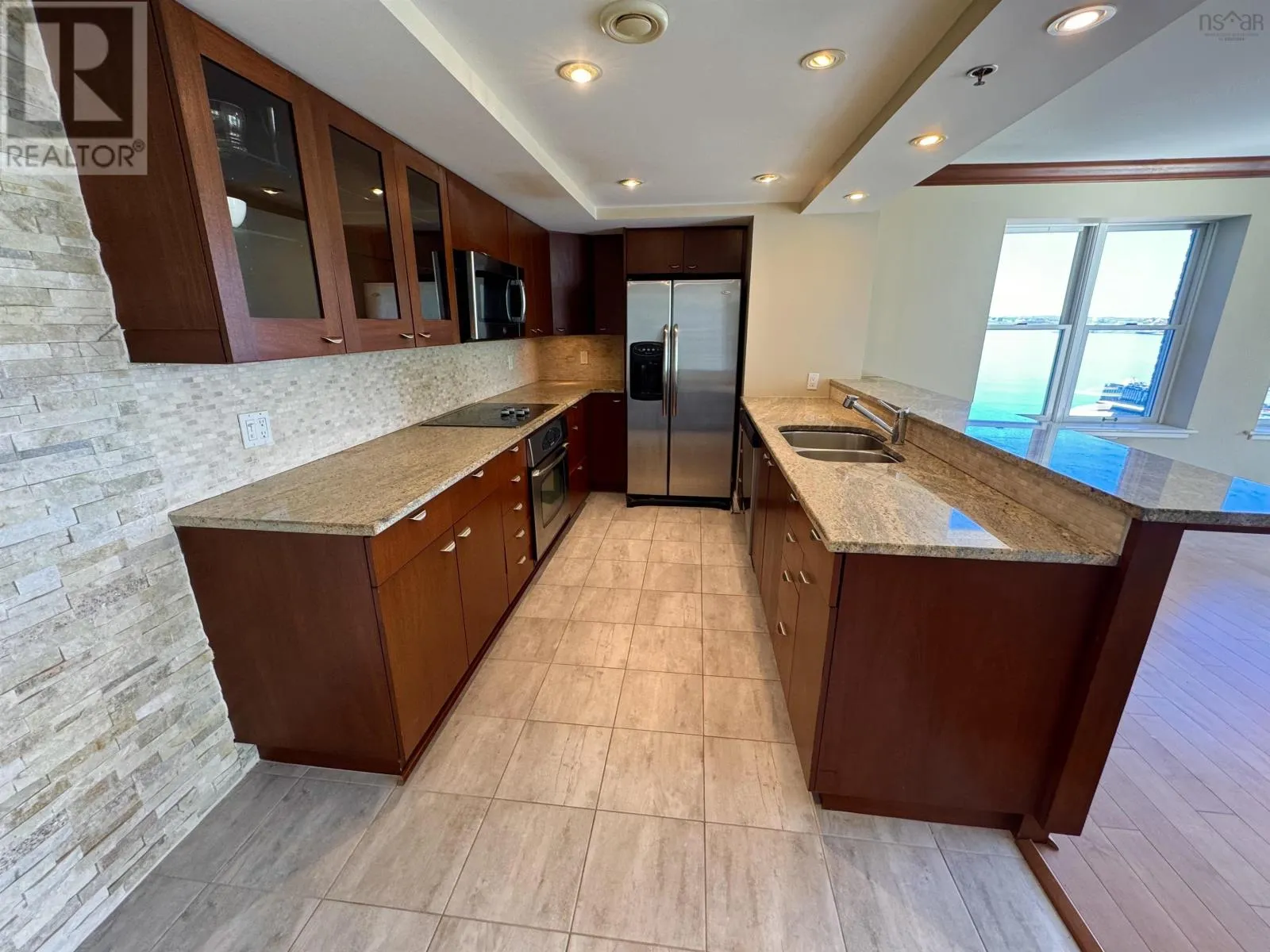 Lower Water St SPECTACULAR HARBOUR VIEWS! If you dream of being alongside the water in a prestigious condo building with all the amenities Halifax has to offer at your doorstep then this is the perfect location for your next home! This beautiful air conditioned condo boasts 3 bedrooms, 2 baths, fireplace and so much more! The kitchen boasts granite surfaces, stainless steel appliances, an abundance of cabinetry, dining nook and feature stone wall. The living room features 2 walls of windows to maximize views of the harbour, George's Island, waterfront boardwalk, and watch the ships come and go! Cozy up to the natural gas fireplace on those chilly nights or enjoy morning coffees on your balcony on the warm summer mornings. Bishops Landing also offers an in ground pool, fitness room, common rooms, 24 hour concierge, underground heated parking garage, and transit at the doorstep. Walk to your favourite restaurants or specialty shops! Parking spot #9 with storage. (id:27476)