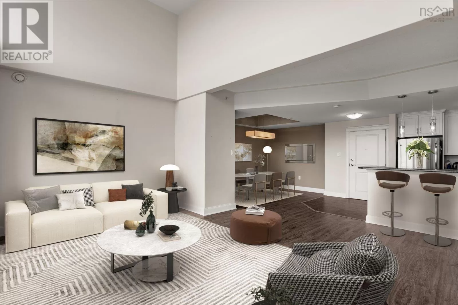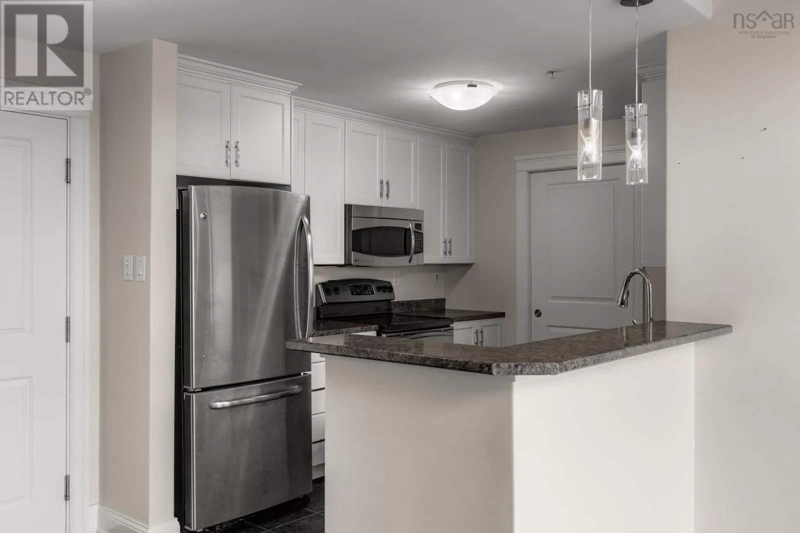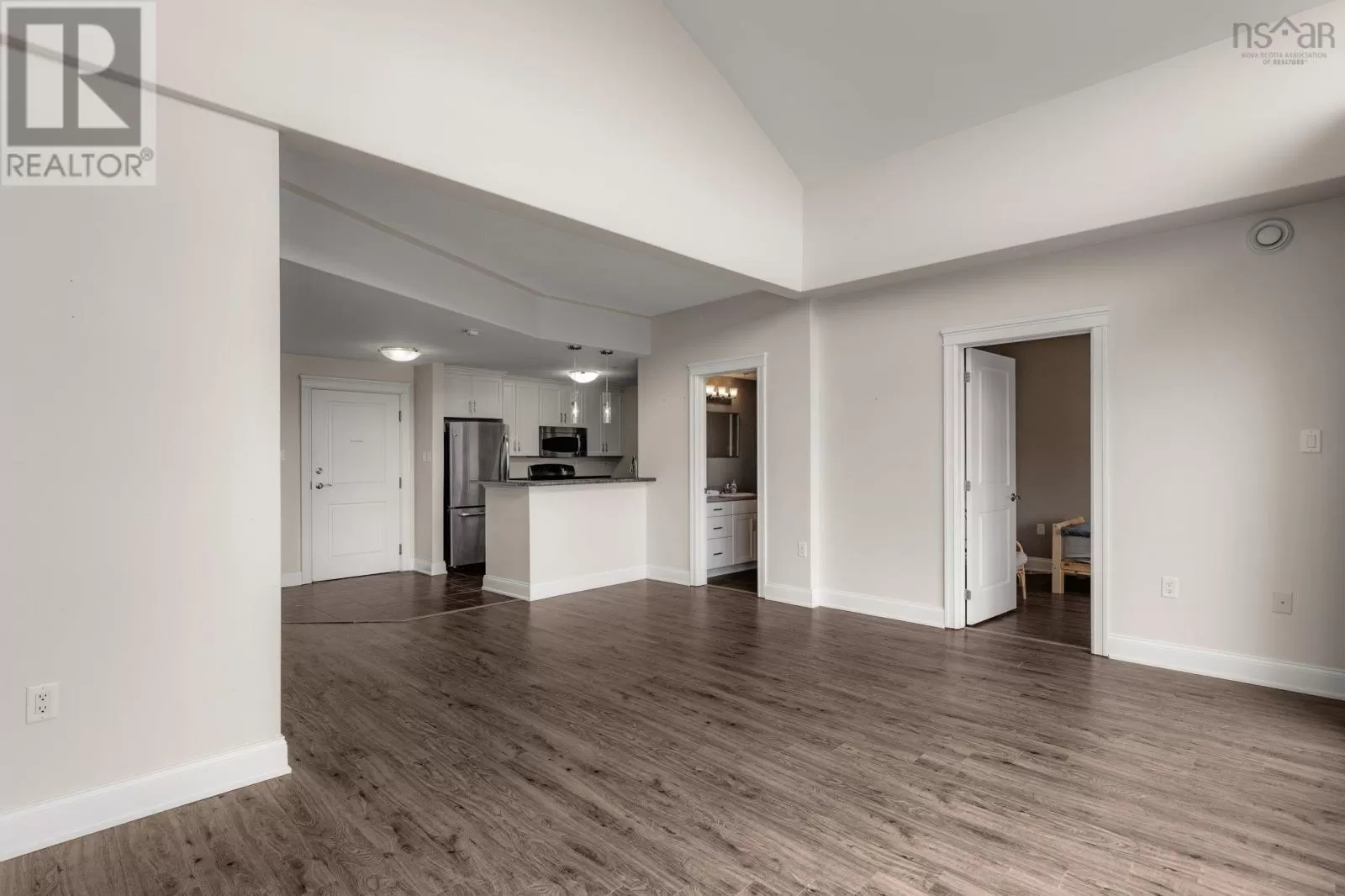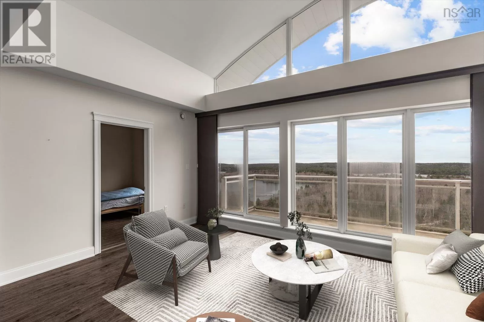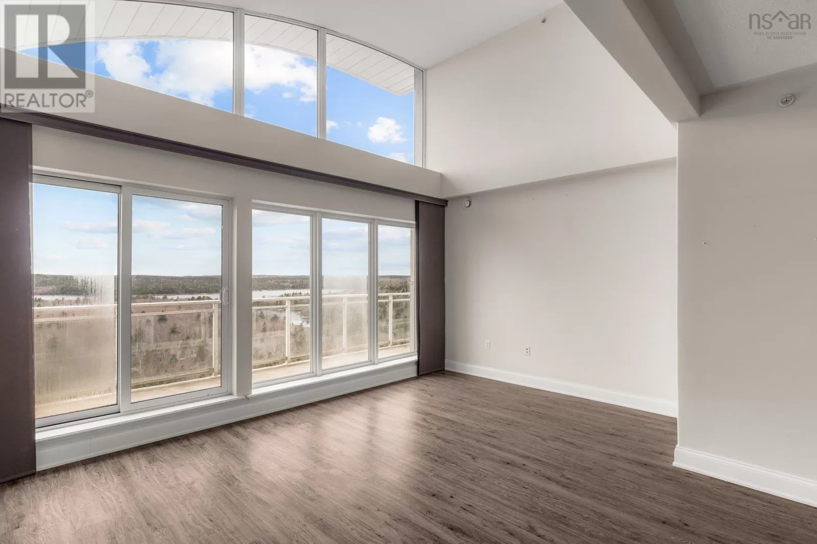 Dunbrack to Walter Havill or Osborne to Walter Havill The views from this top floor unit are jaw dropping. Imagine looking out through the wall of floor to ceiling windows and seeing nothing but lakes and wilderness with commanding views of sunsets through every season. This is one of three units overlooking the Long Lake Provincial Park wilderness area and hiking trail system that has the added upper arched windows and vaulted ceilings to provide unprecedented and unique views in HRM (foggy patio windows being replaced). The condo fees include ducted geothermal heat/AC for year round comfort. This open concept two bedroom unit is ideally laid out with the bedrooms at opposite ends for privacy/separation with the primary bedroom featuring a tray ceiling, walk-in closet and large ensuite bath with stand up shower. In-suite laundry, pet friendly and underground parking. Did I mention the in-unit views? Take a step outside to the massive 6x26.5' balcony to bath in the sun. Assigned parking and storage in the underground garage that is close to the elevator. Quick access to Bayers Lake, downtown Halifax and all shopping/grocery amenities. Come take a look! (id:27476)