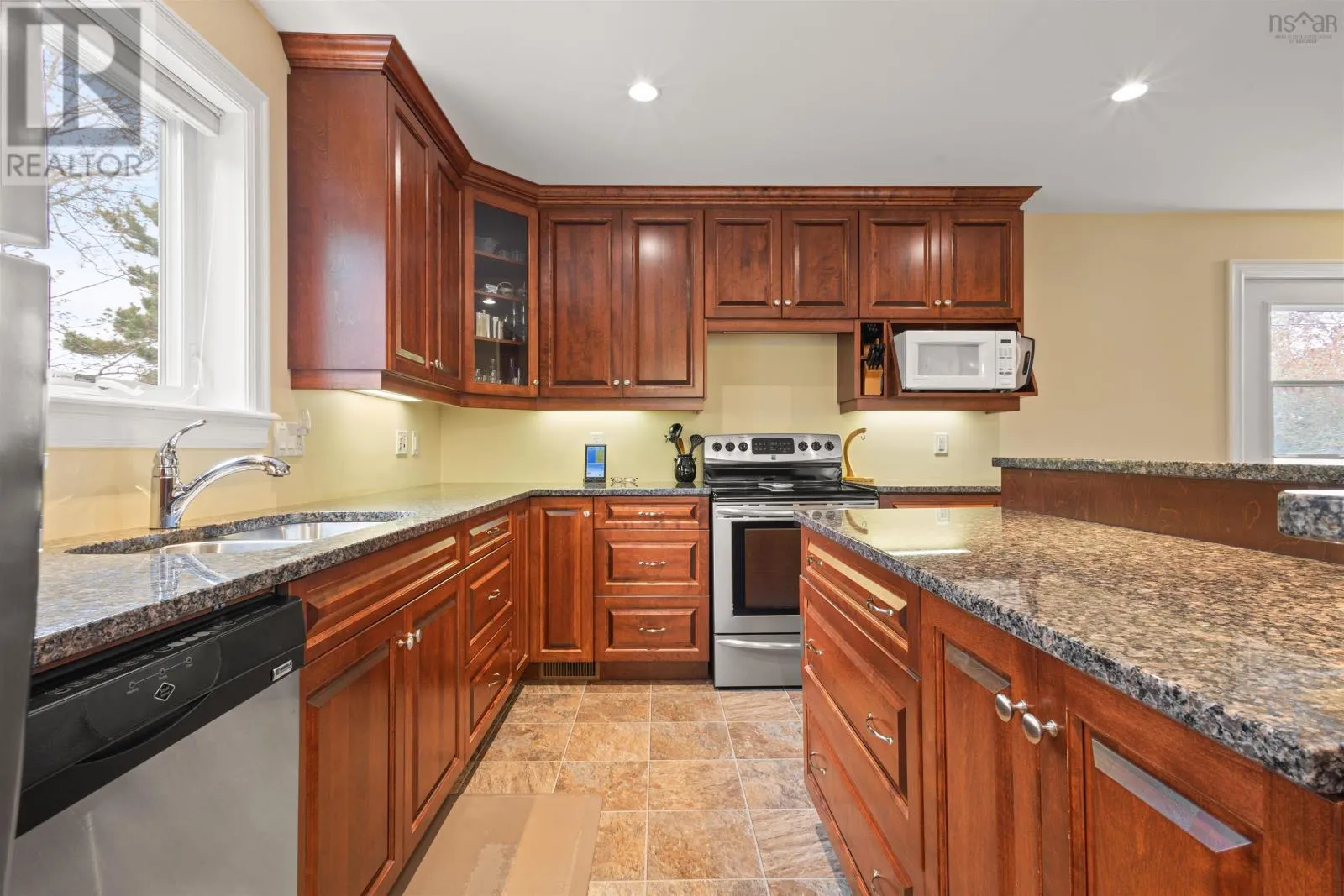 https://maps.app.goo.gl/xzNydYjW5TApQxma7 Set on an almost 30,000 sq ft park-like lot, this property offers the rare combination of exceptional privacy, mature trees, and expansive outdoor spaceall just minutes from downtown Halifax. Nestled at the end of a quiet cul-de-sac in the desirable Chocolate Lake neighbourhood, this beautifully maintained 3-level home is a true urban retreat. Thoughtfully updated with solar panels for improved energy efficiency and long-term savings, the home blends modern sustainability with timeless comfort. Inside, the main floor features a bright, open-concept living and dining area with large windows and patio doors that open to a spacious deckperfect for summer entertaining or simply enjoying the tranquility of your tree-lined backyard. The kitchen offers generous prep space and ample cabinetry, while a powder room and convenient main floor laundry complete the level. Upstairs, youll find three spacious bedrooms, including a large primary suite with walk-in closet and 4-piece ensuite. Two additional bedrooms share a well-appointed 3-piece bath. The fully finished basement provides excellent versatility with a generous rec room, a fourth bedroom, full 4-piece bath, storage areas, utility room, interior garage access, and walkout potential. With Chocolate Lake Beach, parks, and top schools nearbynot to mention downtown just minutes awaythis home offers the best of both worlds: peaceful, nature-filled living with the convenience of an unbeatable location. (id:27476)