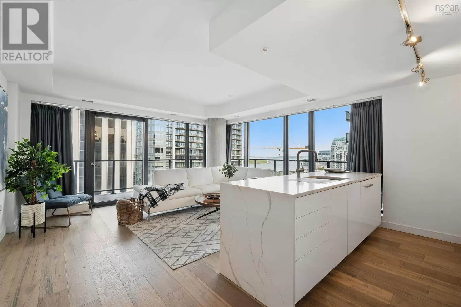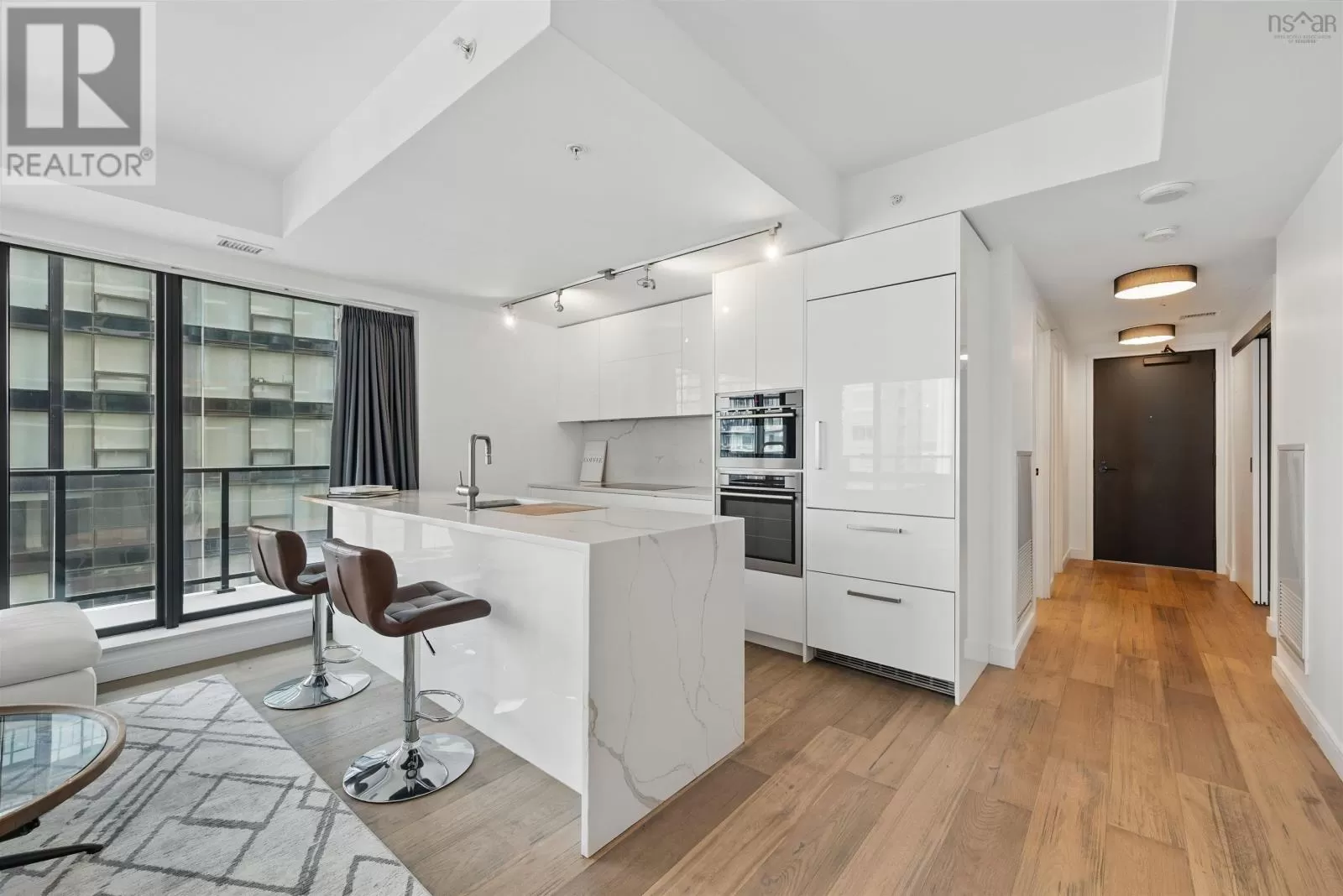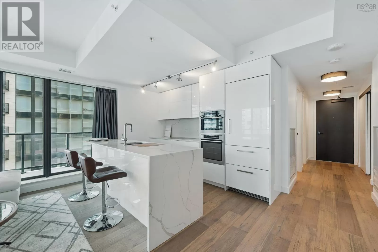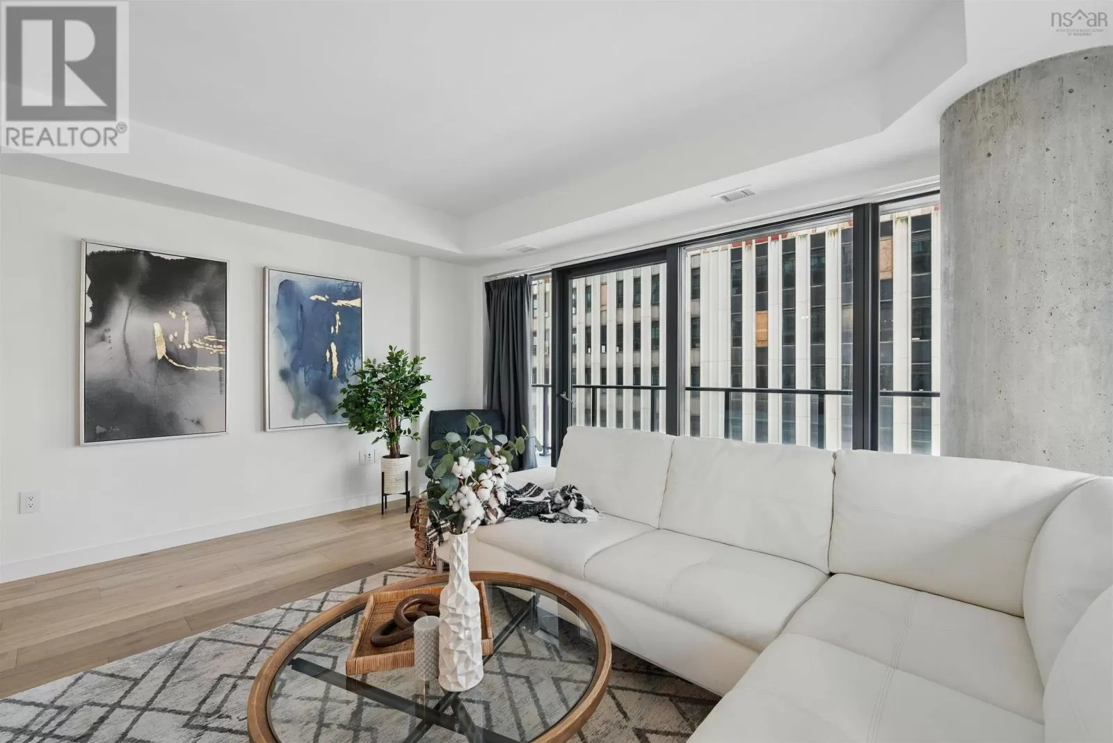 Sackville street to Granville Street The Roy - Live your best life in downtown! This 2 bedroom plus den condo gives you breath taking city views from the 335 sq foot wrap around terrace where you can relax on a warm summer evening with friends and family and enjoy the hustle and bustle of the city energy. The Roy offers the highest level of service, amenities, fitness and convenience. Each of the spacious bedrooms offers an ensuite bath, there is a dedicated office space, in suite laundry and open concept living room / kitchen. Quartz surfaces in baths and kitchen, beautifully tiled showers, and engineered hardwood throughout. The amenities you will enjoy included with your condo fees are concierge services, gym, treatment room, indoor swimming pool, private theatre, heated above ground parking, also included in your condo fees are common area maintenance, building maintenance, and water. Why not live the life you deserve in Halifax's truly luxurious building. (id:27476)
