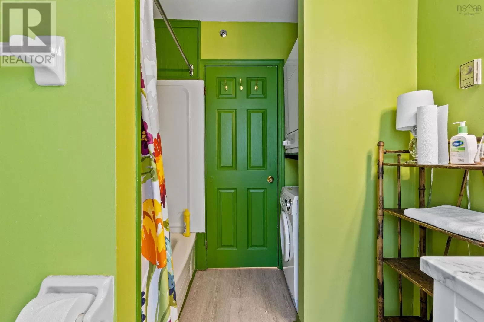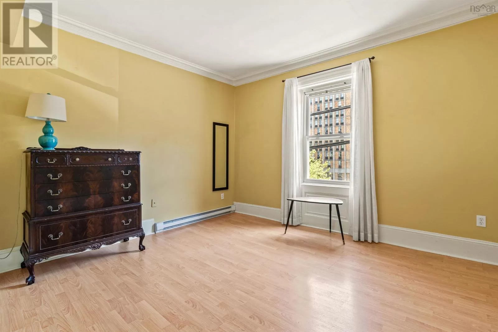 Spring Garden to Queen Street on the corner of Queen Street and Morris Street. Centrally located steps from the hospitals & universities at the heart of Halifax, this generous condo is a HIDDEN GEM! The somewhat nondescript building is actually an 1830s Schmidtville District landmark, recently awarded a prestigious heritage grant from the City of Halifax for exterior restorations & window replacements. This 2-bedroom, 1 bath approx. 1000 sq ft home has been updated, but retains loads of original features, including unique bullnose corners & historic millwork. A spacious, low-fee condo, its ideal for mature students or a small family. The large, dramatic living room features an original Georgian window casement & 12" baseboards. The master is a light-filled space large enough to accommodate a king plus working/seating area. The second generous bedroom has full closet, room for a dresser and/or desk, & comfortably fits a queen. The efficient galley-style kitchen has excellent storage & newer appliances: dishwasher, electric range & fridge plus a charming pass-through to the dining area & living room view. The cheerful full bathroom/back hall features an additional closet, storage area & rare in-unit laundry. A must-see with parking! (id:27476)
