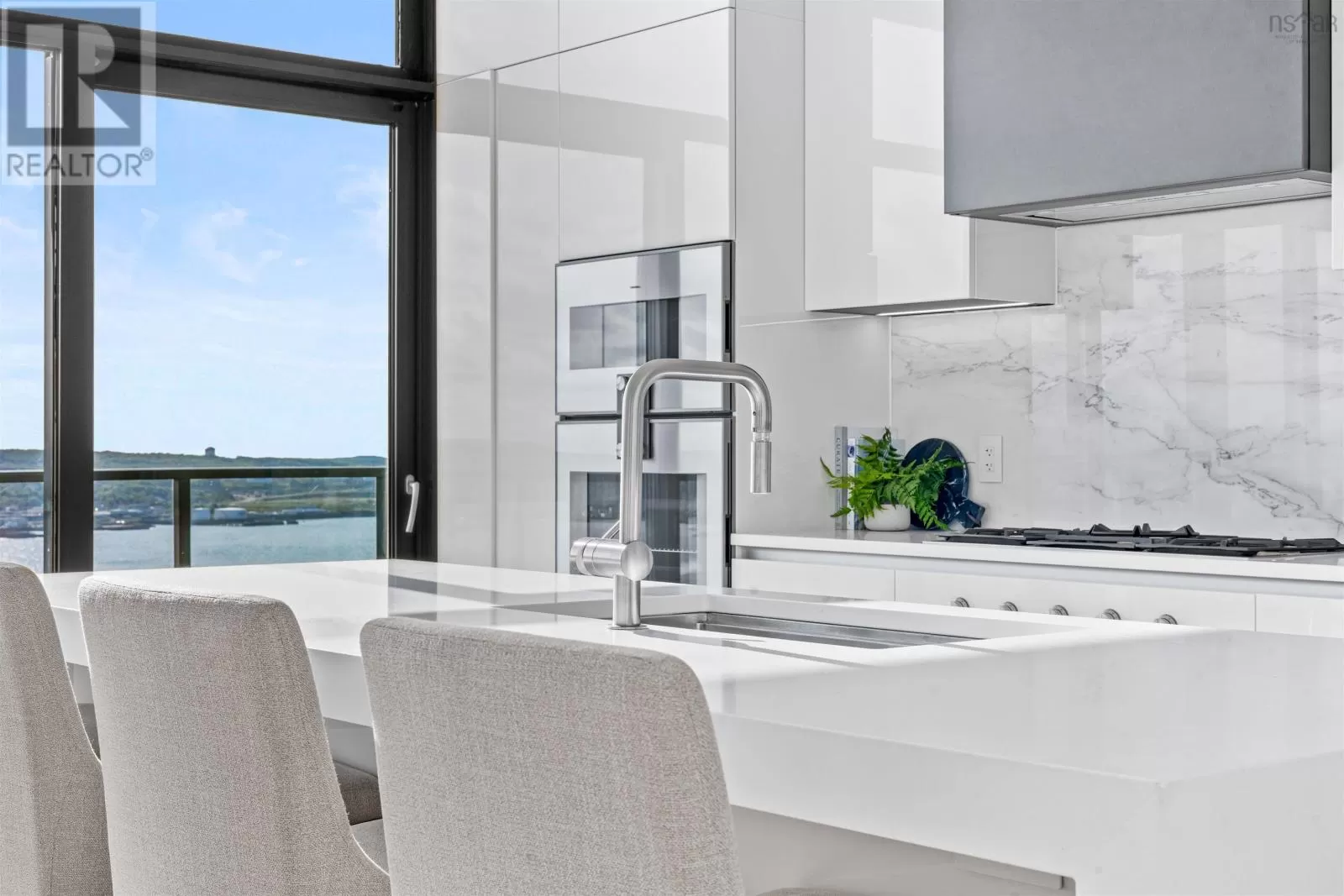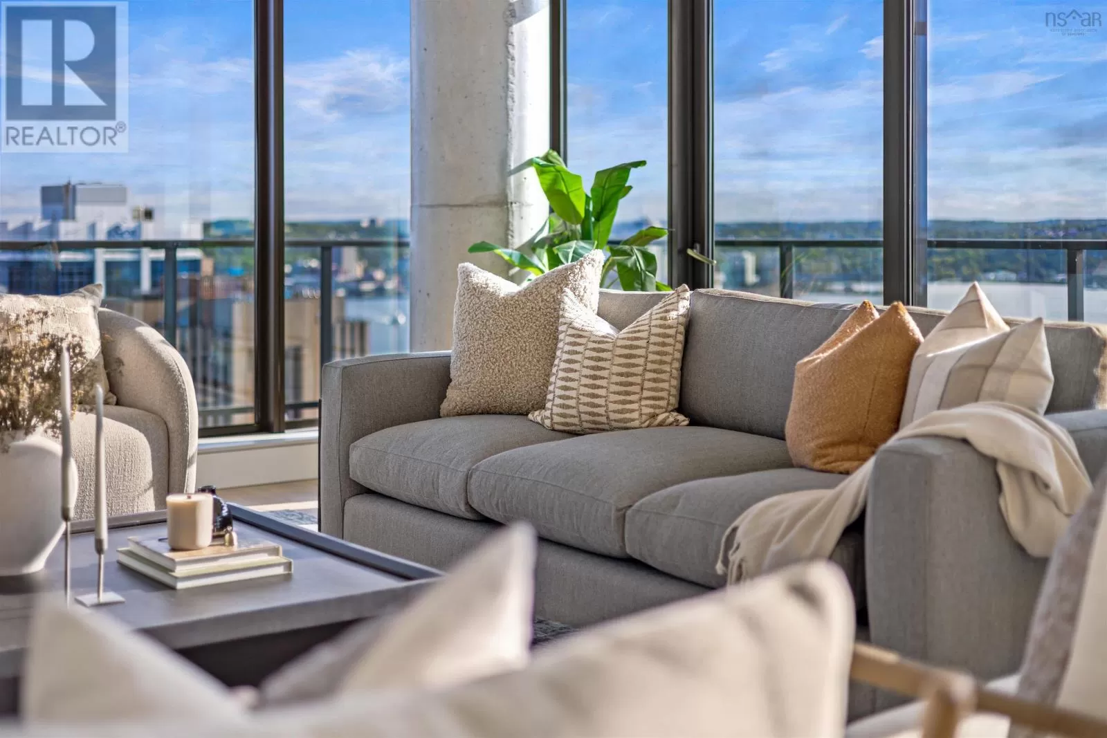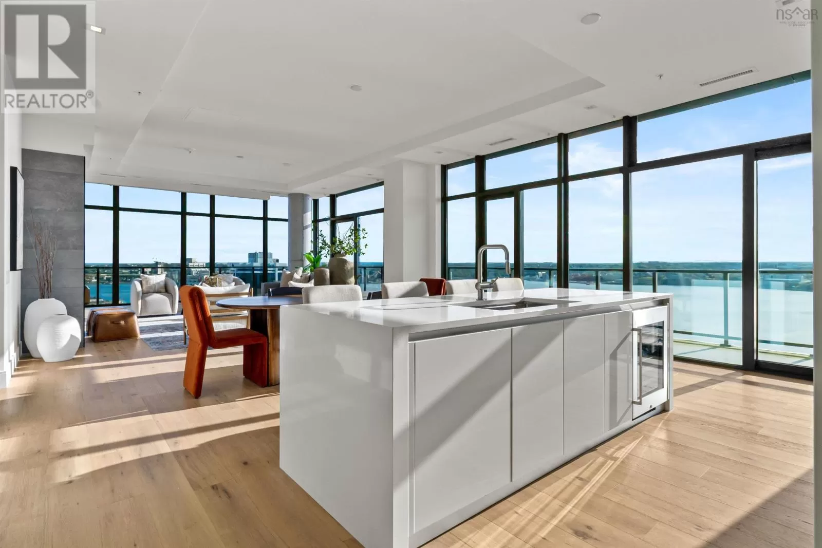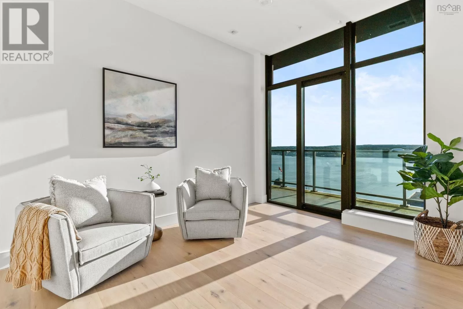 The lobby is on the corner of Sackville and Granville Street. Welcome to The Apex a newly offered penthouse that blends elevated design with breathtaking Halifax Harbour views at The Roy, the citys ultimate luxury residence. This thoughtfully designed 2,120 sq. ft. home offers a bright, modern layout that maximizes flow and functionality. Wall-to-wall windows frame the ever-changing waterfront, filling the great room with natural light and stunning views. The heart of The Apex is its contemporary kitchen, outfitted with premium Gaggenau appliances, crisp white quartz surfaces, and a striking Calacatta marble backsplash perfect for casual meals or elegant entertaining. The open-plan living and dining areas extend seamlessly to a generous 545 sq. ft. wraparound balcony, where mornings begin with sunrise coffee and evenings end with sunset cocktails over the harbour. Your tranquil primary suite includes a walk-in closet and spa-inspired ensuite with floating tub and heated floors. A spacious second bedroom, complete with its own ensuite, ensures comfort for guests or family. An elegant powder room, in-suite laundry, and ample storage round out this well-planned penthouse. Life at The Roy is designed for those who appreciate exceptional service: arrive via a state-of-the-art car elevator to secure indoor parking, while a dedicated 24-hour concierge handles the rest, from personal bookings at The Roy Club to everyday tasks. The amenity floor features everything you need: an indoor pool, steam room, sauna, gym, yoga studio, conference facilities, private theatre, library with billiards, and a stylish party room. At The Roy, everything for a life of luxury is right at home. But when youre ready to explore, Halifax secure, vibrant, and on the rise is waiting with acclaimed dining, lively shopping, the waterfront, and Citadel Hill just steps away. Step into this uppermost example of sophisticated living, where comfort, design, and views reach their zenith. (id:27476)