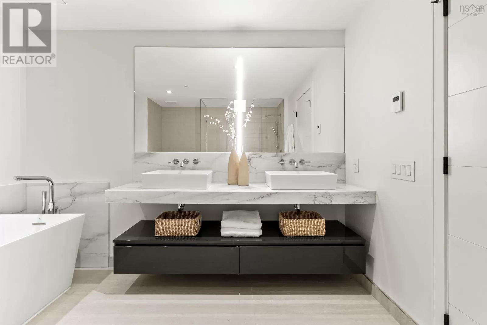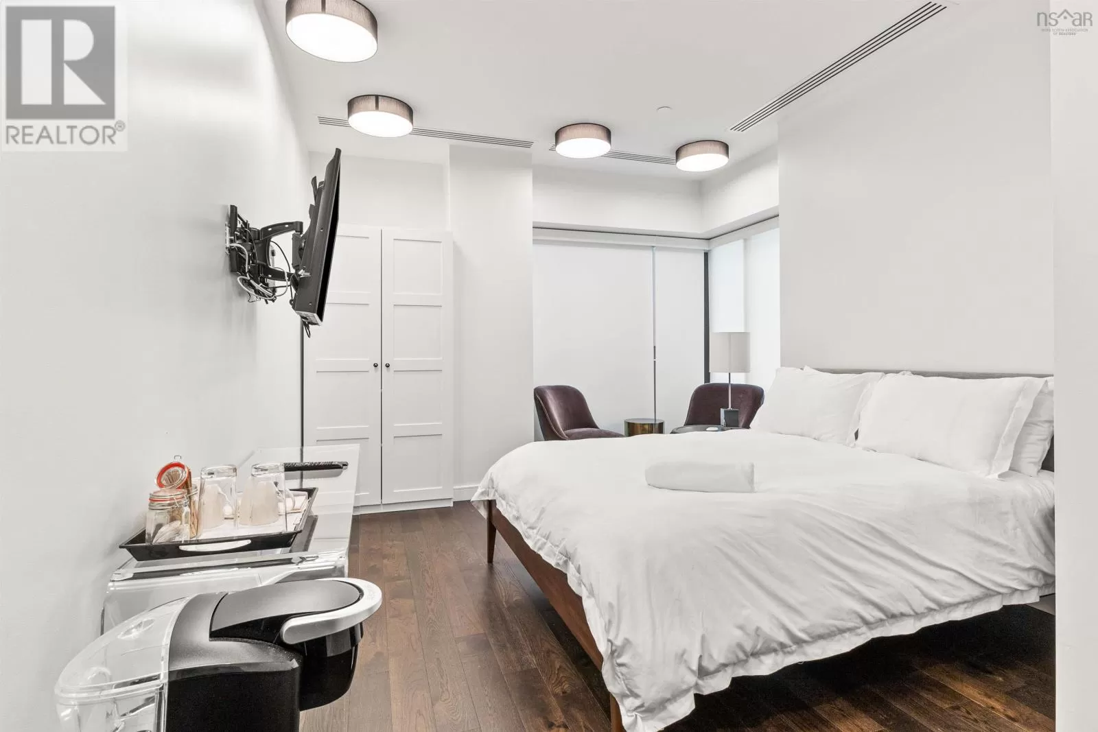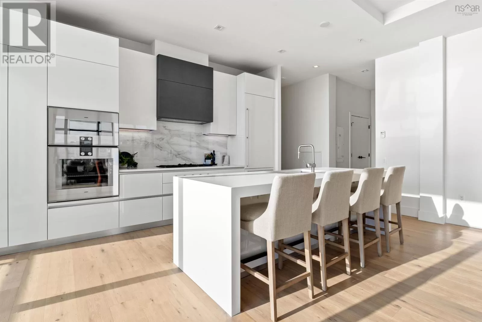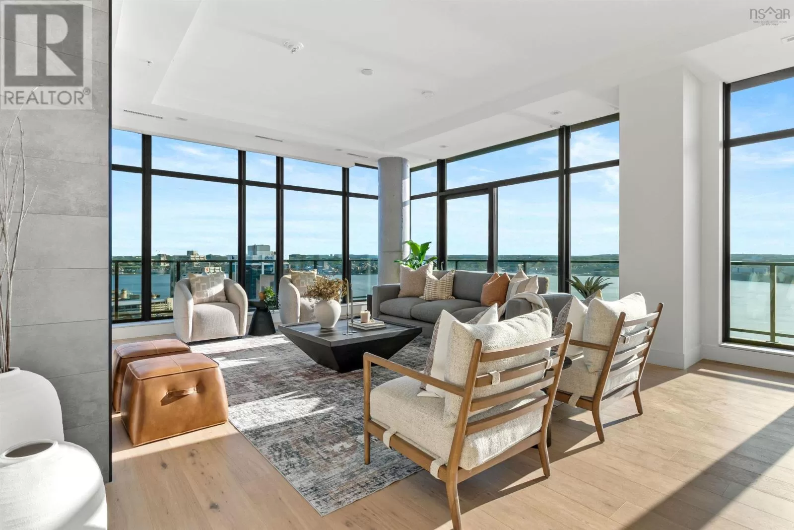 The lobby is on the corner of Sackville and Granville Street. Welcome to The Apex a newly offered penthouse that blends elevated design with breathtaking Halifax Harbour views at The Roy, the citys ultimate luxury residence. This thoughtfully designed 2,120 sq. ft. home offers a bright, modern layout that maximizes flow and functionality. Wall-to-wall windows frame the ever-changing waterfront, filling the great room with natural light and stunning views. The heart of The Apex is its contemporary kitchen, outfitted with premium Gaggenau appliances, crisp white quartz surfaces, and a striking Calacatta marble backsplash perfect for casual meals or elegant entertaining. The open-plan living and dining areas extend seamlessly to a generous 545 sq. ft. wraparound balcony, where mornings begin with sunrise coffee and evenings end with sunset cocktails over the harbour. Your tranquil primary suite includes a walk-in closet and spa-inspired ensuite with floating tub and heated floors. A spacious second bedroom, complete with its own ensuite, ensures comfort for guests or family. An elegant powder room, in-suite laundry, and ample storage round out this well-planned penthouse. Life at The Roy is designed for those who appreciate exceptional service: arrive via a state-of-the-art car elevator to secure indoor parking, while a dedicated 24-hour concierge handles the rest, from personal bookings at The Roy Club to everyday tasks. The amenity floor features everything you need: an indoor pool, steam room, sauna, gym, yoga studio, conference facilities, private theatre, library with billiards, and a stylish party room. At The Roy, everything for a life of luxury is right at home. But when youre ready to explore, Halifax secure, vibrant, and on the rise is waiting with acclaimed dining, lively shopping, the waterfront, and Citadel Hill just steps away. Step into this uppermost example of sophisticated living, where comfort, design, and views reach their zenith. (id:27476)