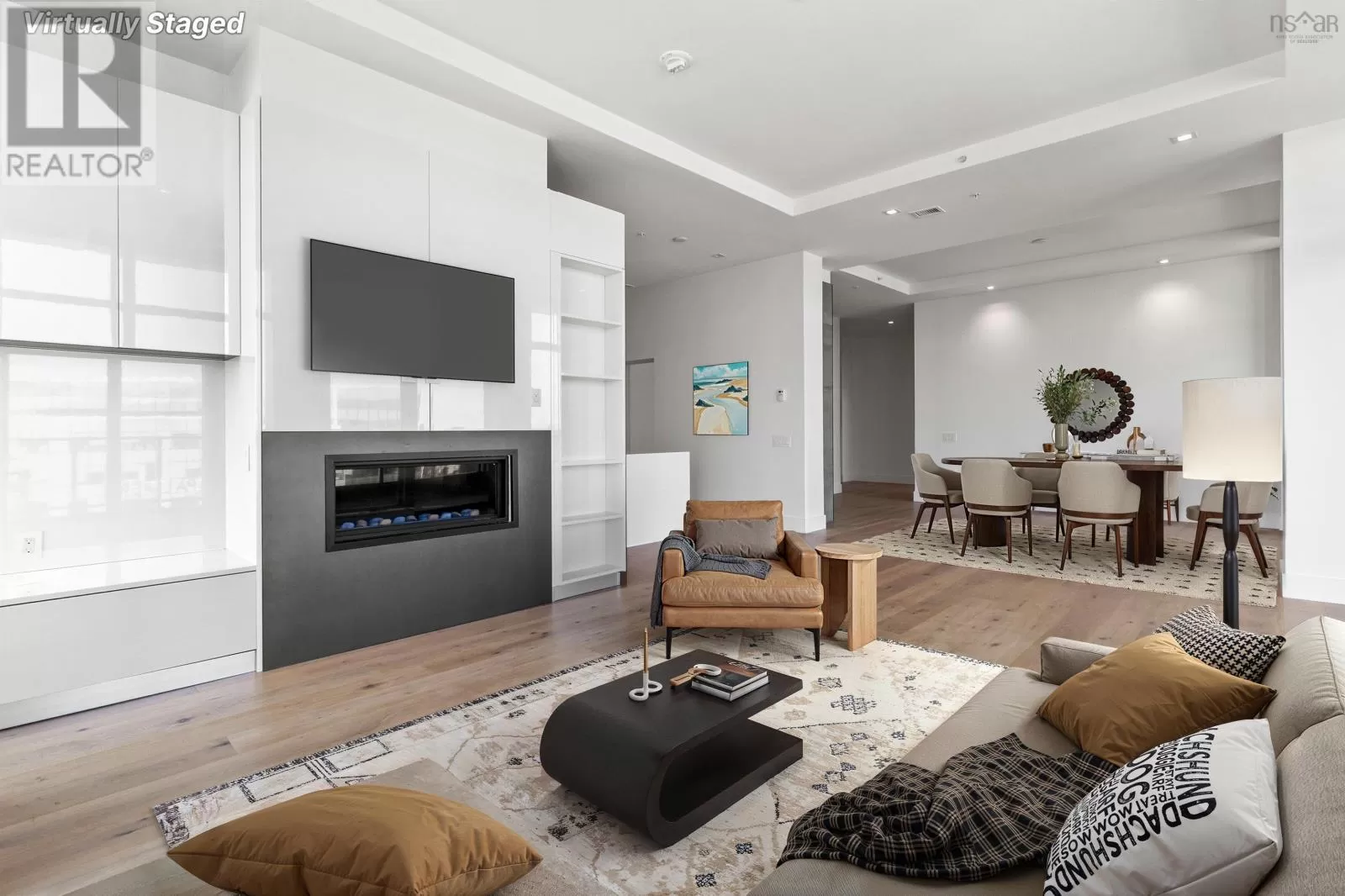 The lobby is on the corner of Sackville and Granville Street. Discover The Summit a refined penthouse residence that redefines timeless living at The Roy, Halifaxs foremost luxury address. Designed with a classic layout and generous wall space for art collectors, The Summit seamlessly balances elegance with comfort. Multiple living areas, each warmed by its own gas fireplace, invite both intimate gatherings and grand entertaining, all set against a backdrop of sweeping northwestern city views that stretch across the Harbour Bridge, Grand Parade, and glimpses of Citadel Hill. The gourmet kitchen is equipped with high-end Gaggenau appliances, pristine quartz countertops, and a Calacatta marble backsplash the perfect canvas for culinary artistry. Step onto your spacious 515 sq. ft. private deck and savour the city skyline and ocean air from your own secluded vantage point. This thoughtfully designed home includes a generous primary suite with walk-in closet and a serene ensuite with heated floors and a floating tub, plus a second bedroom and full bath for visiting guests. Secure indoor parking is provided via the innovative car elevator, all above street level for ultimate convenience. A 24-hour concierge ensures that life at The Roy is effortless, managing your daily needs and exclusive bookings at The Roy Club. Residents enjoy an entire amenity floor: unwind in the pool, steam room or sauna; stay active in the gym or yoga studio; host memorable events in the expansive party room; or relax with a film in the private theatre or a game of billiards in the library lounge. The Roy lets you live your best life without ever stepping outside, yet when you do, youre instantly in the heart of Halifax, a politically stable city with a thriving coastal economy. Award-winning restaurants, unique shops, the scenic waterfront, and the storied grounds of Citadel Hill are all just moments from your door. If classic sophistication and the best of city living are what you seek, come experience the peak of luxury living. (id:27476)