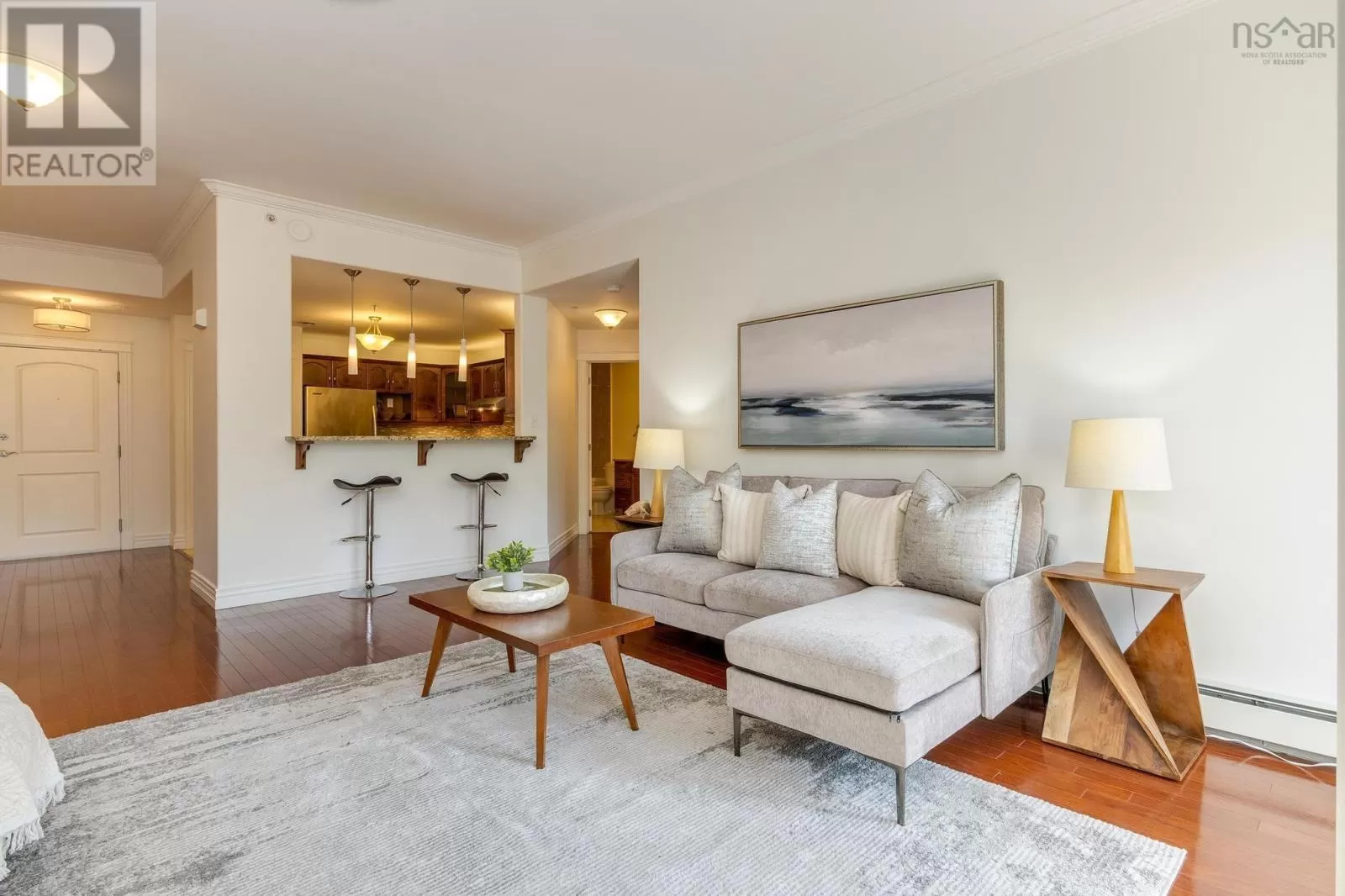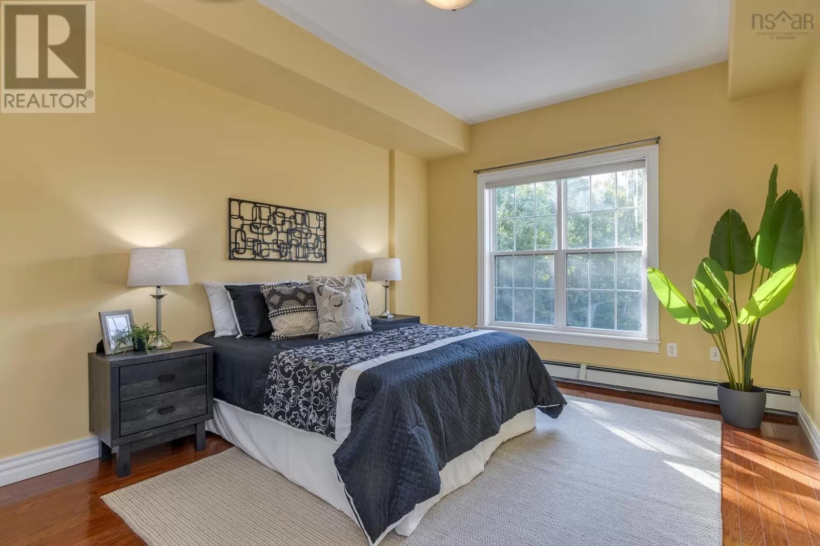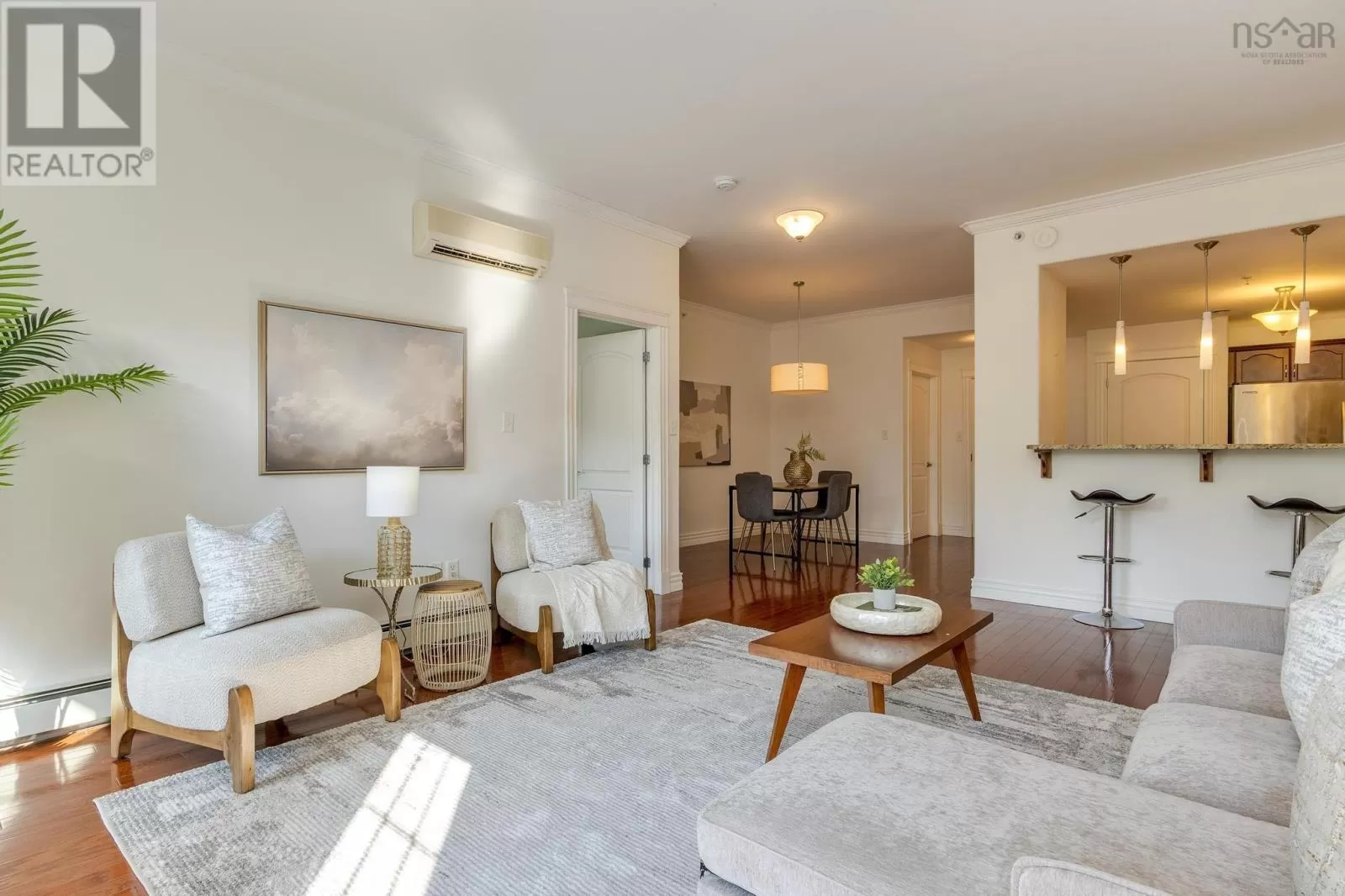 Joseph Howe Drive onto Springvale Avenue Welcome to 207-11 Springvale Avenue, a beautifully maintained 2-bedroom condo in The Fairmount, a quiet, well-managed building nestled in one of Halifaxs most desirable communities. This immaculate unit offers a spacious open-concept layout with gleaming hardwood floors, a generous kitchen with ample storage and prep space, and a bright living/dining area perfect for everyday living or entertaining. The primary bedroom features a large walk-in closet and a luxurious 5-piece ensuite. A second bedroom, full guest bath, in-unit laundry, and ductless heat pump for efficient cooling add to the comfort. Natural gas heating is included in the condo fees. Located at the back of the building, the private balcony offers a peaceful, tree-lined view overlooking the Chain of Lakes Trail. Building amenities include underground parking, a live-in superintendent, gym, library, and meeting room. Just minutes from Ashburn Golf Course, shopping, and all conveniences, this is the ideal blend of nature, comfort, and city living. (id:27476)