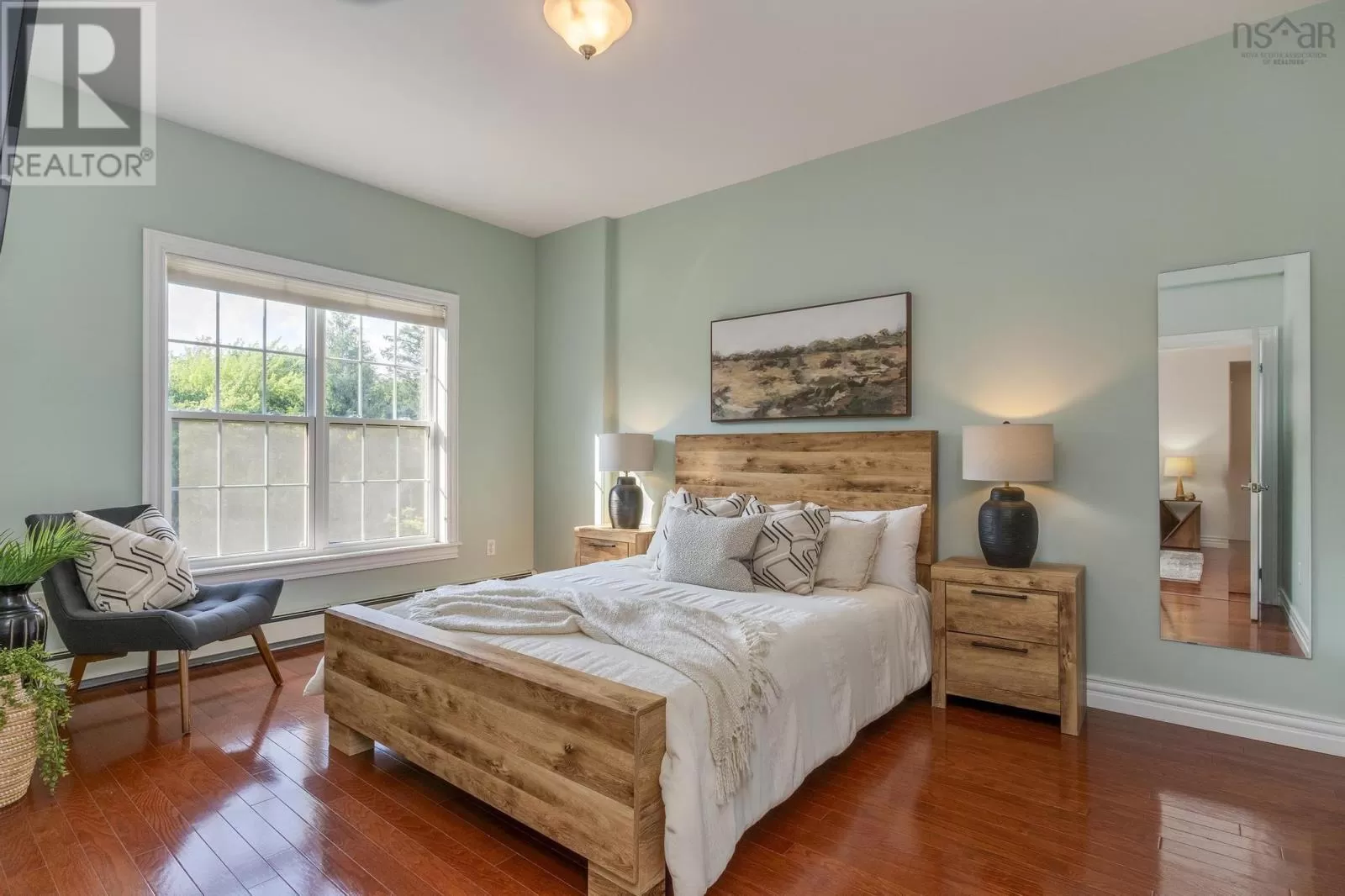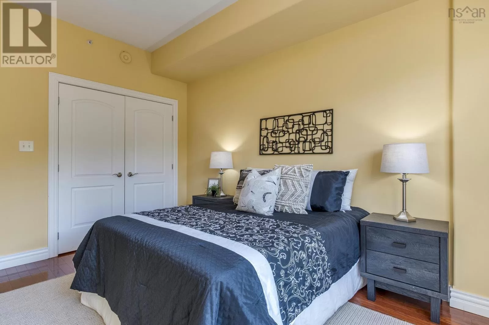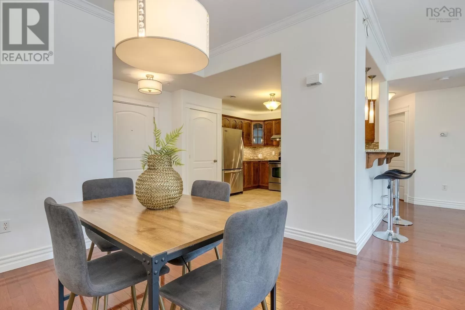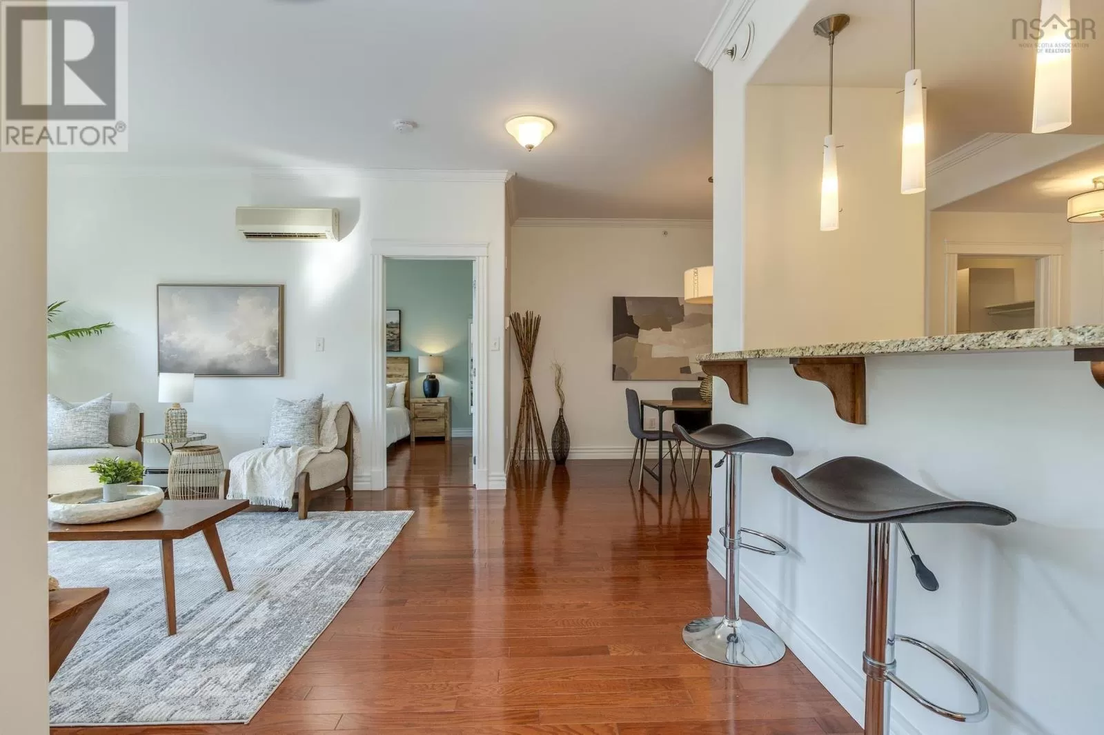 Joseph Howe Drive onto Springvale Avenue Welcome to 207-11 Springvale Avenue, a beautifully maintained 2-bedroom condo in The Fairmount, a quiet, well-managed building nestled in one of Halifaxs most desirable communities. This immaculate unit offers a spacious open-concept layout with gleaming hardwood floors, a generous kitchen with ample storage and prep space, and a bright living/dining area perfect for everyday living or entertaining. The primary bedroom features a large walk-in closet and a luxurious 5-piece ensuite. A second bedroom, full guest bath, in-unit laundry, and ductless heat pump for efficient cooling add to the comfort. Natural gas heating is included in the condo fees. Located at the back of the building, the private balcony offers a peaceful, tree-lined view overlooking the Chain of Lakes Trail. Building amenities include underground parking, a live-in superintendent, gym, library, and meeting room. Just minutes from Ashburn Golf Course, shopping, and all conveniences, this is the ideal blend of nature, comfort, and city living. (id:27476)