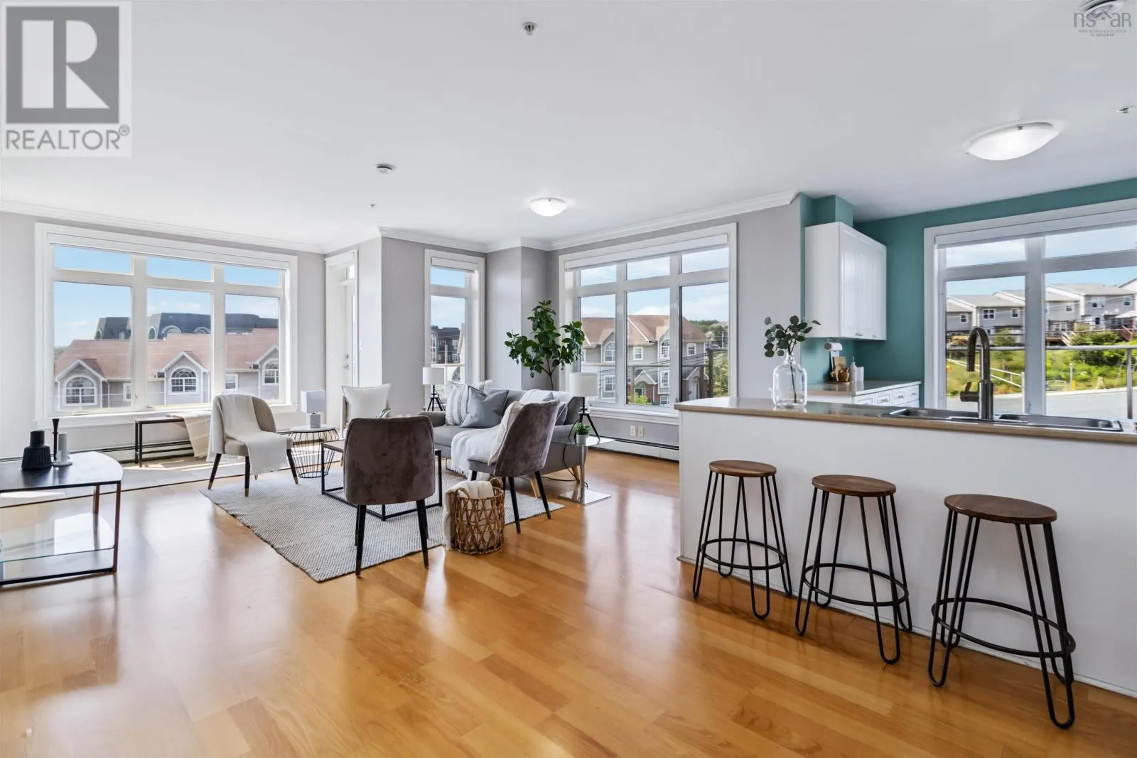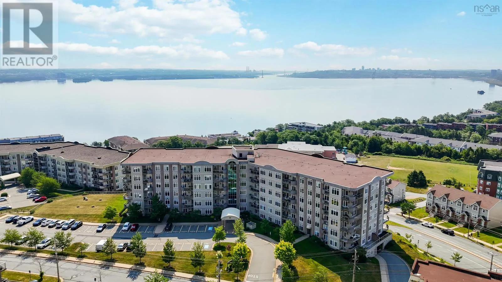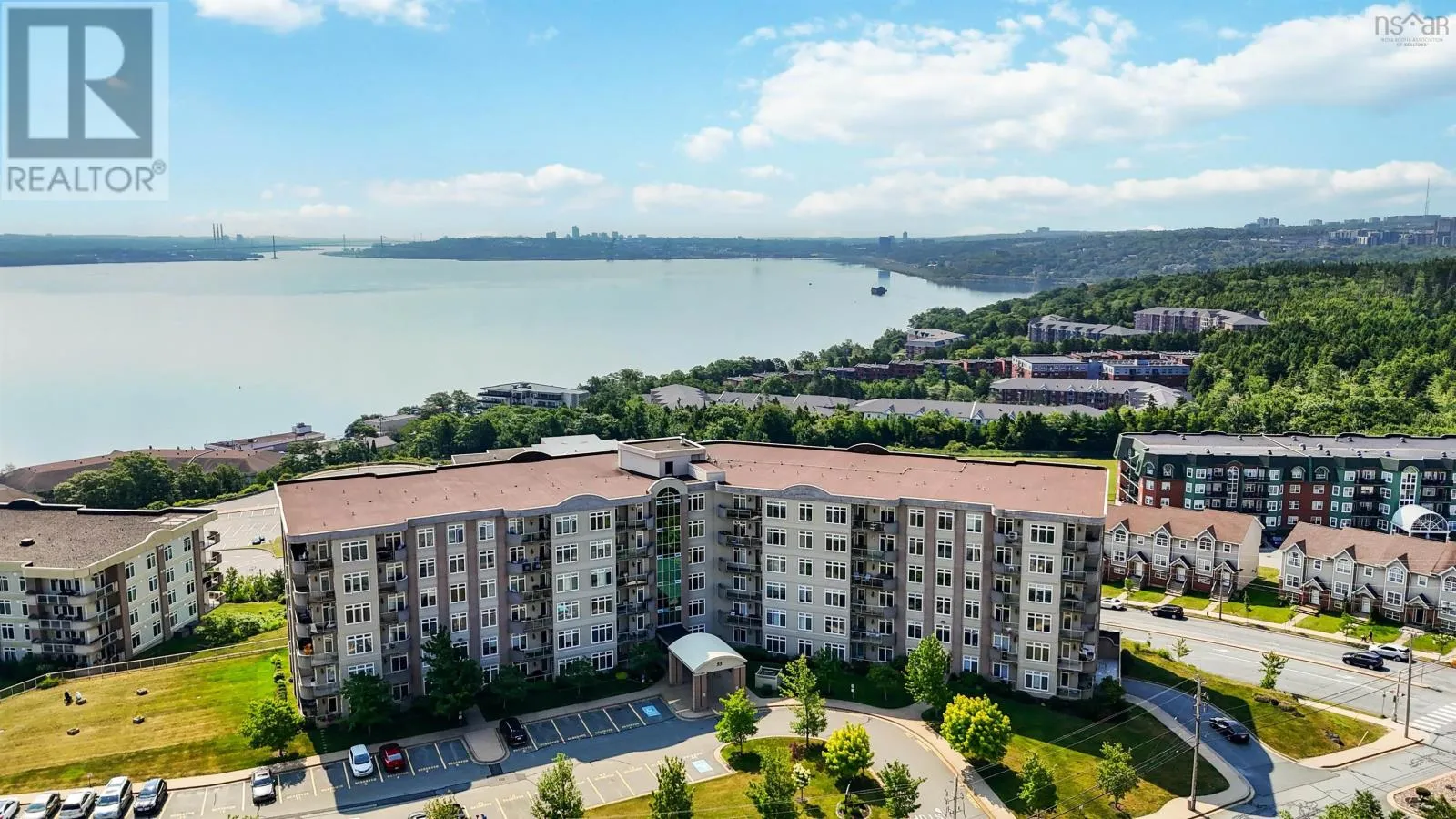 Bedford Hwy or Hwy 102 to Larry Uteck Blvd to Bedros Lane Soak in postcard-worthy, panoramic views of the Bedford Basin from this rare and luxurious 3-bedroom, 2-bath condo, one of the only 2 units in the building featuring two private balconies and access to an expansive additional outdoor space. The balconies nearly wrap around the entire unit, offering unmatched water views from every angle. From spectacular sunrises to summer regattas and dazzling city skylines, every window frames a stunning scene. Inside, the bright and airy open-concept layout is perfect for modern living, featuring a stylish kitchen with stainless steel appliances, generous cabinetry, and ample counter space. The spacious living area is filled with natural light and enhanced by high ceilings and remote-controlled window coverings for added comfort and convenience. The primary suite includes a walk-in closet and private ensuite, while the second and third bedrooms are both generously sized with large closets. Well maintained and move-in ready, this home also includes in-unit laundry with extra storage and refined finishes throughout. Condo fees include heat, hot water, underground parking, and a storage unit. Residents enjoy premium amenities such as a social room, gym, library, and car wash bay. Ideally located just minutes from the shops, restaurants, and conveniences of Larry Uteck, this exceptional condo delivers the ultimate in comfort, space, and lifestyle. (id:27476)