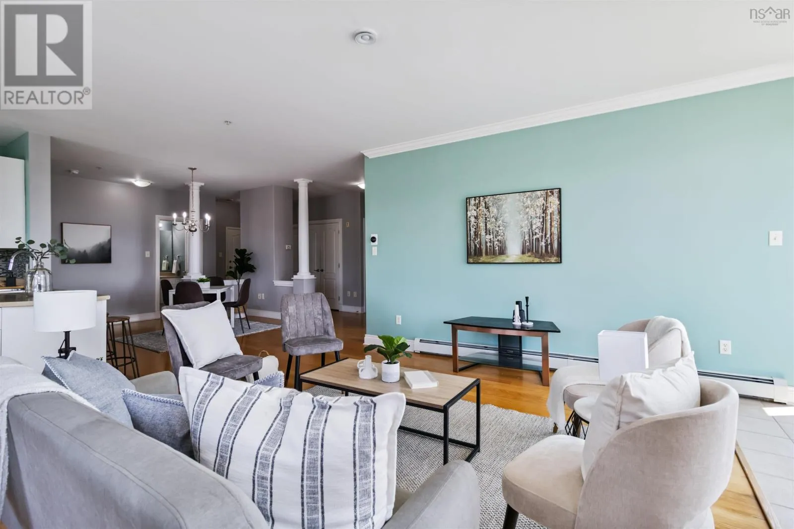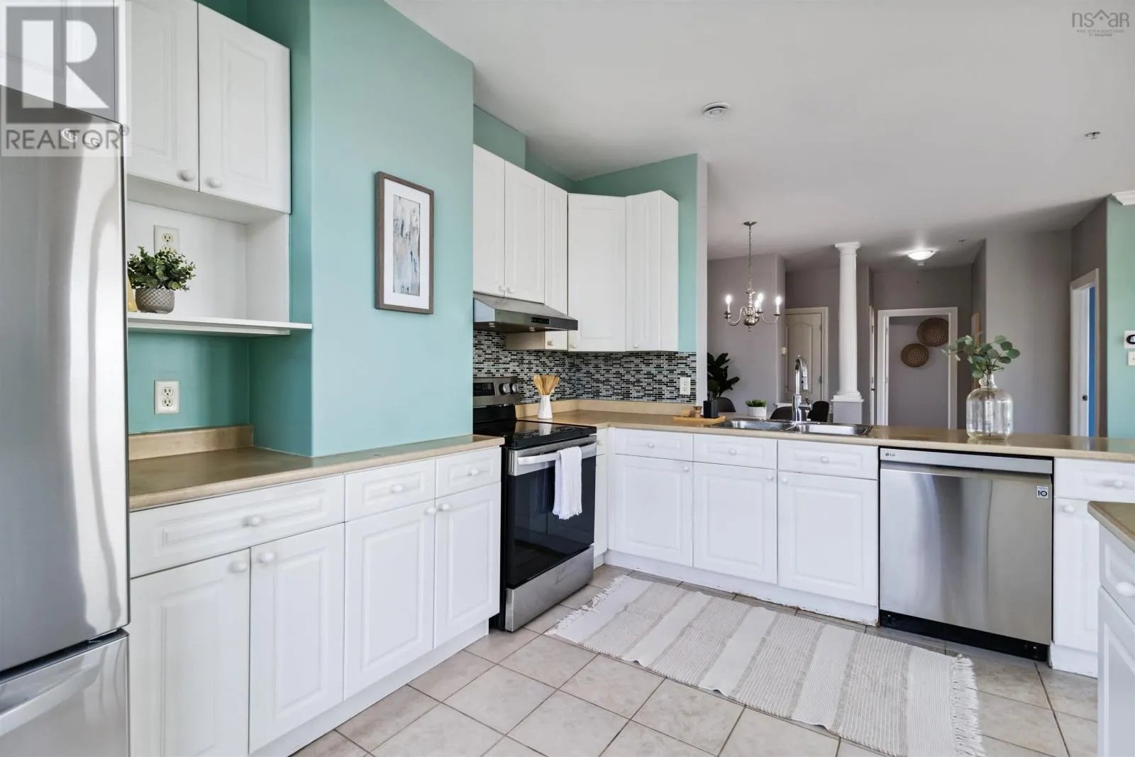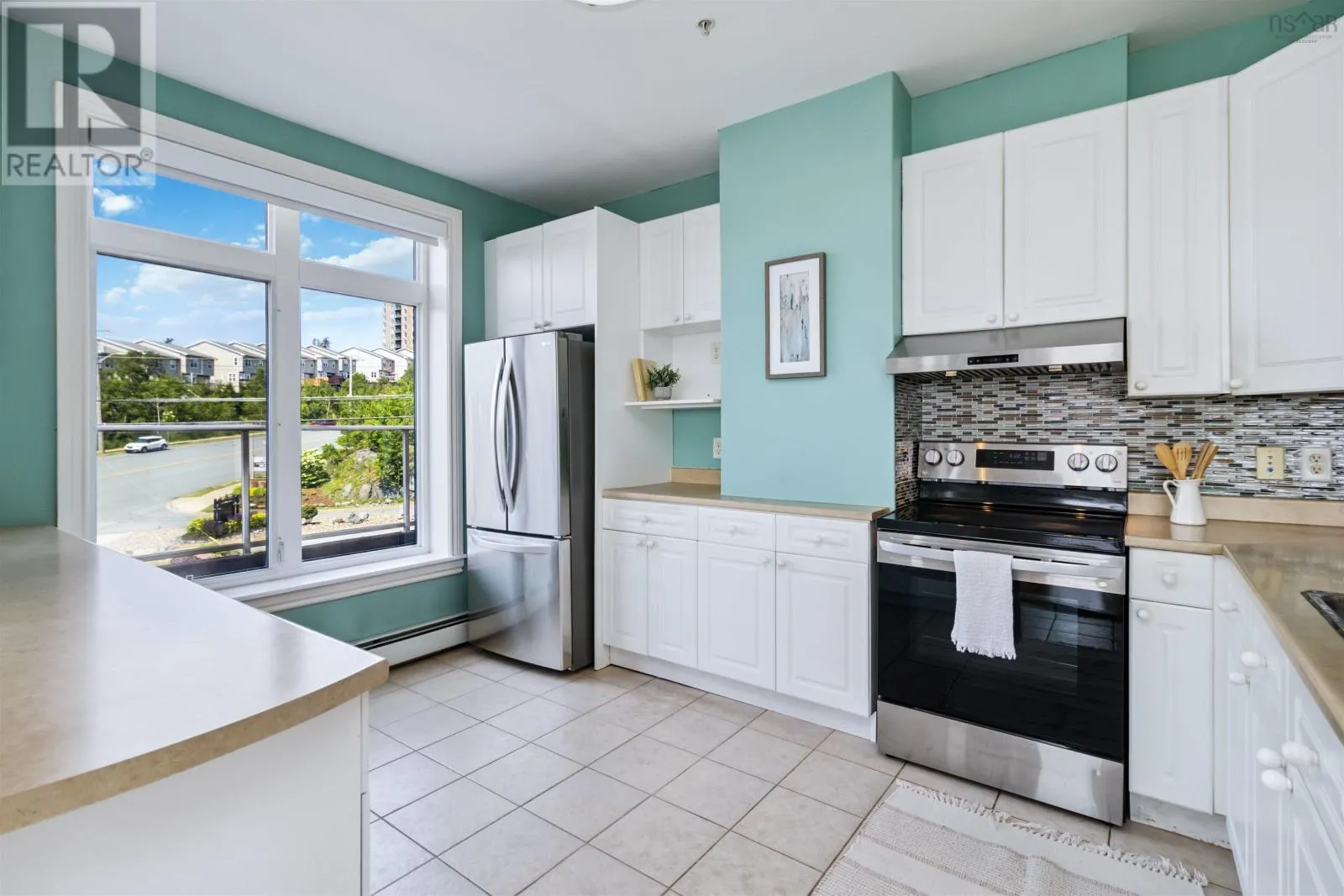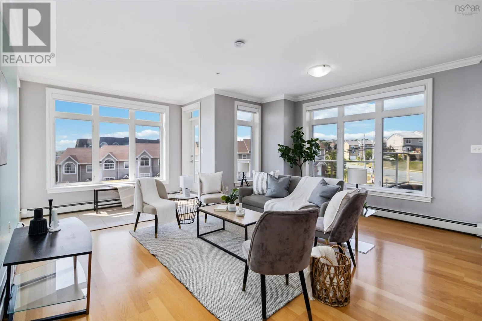 Bedford Hwy or Hwy 102 to Larry Uteck Blvd to Bedros Lane Soak in postcard-worthy, panoramic views of the Bedford Basin from this rare and luxurious 3-bedroom, 2-bath condo, one of the only 2 units in the building featuring two private balconies and access to an expansive additional outdoor space. The balconies nearly wrap around the entire unit, offering unmatched water views from every angle. From spectacular sunrises to summer regattas and dazzling city skylines, every window frames a stunning scene. Inside, the bright and airy open-concept layout is perfect for modern living, featuring a stylish kitchen with stainless steel appliances, generous cabinetry, and ample counter space. The spacious living area is filled with natural light and enhanced by high ceilings and remote-controlled window coverings for added comfort and convenience. The primary suite includes a walk-in closet and private ensuite, while the second and third bedrooms are both generously sized with large closets. Well maintained and move-in ready, this home also includes in-unit laundry with extra storage and refined finishes throughout. Condo fees include heat, hot water, underground parking, and a storage unit. Residents enjoy premium amenities such as a social room, gym, library, and car wash bay. Ideally located just minutes from the shops, restaurants, and conveniences of Larry Uteck, this exceptional condo delivers the ultimate in comfort, space, and lifestyle. (id:27476)