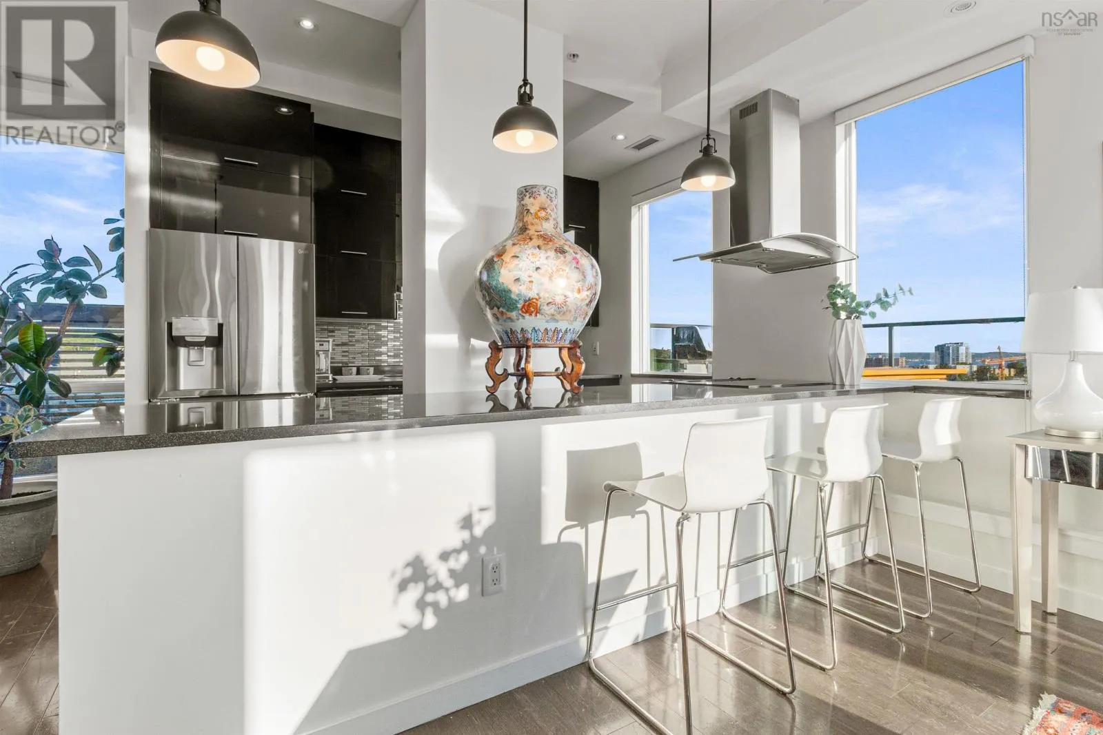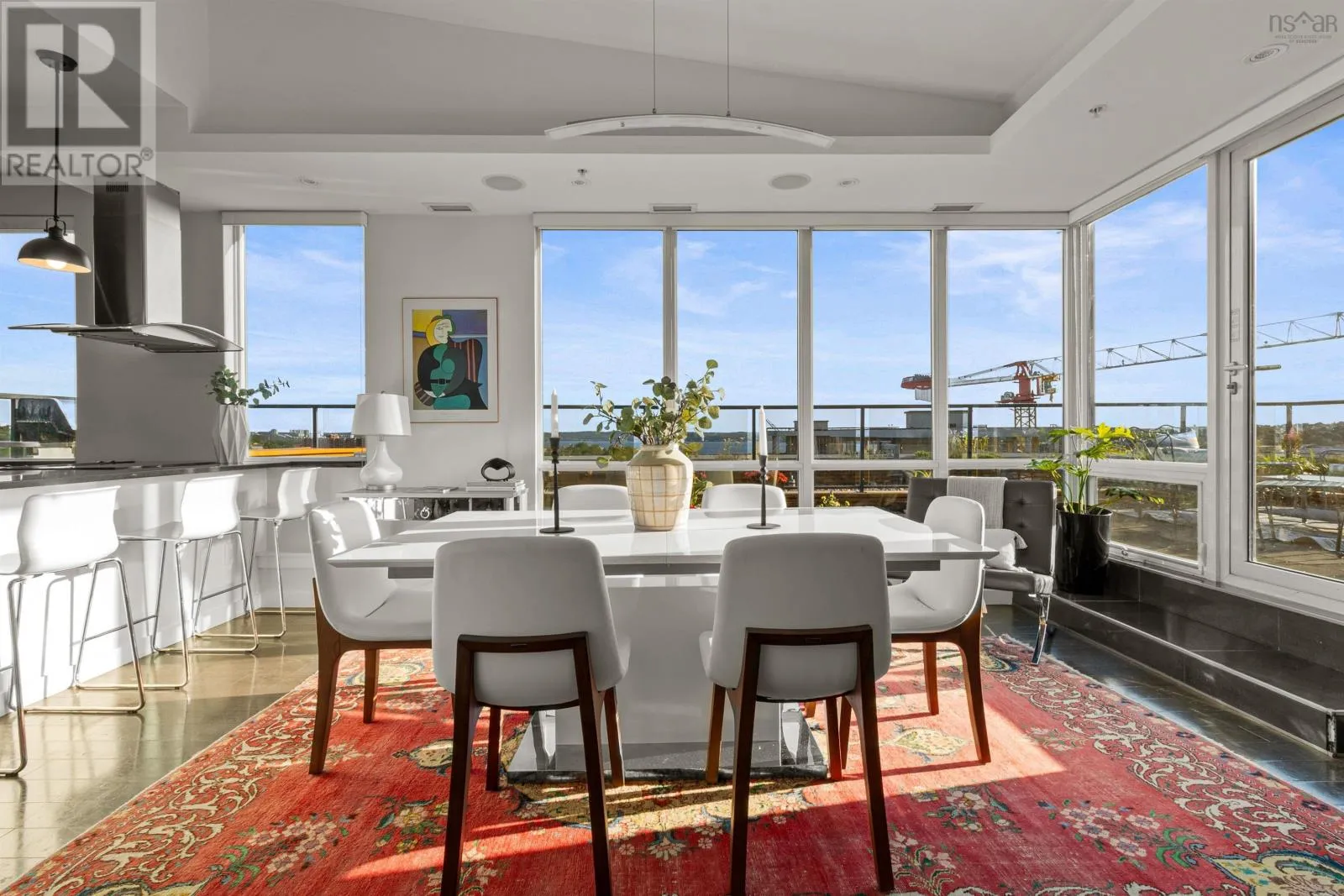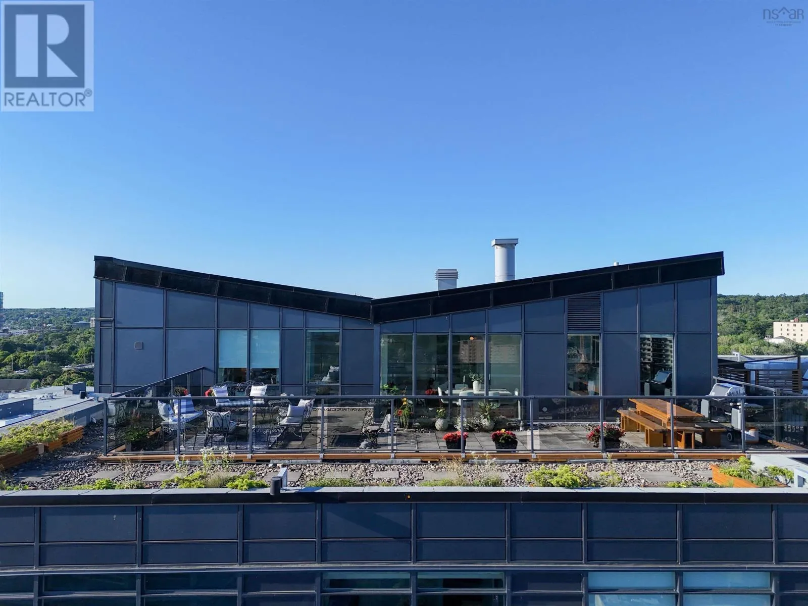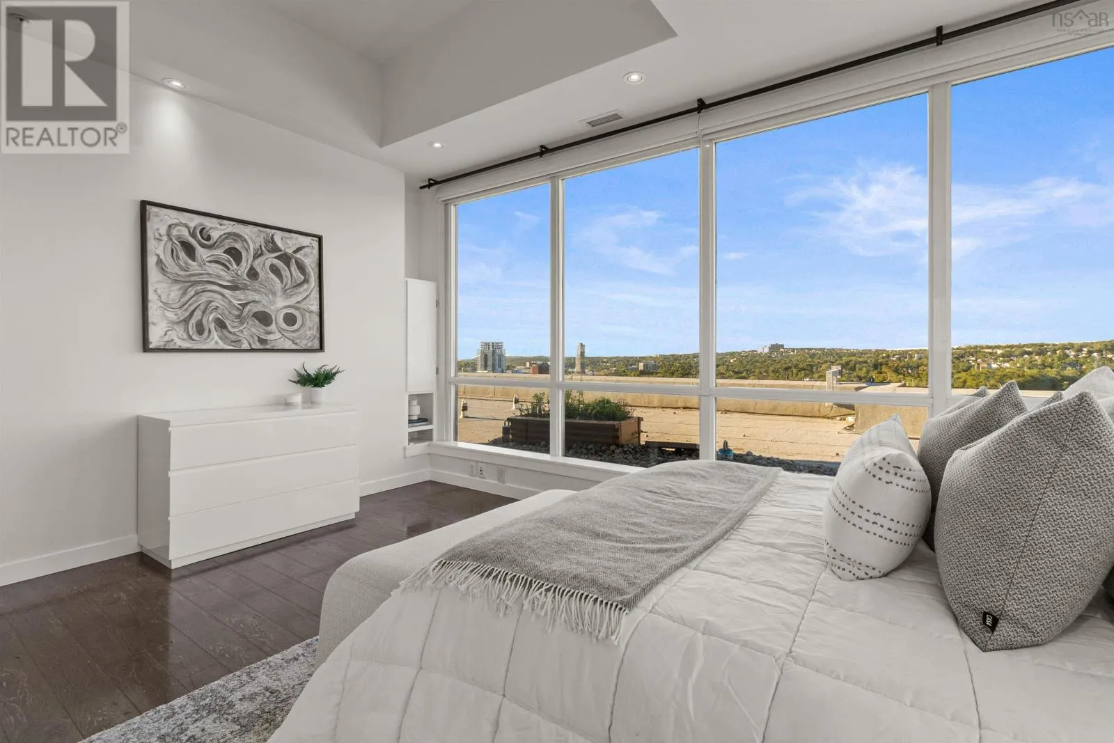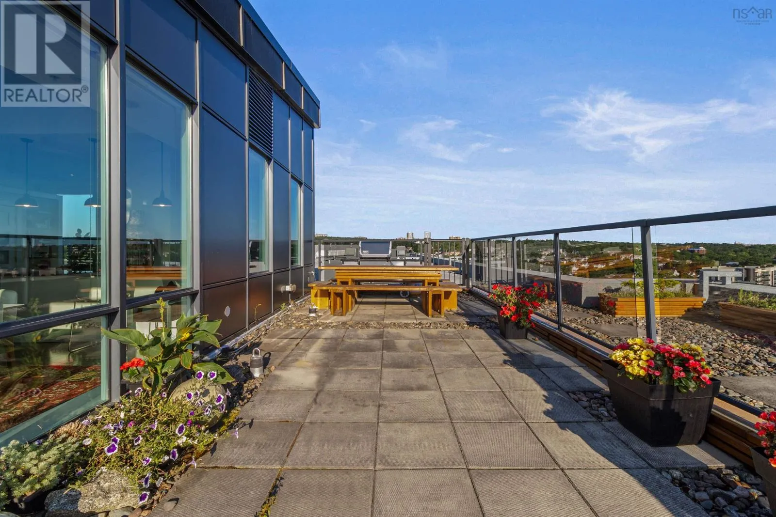 Joseph Howe to Dutch Village. Welcome and enjoy life above city in Halifaxs only true rooftop penthouse: a bold, sky-level sanctuary that lives like a private home but with all the ease and elegance of condo living. Perched atop the iconic St. Lawrence Place, this architectural one-off rises above the roofline, with no shared walls, no neighbours, and nothing but panoramic 360° views of the harbour, Bedford Basin, Northwest Arm, and city skyline. Spanning approx. 1400 sqft of intelligently designed interior space plus a 750 sqft private wraparound terrace. this entire 14th-floor residence is a masterclass in intention and execution. Designed by the current owner, who also designed the entire building, a renowned architect behind 140+ buildings in Halifax, every detail reflects purpose, precision, and presence. Inside, youll find sun-drenched living and dining spaces, custom millwork, curated finishes, in-unit laundry, and a spa-worthy ensuite. Master bedroom with floor-to ceiling glass walls that fill the space with natural light and showcase the view of the city. The kitchen is streamlined and stylish equipped with stainless steel appliances, a glass tile backsplash, with the ducted heat pump delivers efficient comfort year-round. Enjoy private and the expansive terrace is an ideal for outdoor dining, relaxing or entertainer above the sky s dream, or your own private sky retreat. The building offers all the extras: a fitness centre, social room, underground parking, and private large storage. Located just off the Peninsula, youre steps to essentials and minutes from downtown, with easy access to major routes, Shopper Drug Mart, Superstore, banks, chain of lakes trail is unbeatable convenience location. Whether youre a globe-trotter, downsizer, or collector of irreplaceable properties, this penthouse isnt just rare its untouchable. Architecturally iconic. Elevated living. A true legacy in the sky. (id:27476)