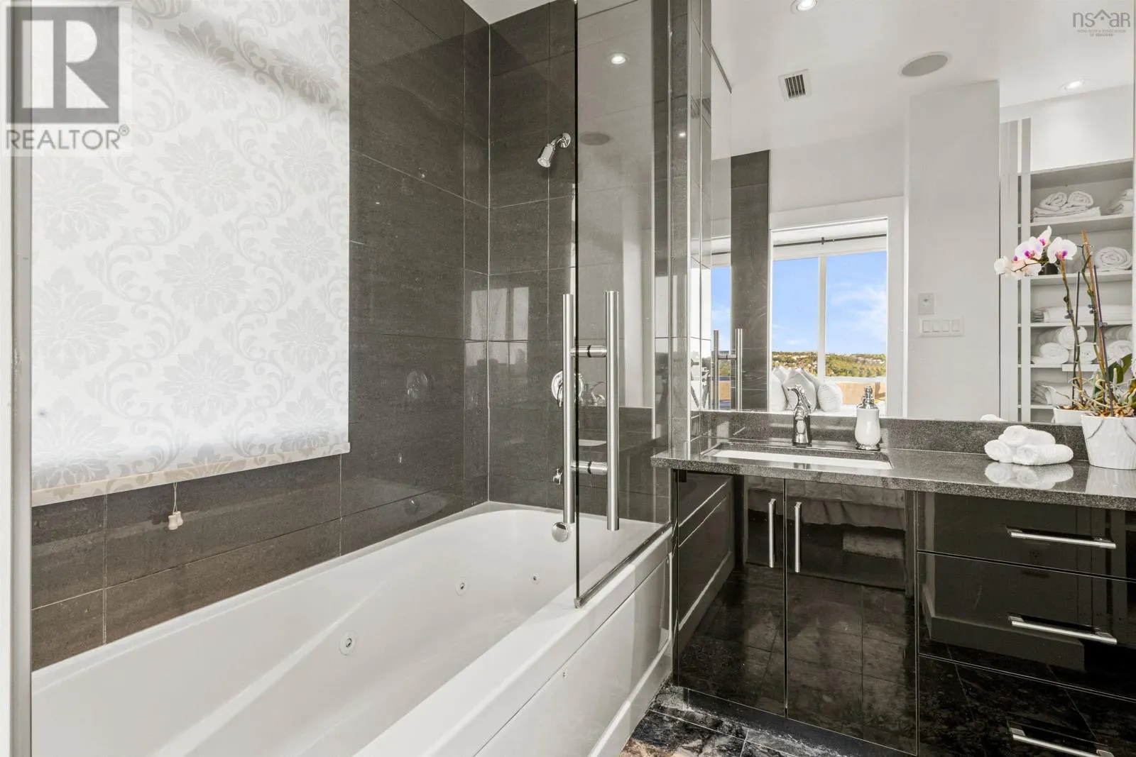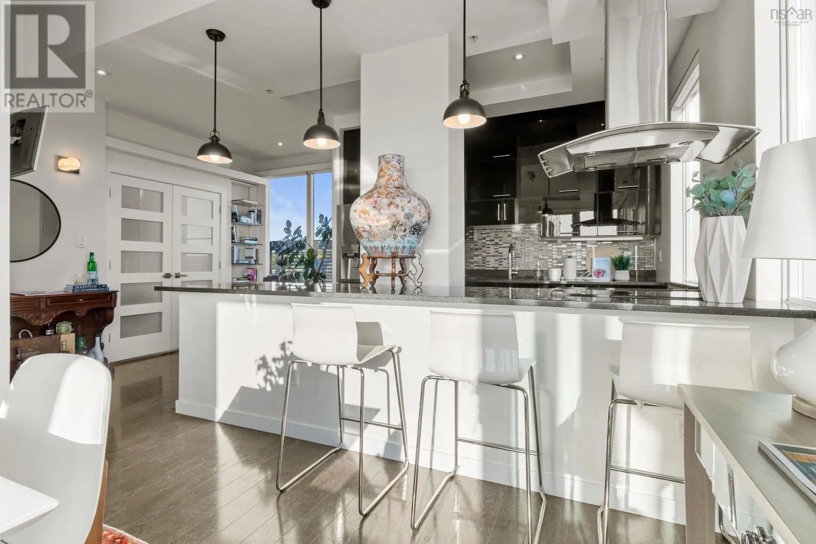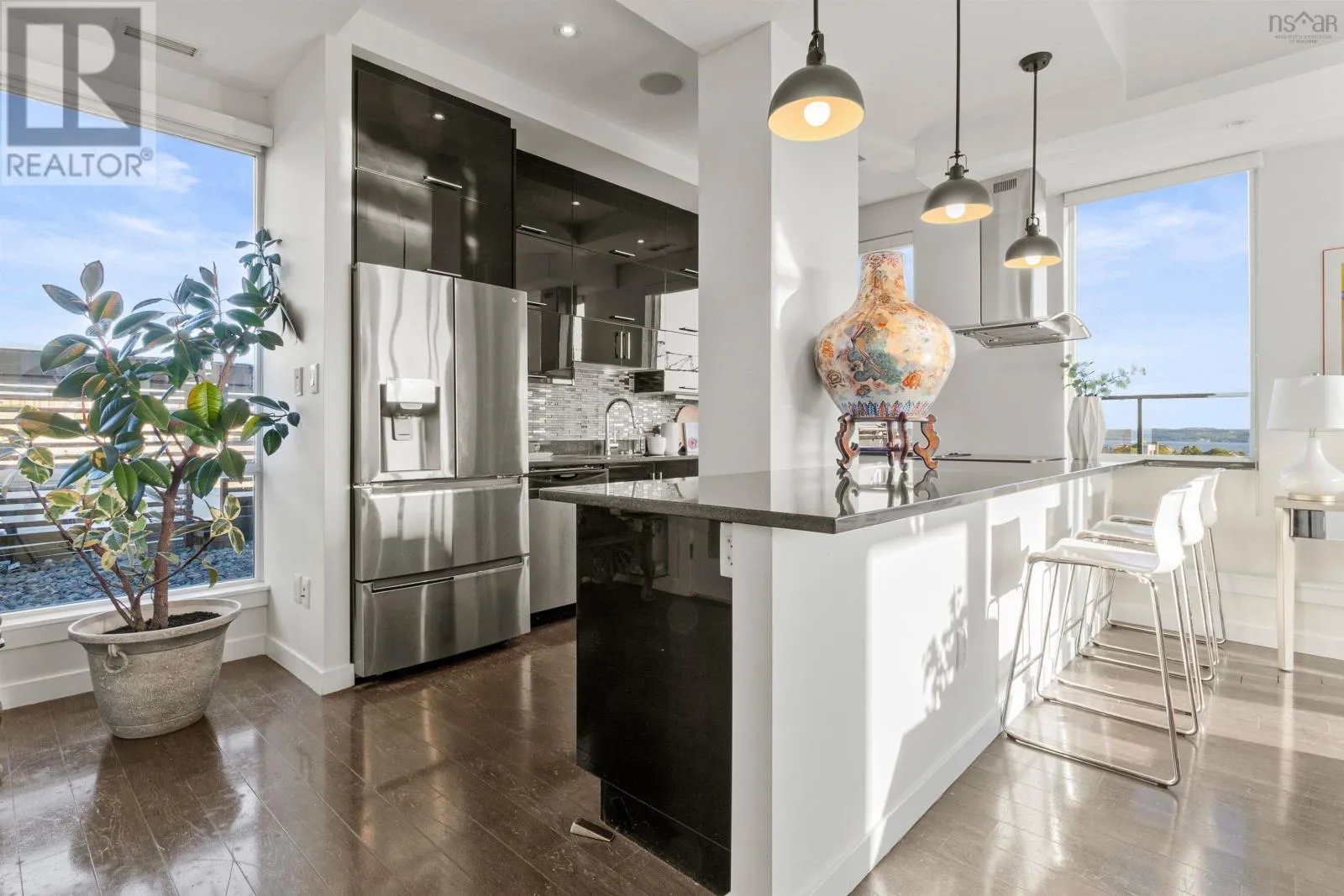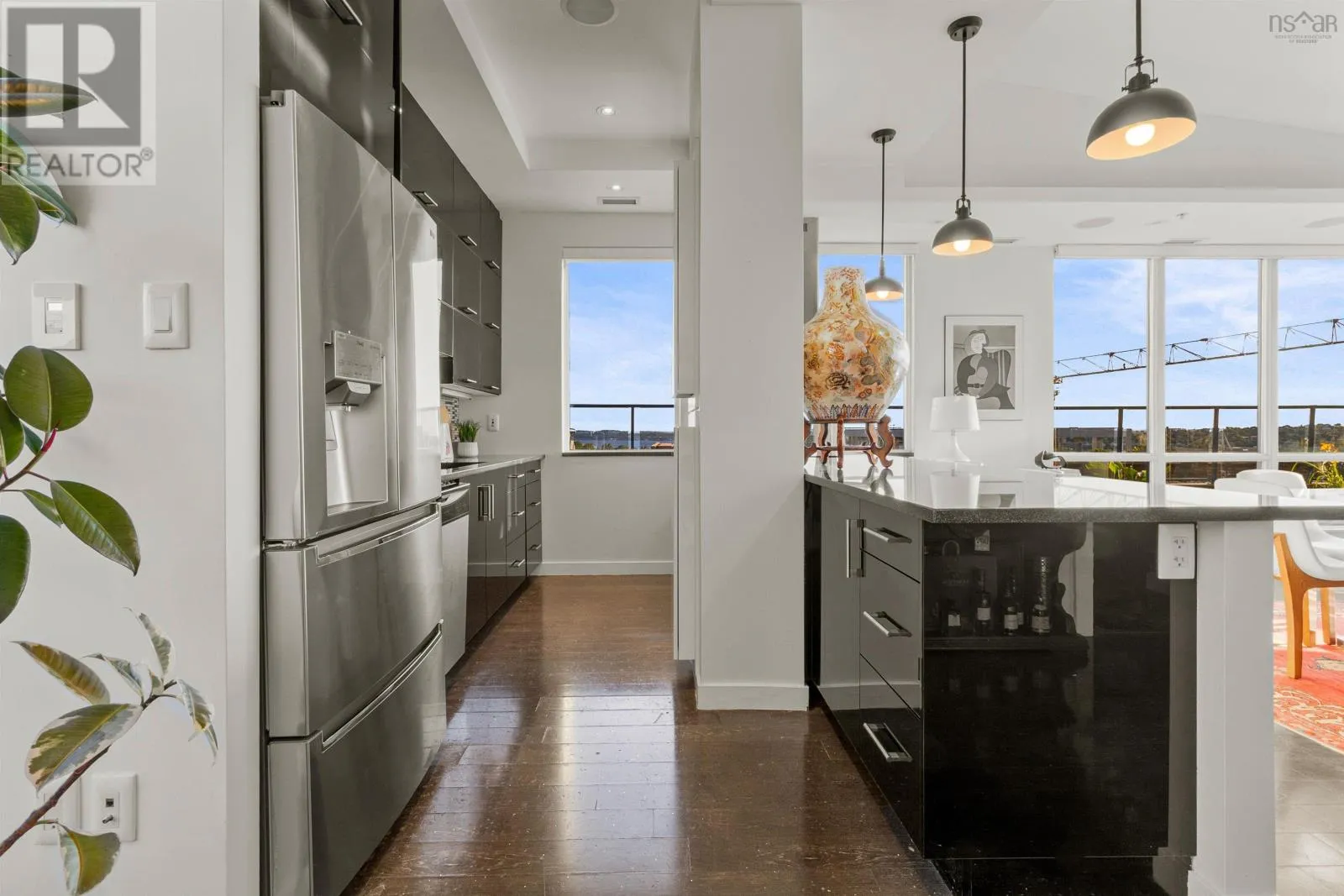 Joseph Howe to Dutch Village. Welcome and enjoy life above city in Halifaxs only true rooftop penthouse: a bold, sky-level sanctuary that lives like a private home but with all the ease and elegance of condo living. Perched atop the iconic St. Lawrence Place, this architectural one-off rises above the roofline, with no shared walls, no neighbours, and nothing but panoramic 360° views of the harbour, Bedford Basin, Northwest Arm, and city skyline. Spanning approx. 1400 sqft of intelligently designed interior space plus a 750 sqft private wraparound terrace. this entire 14th-floor residence is a masterclass in intention and execution. Designed by the current owner, who also designed the entire building, a renowned architect behind 140+ buildings in Halifax, every detail reflects purpose, precision, and presence. Inside, youll find sun-drenched living and dining spaces, custom millwork, curated finishes, in-unit laundry, and a spa-worthy ensuite. Master bedroom with floor-to ceiling glass walls that fill the space with natural light and showcase the view of the city. The kitchen is streamlined and stylish equipped with stainless steel appliances, a glass tile backsplash, with the ducted heat pump delivers efficient comfort year-round. Enjoy private and the expansive terrace is an ideal for outdoor dining, relaxing or entertainer above the sky s dream, or your own private sky retreat. The building offers all the extras: a fitness centre, social room, underground parking, and private large storage. Located just off the Peninsula, youre steps to essentials and minutes from downtown, with easy access to major routes, Shopper Drug Mart, Superstore, banks, chain of lakes trail is unbeatable convenience location. Whether youre a globe-trotter, downsizer, or collector of irreplaceable properties, this penthouse isnt just rare its untouchable. Architecturally iconic. Elevated living. A true legacy in the sky. (id:27476)