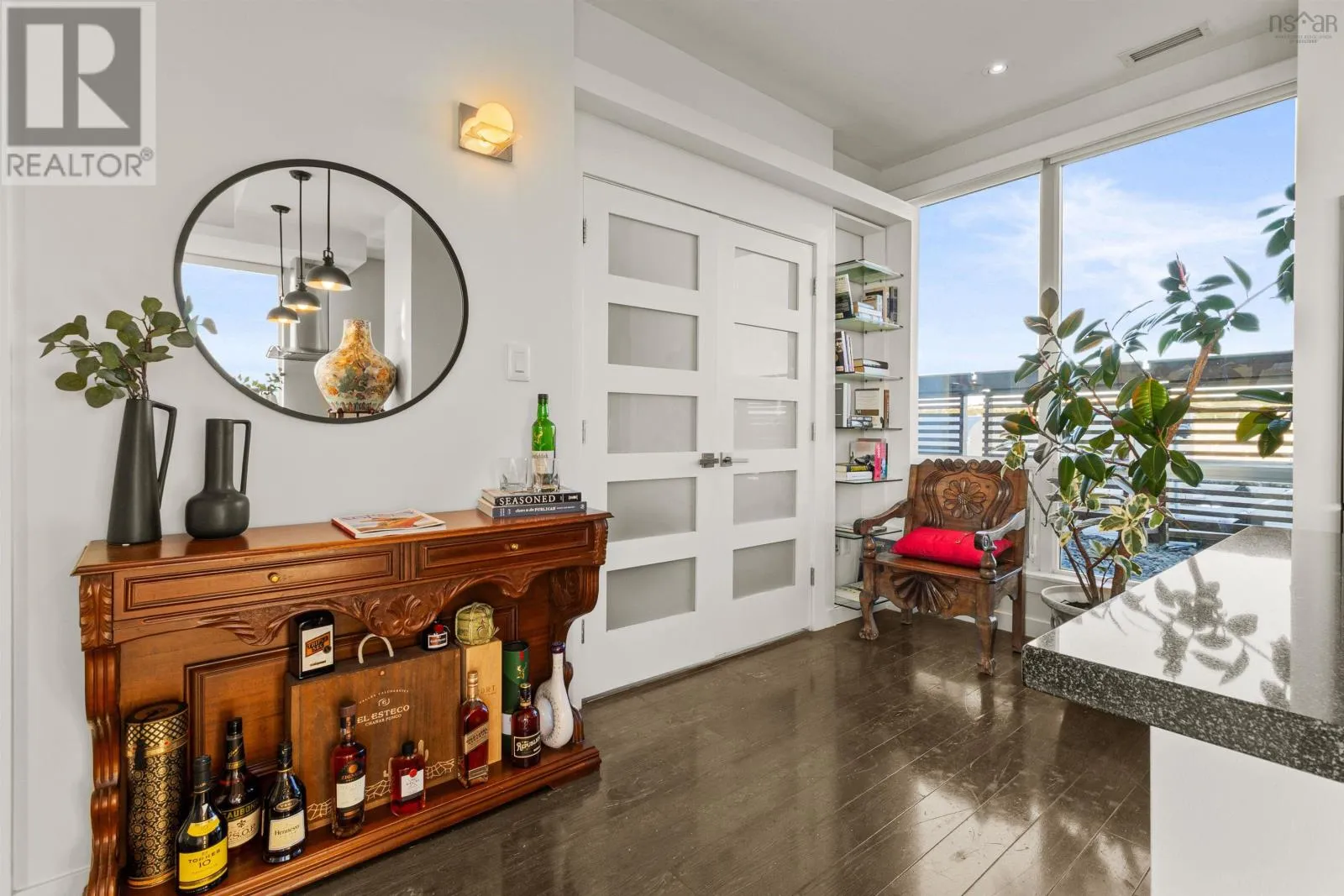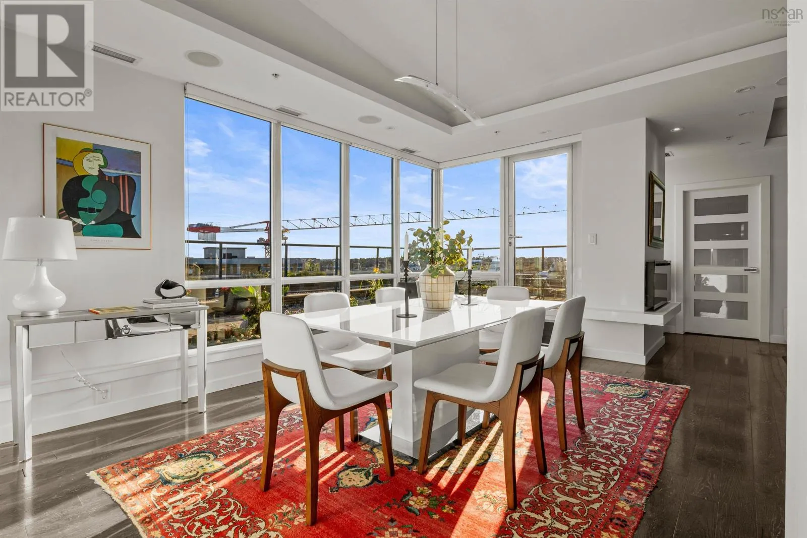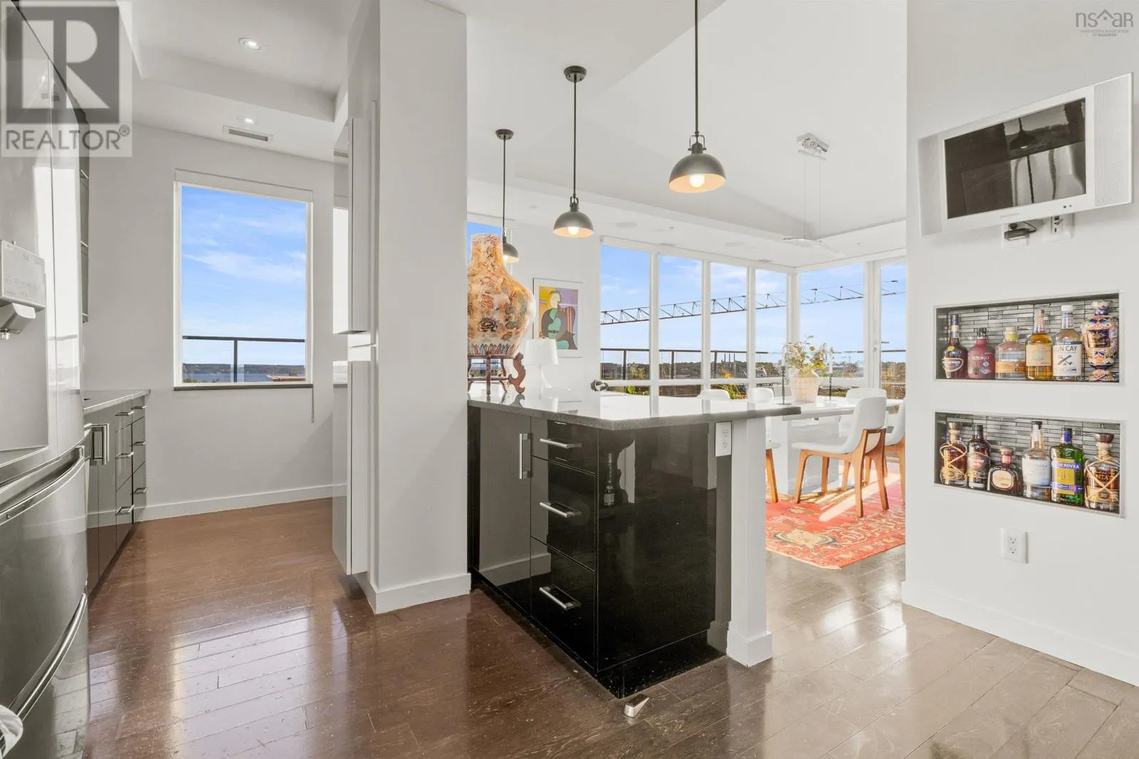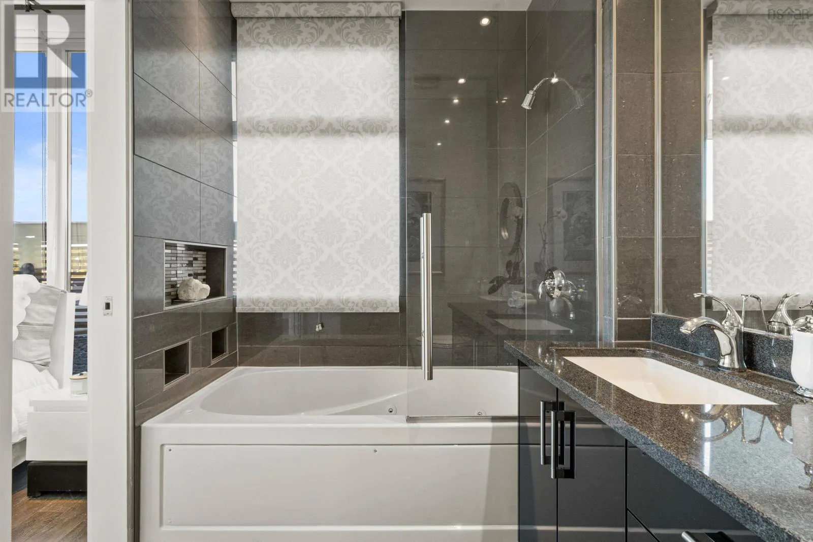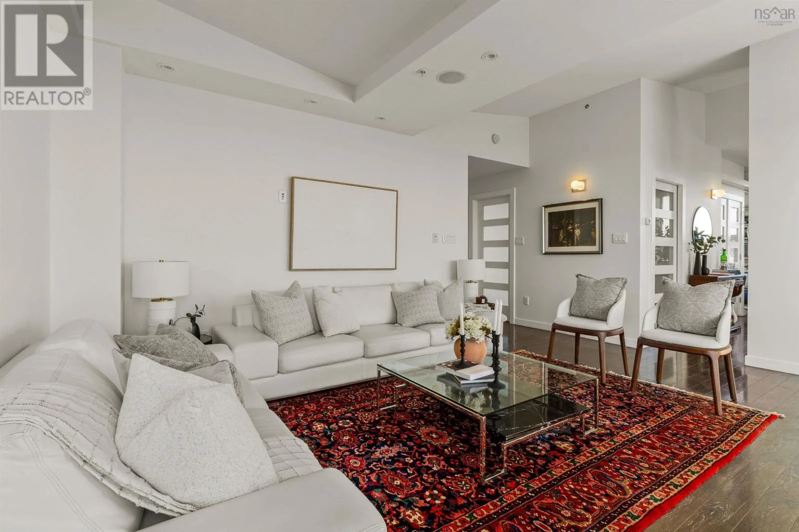 Joseph Howe to Dutch Village. Welcome and enjoy life above city in Halifaxs only true rooftop penthouse: a bold, sky-level sanctuary that lives like a private home but with all the ease and elegance of condo living. Perched atop the iconic St. Lawrence Place, this architectural one-off rises above the roofline, with no shared walls, no neighbours, and nothing but panoramic 360° views of the harbour, Bedford Basin, Northwest Arm, and city skyline. Spanning approx. 1400 sqft of intelligently designed interior space plus a 750 sqft private wraparound terrace. this entire 14th-floor residence is a masterclass in intention and execution. Designed by the current owner, who also designed the entire building, a renowned architect behind 140+ buildings in Halifax, every detail reflects purpose, precision, and presence. Inside, youll find sun-drenched living and dining spaces, custom millwork, curated finishes, in-unit laundry, and a spa-worthy ensuite. Master bedroom with floor-to ceiling glass walls that fill the space with natural light and showcase the view of the city. The kitchen is streamlined and stylish equipped with stainless steel appliances, a glass tile backsplash, with the ducted heat pump delivers efficient comfort year-round. Enjoy private and the expansive terrace is an ideal for outdoor dining, relaxing or entertainer above the sky s dream, or your own private sky retreat. The building offers all the extras: a fitness centre, social room, underground parking, and private large storage. Located just off the Peninsula, youre steps to essentials and minutes from downtown, with easy access to major routes, Shopper Drug Mart, Superstore, banks, chain of lakes trail is unbeatable convenience location. Whether youre a globe-trotter, downsizer, or collector of irreplaceable properties, this penthouse isnt just rare its untouchable. Architecturally iconic. Elevated living. A true legacy in the sky. (id:27476)