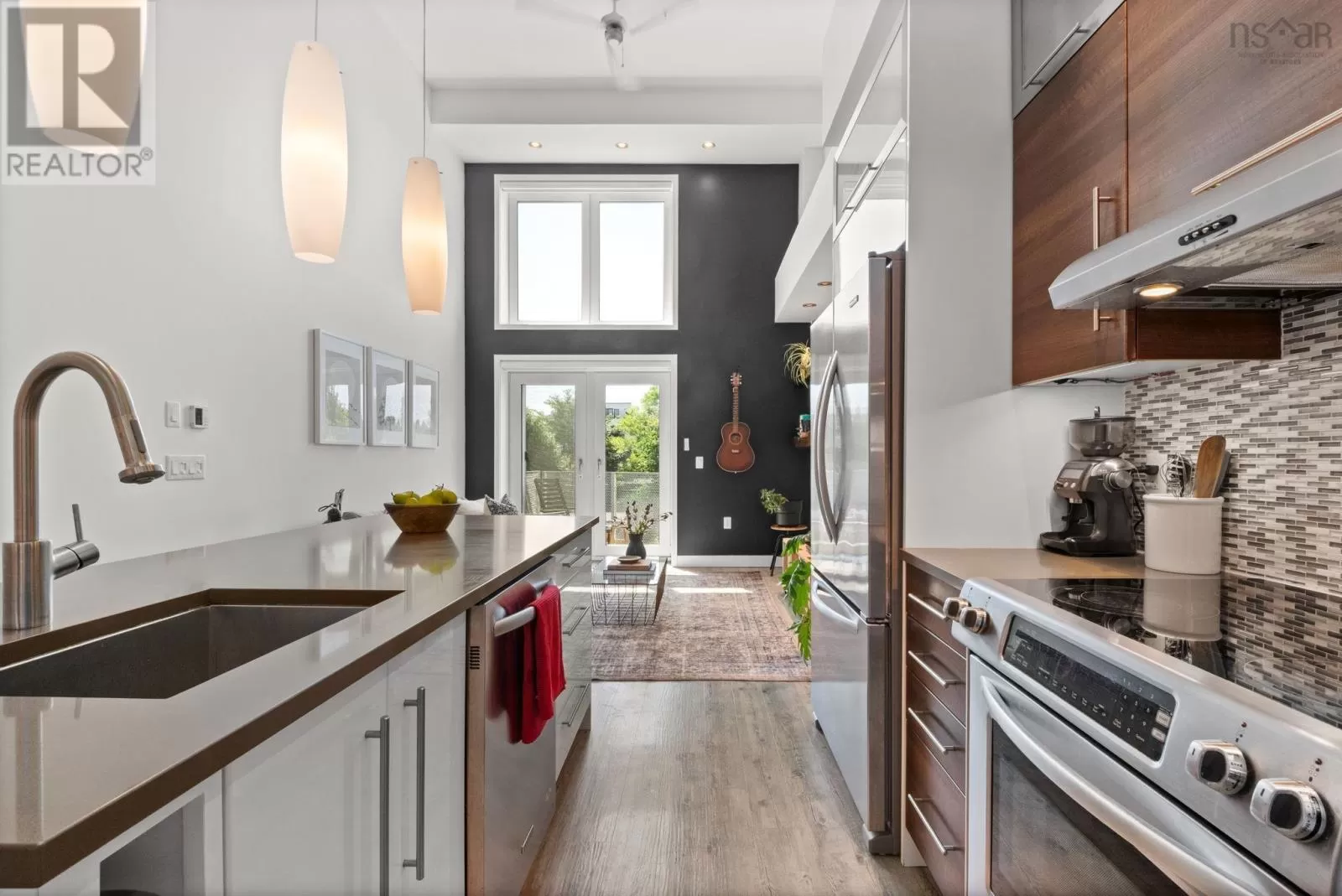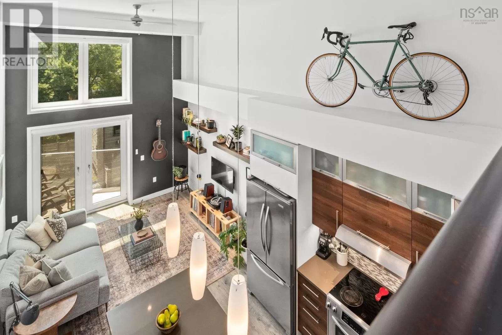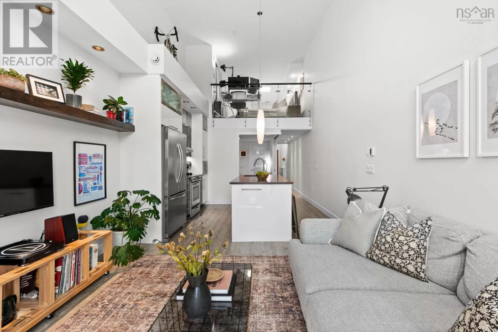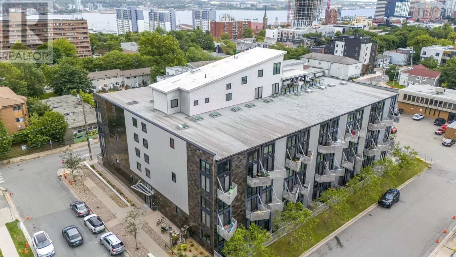 North on Agricola from the Commons and turn right onto Roberts St. Welcome to one of the top-floor units of the Q-Loft in the popular North End of Halifax. This 2-storey loft-style condo is located just minutes from downtown Halifax. Beautifully designed. This unit features two bedrooms, two full bathrooms, and soaring 16-foot ceilings. Expansive windows fill the open-concept space with natural light, creating a bright and airy atmosphere. Contemporary finishes throughout, combined with in-floor heating and cooling. The unit also includes a private balcony, underground parking, and storage. Residents enjoy access to exceptional building amenities including outdoor terraces, a gym, and a guest suite, everything you need for convenient, low-maintenance living. (id:27476)