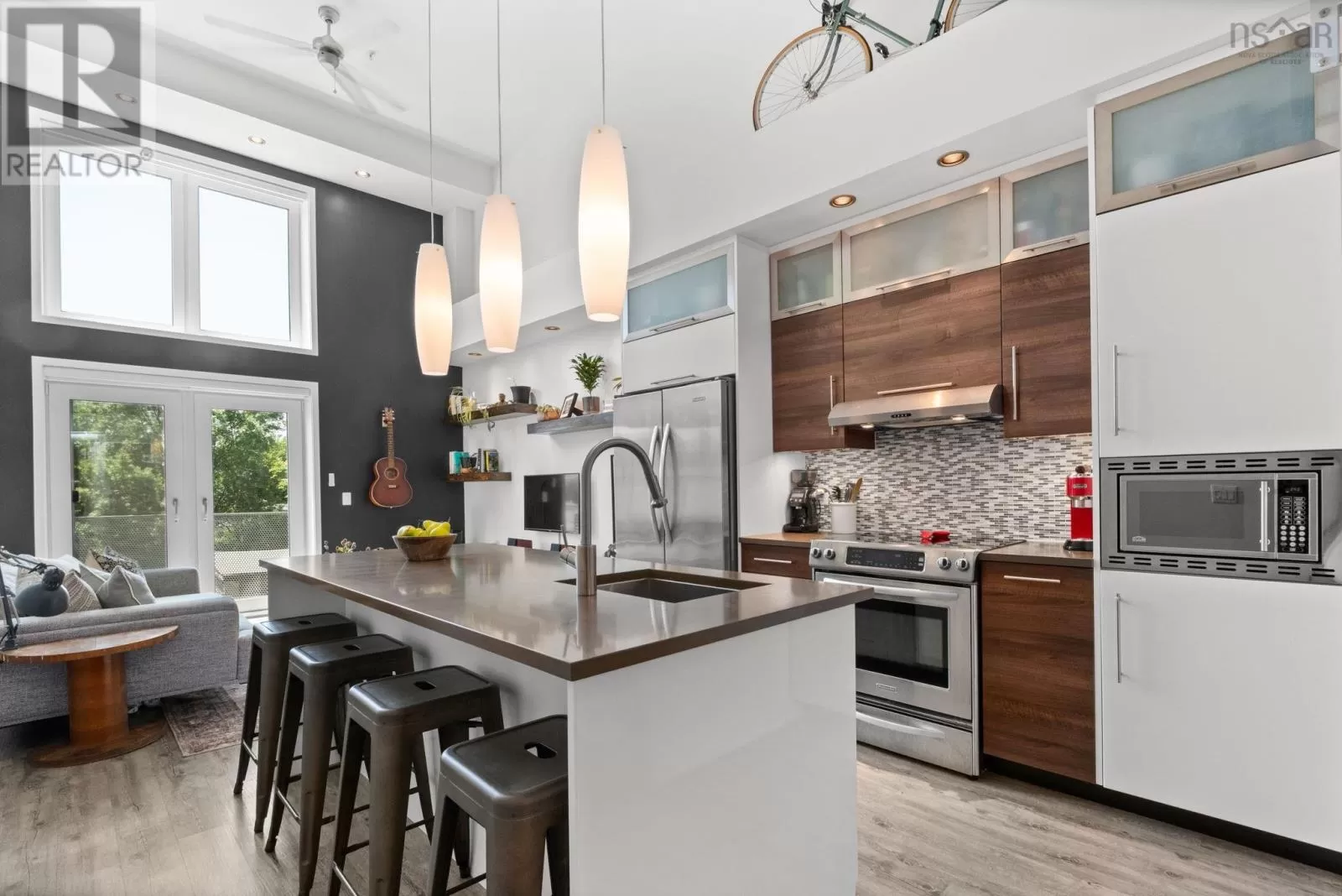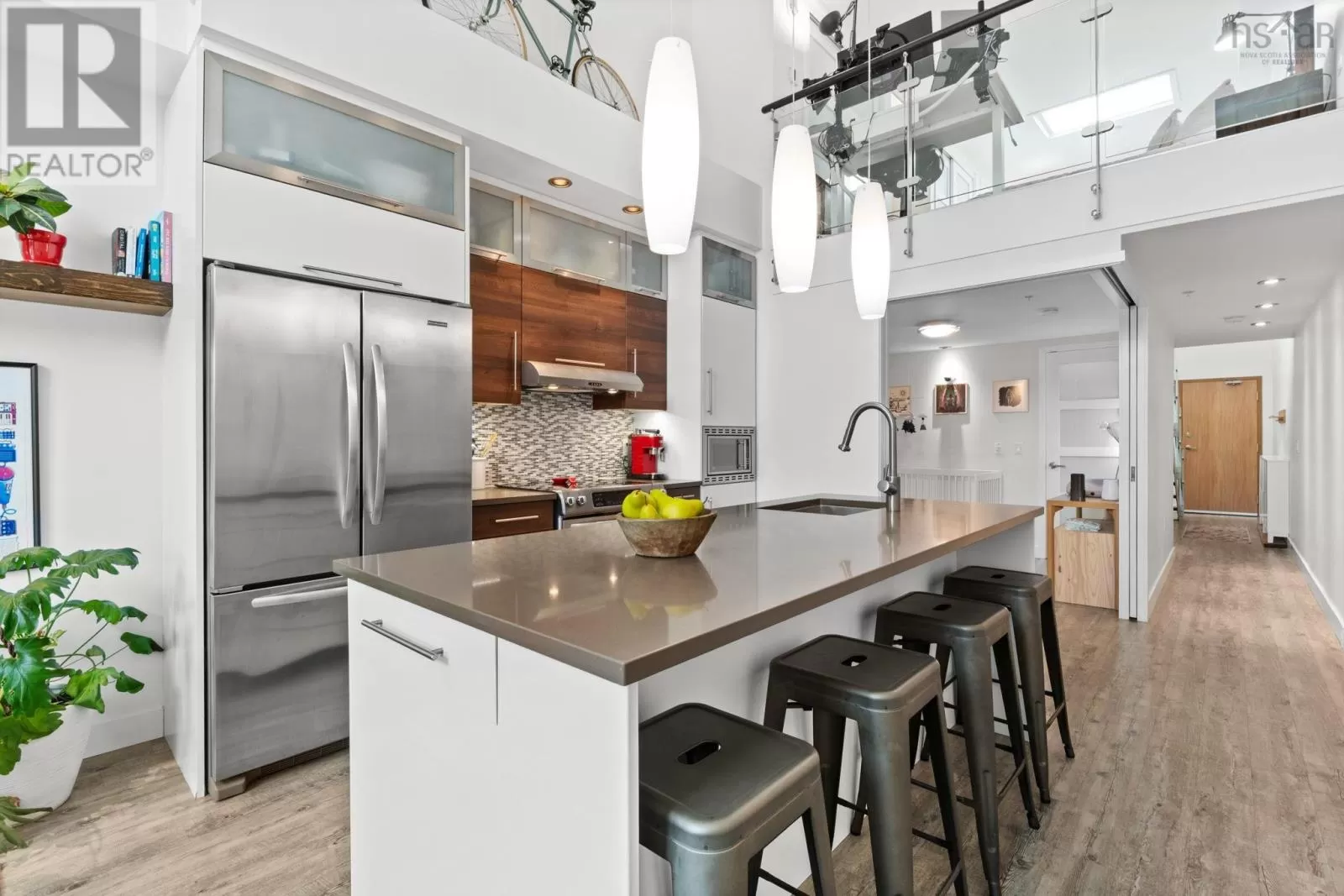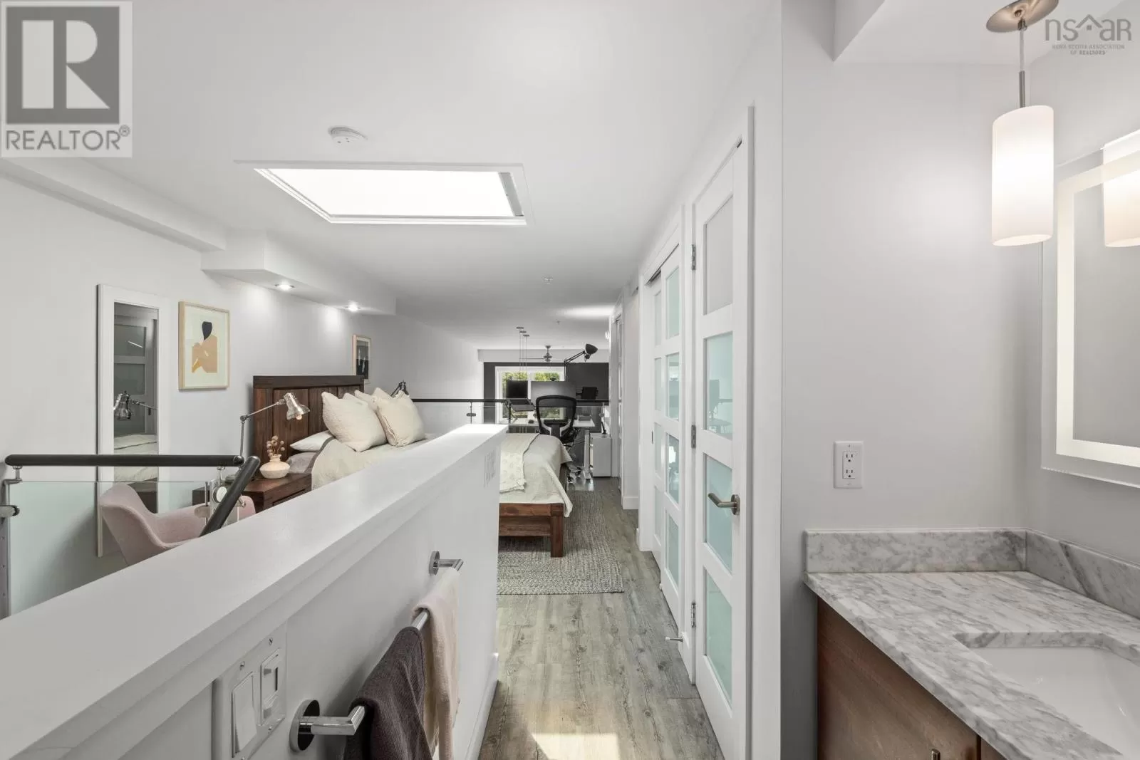 North on Agricola from the Commons and turn right onto Roberts St. Welcome to one of the top-floor units of the Q-Loft in the popular North End of Halifax. This 2-storey loft-style condo is located just minutes from downtown Halifax. Beautifully designed. This unit features two bedrooms, two full bathrooms, and soaring 16-foot ceilings. Expansive windows fill the open-concept space with natural light, creating a bright and airy atmosphere. Contemporary finishes throughout, combined with in-floor heating and cooling. The unit also includes a private balcony, underground parking, and storage. Residents enjoy access to exceptional building amenities including outdoor terraces, a gym, and a guest suite, everything you need for convenient, low-maintenance living. (id:27476)
