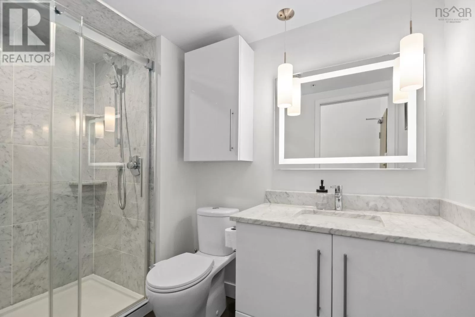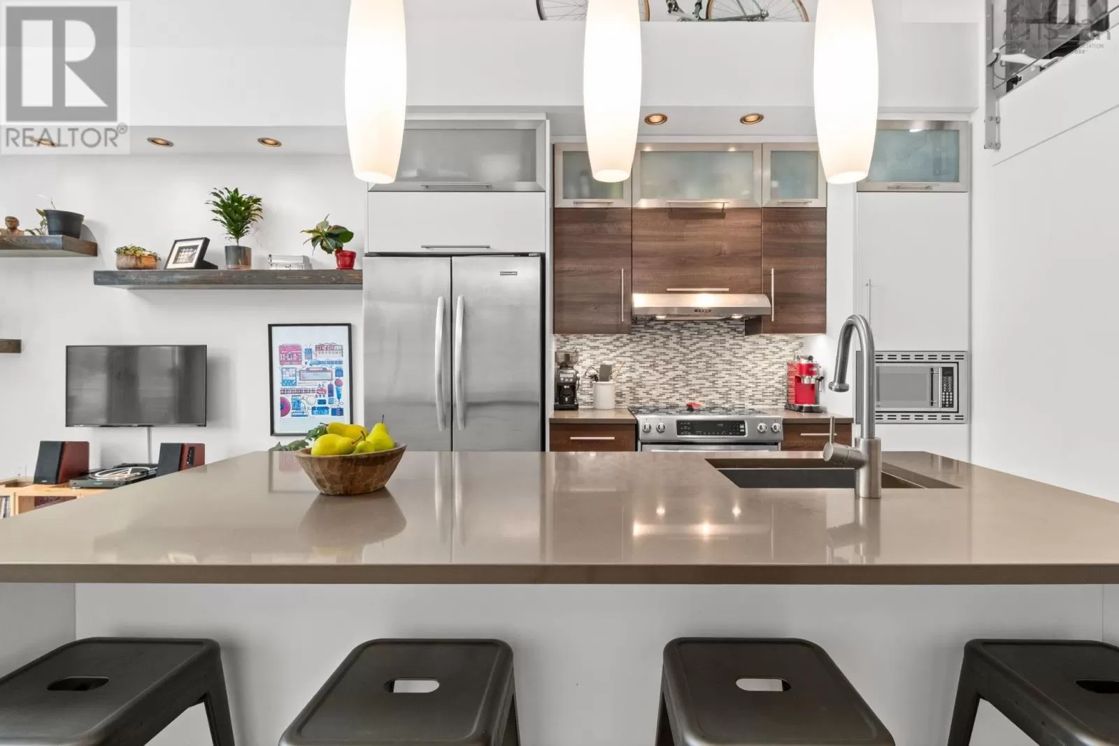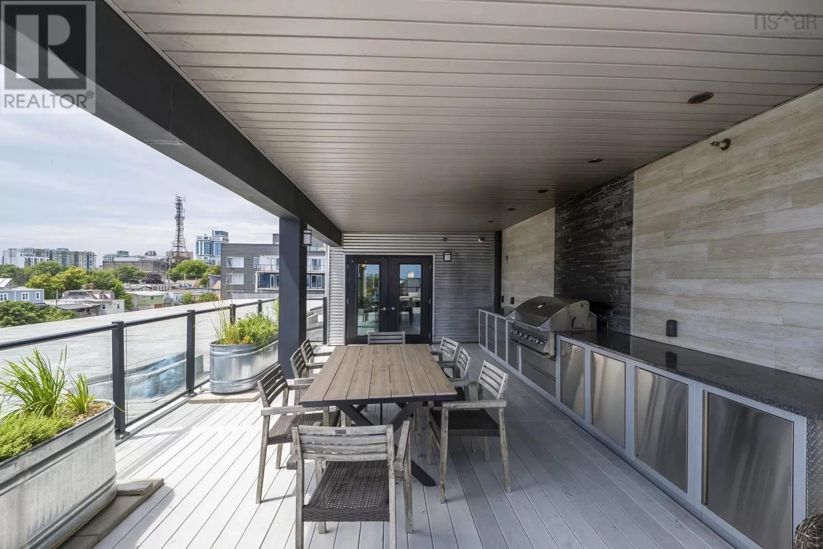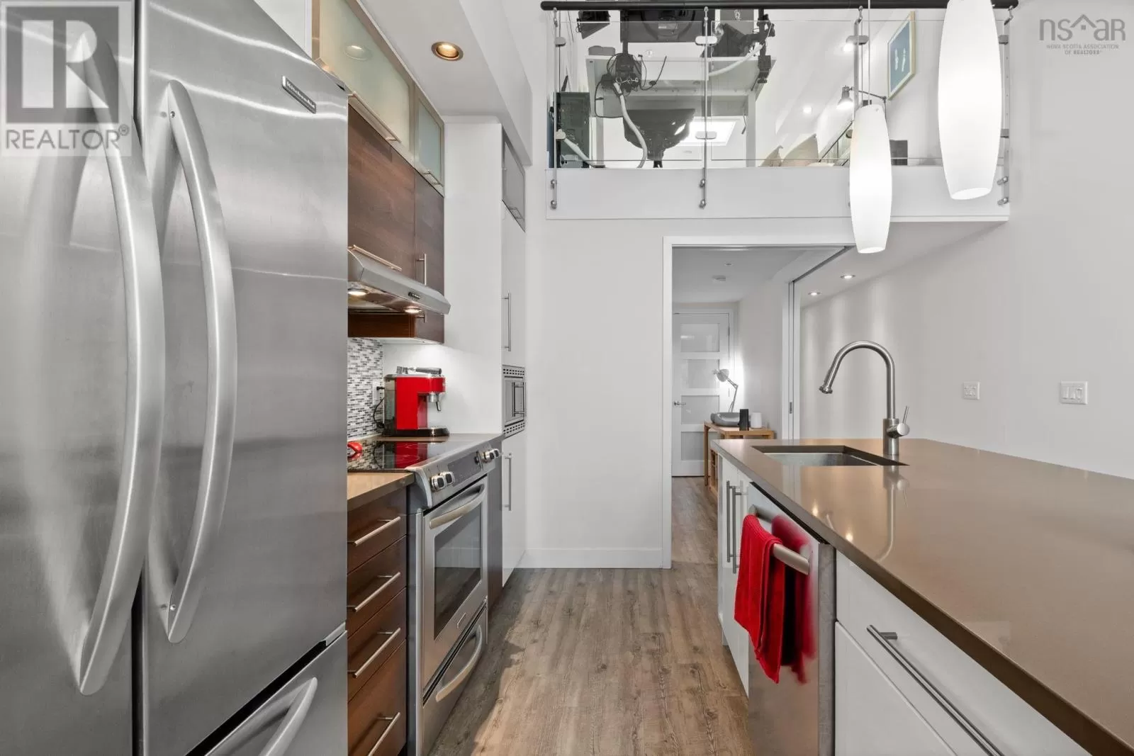 North on Agricola from the Commons and turn right onto Roberts St. Welcome to one of the top-floor units of the Q-Loft in the popular North End of Halifax. This 2-storey loft-style condo is located just minutes from downtown Halifax. Beautifully designed. This unit features two bedrooms, two full bathrooms, and soaring 16-foot ceilings. Expansive windows fill the open-concept space with natural light, creating a bright and airy atmosphere. Contemporary finishes throughout, combined with in-floor heating and cooling. The unit also includes a private balcony, underground parking, and storage. Residents enjoy access to exceptional building amenities including outdoor terraces, a gym, and a guest suite, everything you need for convenient, low-maintenance living. (id:27476)