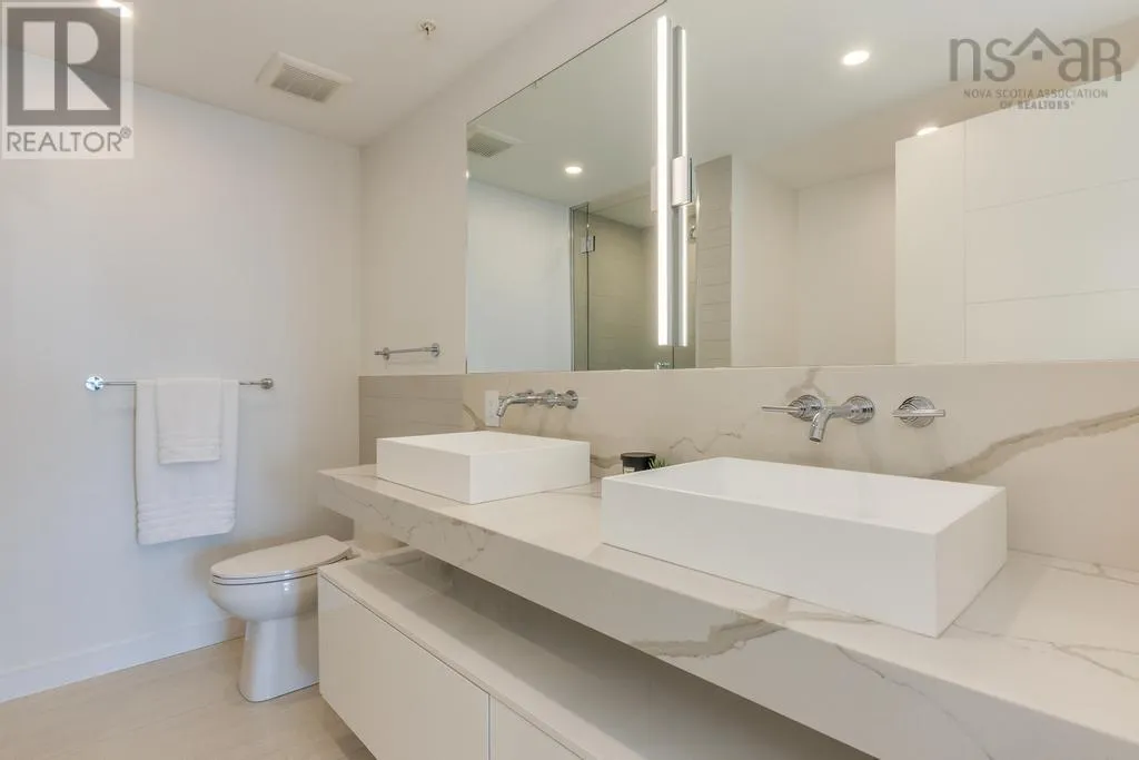 Sackville Street to Granville Welcome to the pinnacle of downtown Halifax living. Perched high above the city on the 19th floor of The Roy, this stunning 2-bedroom plus den, 2.5-bath residence offers unmatched views of the Halifax Harbour from every room. Both bedrooms have their own ensuite bathrooms! At over 1300 square feet, and with over 400 feet of wrap around decking, you will love the spaciousness and feel of this gorgeous unit. Designed for those who appreciate refined urban living, this elegant suite boasts floor-to-ceiling windows, sophisticated finishes, and a thoughtful layout that balances luxury with livability.The open-concept living and dining area is perfect for entertaining, with panoramic water views that create a breathtaking backdrop day or night. The sleek, modern kitchen features high-end appliances, quartz countertops, and ample storage space. The spacious den offers flexibility as a home office, media room, or guest space.Retreat to the primary suite where you'll find a spa-inspired ensuite, generous closet space, and more of those incredible harbour views. A second bedroom with its own ensuite, plus a stylish powder room, complete the space. The Roy offers a five-star lifestyle with a full-time concierge, a residents-only Roy Club floor featuring an indoor pool, fitness centre, sauna, theatre room, party lounge, guest suite, and more. Situated in the heart of downtown Halifax, you're steps from fine dining, shopping, galleries, and the vibrant waterfront. A deeded indoor parking space is included, conveniently situated right across from the car elevator! Dont miss this rare opportunity to own one of Halifaxs most exclusive addresses. (id:27476)