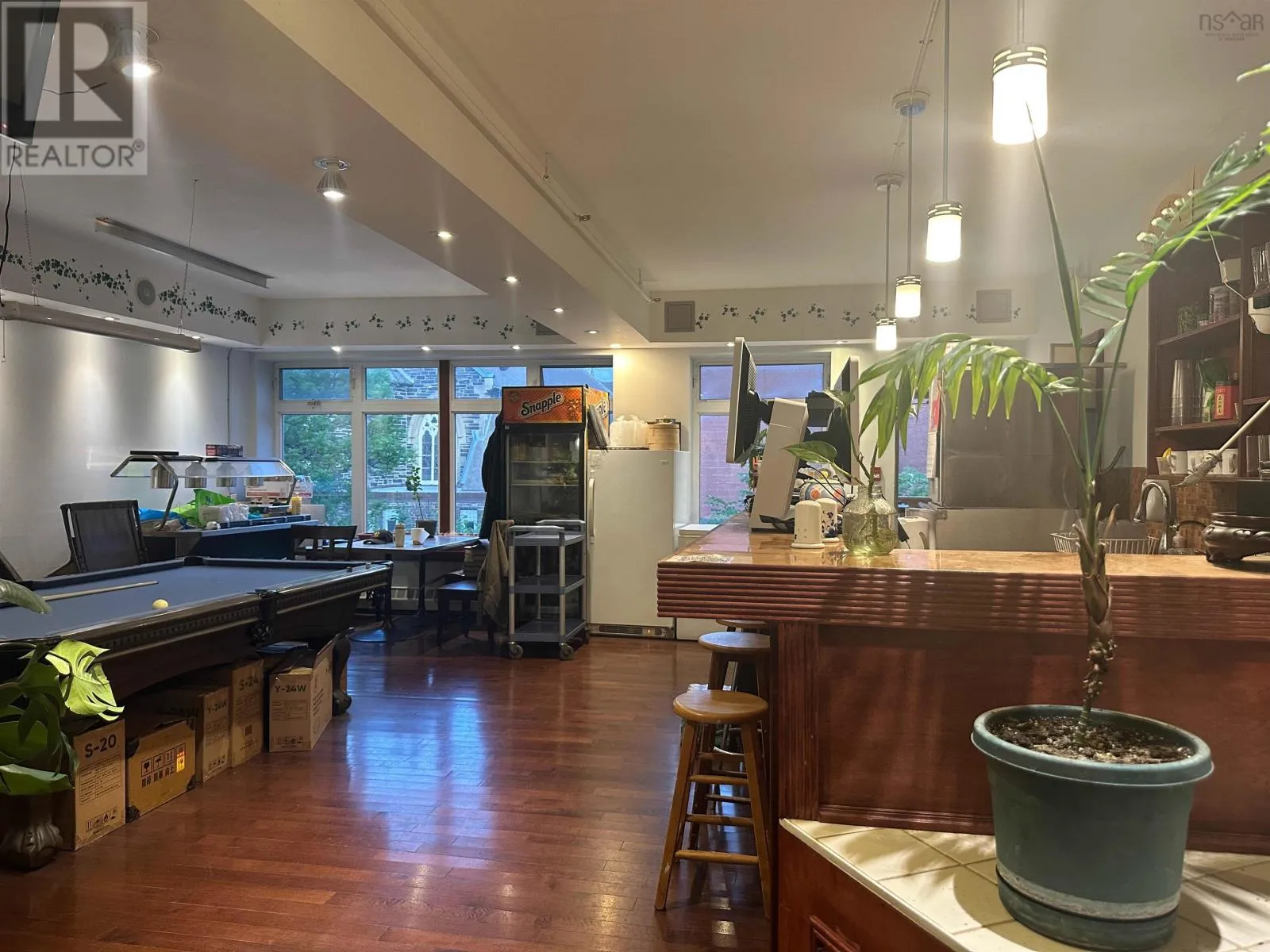 Barrington St to Blowers St Amazing opportunity: well-established, turnkey restaurant located in the heart of downtown Halifax. This prime location is right next door to Halifax New Convention Centre and is ideally situated to benefit from the booming local economy, surrounded by numerous offices, ongoing new building developments, high-end shopping, hotels, bars, all kinds of restaurants/cafes, high-end apartments/condos, & the Centre Library nearby. The establishment features a good-sized dining room with 80 seats, large windows around the dining area, plus a relaxing area with a pool table. The fully equipped kitchen has a 40-foot-long range hood, a walk-in fridge and freezer, professional dishwasher, high-power steamer, capacity mixer, commercial stove/oven, burner range and burners for woks, griddle top, and more. Nearby bars & restaurants open until 3am. All existing equipment and furniture are included in the purchase price, making this a ready-to-operate venture. Owner moving out of province. (id:27476)