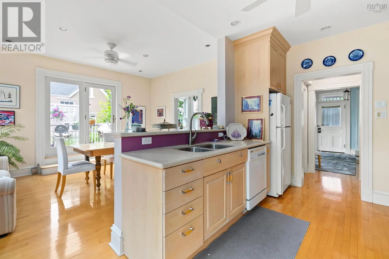 Head South on Robie, turn right onto Oakland, turn right onto Cartaret, property on the right Located in the heart of Halifaxs coveted South End, this exceptional two-storey home with a separate lower-level garden suite blends modern sensibility with timeless charm. The noted architect/owners extensive renovations incorporate current design and upgrades seamlessly into the homes Victorian character. Set on a beautifully landscaped and private lot surrounded by mature trees, the property features an expansive south-facing sundeck and a fully fenced backyard. Inside, exquisite crown moulding, gleaming hardwood floors, high ceilings, and oversized updated windows create a bright and airy, elegant atmosphere. The welcoming foyer leads to a spacious living room with two stunning original fireplaces and large bay windows overlooking a quiet, tree-lined street. The charm continues into the adjoining large formal dining room with patio doors that open to the 240 sq ft South facing sundeck. The dining room connects effortlessly to the modern kitchen creating a sense of flow throughout. The patio doors off the kitchen lead to the rear deck and a backyard hideaway. Convenient powder room off the foyer, completes the main level. Upstairs, you'll find three generous bedrooms, one with fireplace mantle, a walk-in closet, a den with bonus upper balcony, along with a beautifully renovated 4-piece bath featuring a classic clawfoot tub and impressive marble-tiled flooring and walk-in shower. This property also boasts dual walkout rear entrances, one from the lower level of the principal home and the second from the sizeable vacant private 700+ sq ft one-bedroom suite. Designed by the owner, this comfortable living space with 4-piece bath, plus den is ideal for extended family or supplemental income. Situated between Oakland Rd & South St, this property is just minutes from hospitals, Dalhousie, Saint Marys, downtown, & Point Pleasant Park. A rare opportunity to own a truly charming and versatile home in the city's most desirable neighbourhood. (id:27476)