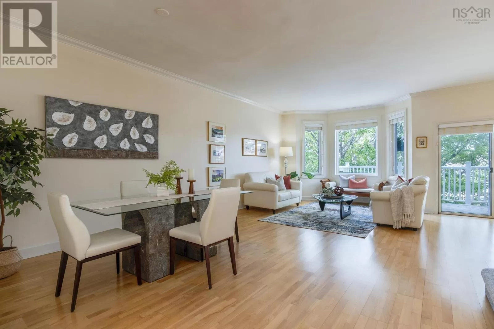 Purcells Cove Rd to Spinnaker Dr, L on Anchor Dr Nestled in Halifaxs prestigious Regatta Point community, this gorgeous 3-bedroom, 2.5 bath townhouse blends timeless elegance with modern comfort offering a lifestyle defined by natural beauty, privacy, and convenience. Surrounded by the waters of the Northwest Arm and a beautiful walking path to enjoy them, walking distance to the Armdale Yacht Club, Chocolate Lake Rec Center, Swimming at the lifeguarded Chocolate Lake, the trails of Sir Sanford Fleming Park and a short walk to the Halifax Shopping Center, this location can't be beat. You're 5 minutes to anywhere - downtown Halifax, Bayer's Lake & the highway. Lovely curb appeal greets you as you step inside to your entry with convenient powder room. As natural light and high ceilings fill the spaces, notice the main level with hardwood floors, a beautiful bright eat-in kitchen with lots of counter and cupboard space, dining area open to an inviting living room with crown moulding, curved staircases, and a wood-burning fireplace. Walk out to your private deck and enjoy serene surroundings with seasonal views of the Northwest Arm. Upstairs, retreat to your spacious primary suite with walk-in closet, ensuite with quartz vanity & enjoy seasonal water views looking up the Northwest Arm. Two additional bedrooms share a large main bath with marble floors, huge tiled walk-in shower and convenient upper level laundry. The lower level offers a spacious rec room with another wood-burning fireplace and walk-out to a second deck, perfect for enjoying the beautiful water views. Great storage including your heated, single garage with two large closets (there's even a space for wine). Situated on a cul-de-sac, enjoy exclusive access to a gate to the walking paths just out your back door that wind around Regatta Point, connecting you to nature steps away. Lots of updates over the years - this is your chance to own a rare gem in Halifaxs executive waterfront communities. Schedule your private viewing today. (id:27476)