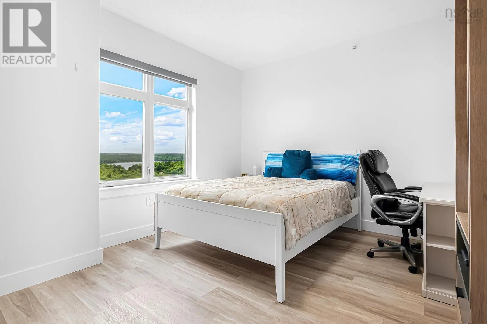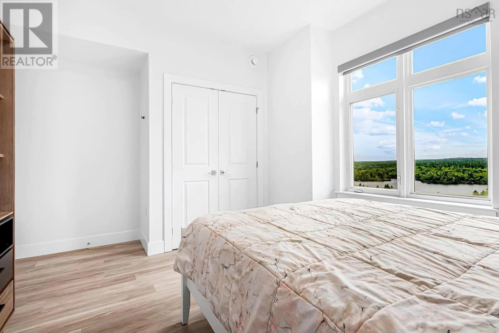 Osborne to Walter Havill Welcome to the Waterton, an upscale high rise in Stone Ridge Development minutes from downtown Halifax! Unit 910 is a 2-bedroom, 2-bathroom corner unit, offering one of the largest floor plans in the building. This west-facing condo is bright and spacious and has been thoughtfully updated with custom window coverings, additional lighting, new hot water tank and brand-new appliances; including the fridge, over-the-range microwave, washer and dryer (in-unit laundry). The primary bedroom is spacious with a walk-in-closet and private ensuite with dual vanity. The second bedroom is located on the opposite side of the unit and both rooms allow for views of long lake park. There is also a den with lots of natural light that could be used as an office. This building uses geothermal heating and cooling and offers underground parking and storage included in the condo fee. (id:27476)