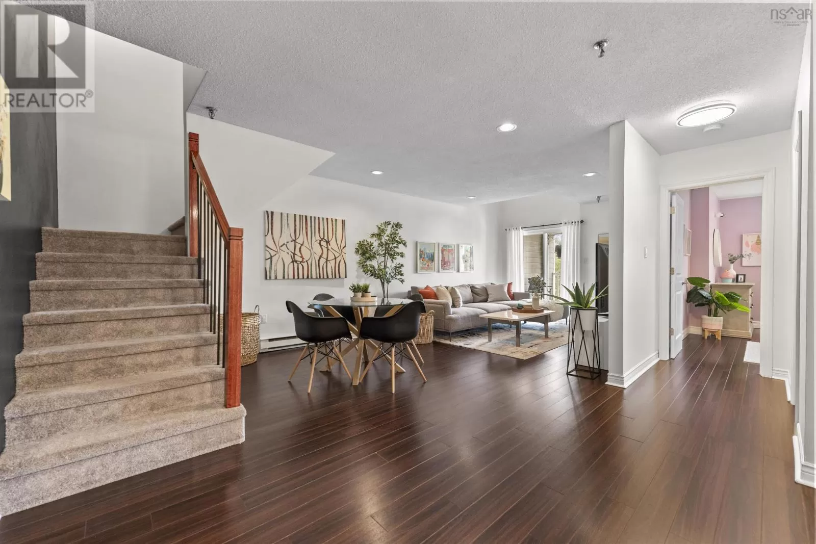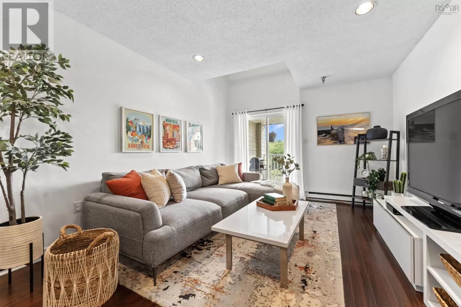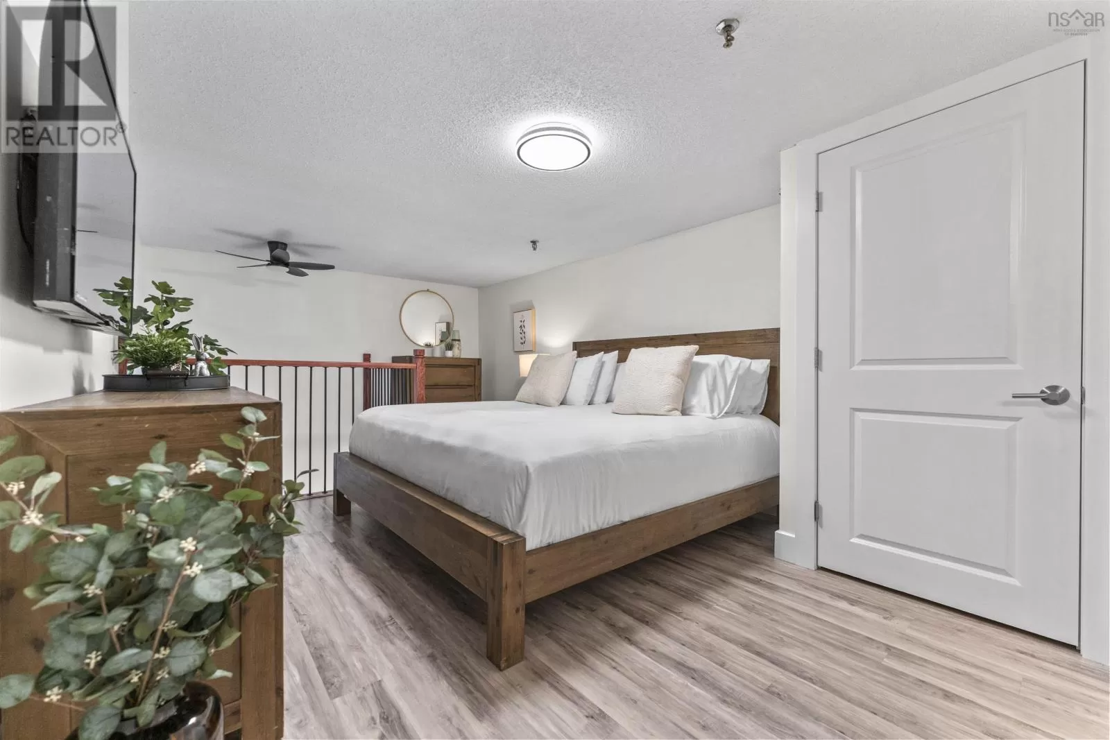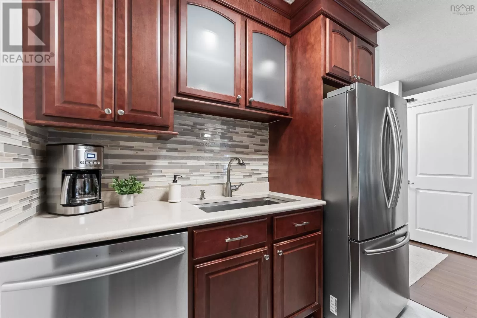 Dunbrack to Langbrae, building is on the right. Welcome home to Langbrae Gardens! You'll fall in love with this bright 2-bedroom plus den, 2-bathroom unit featuring 1,132 sq ft of beautifully designed living space spread across two floors. This stunning condo has been completely transformed from top to bottom. The extensively renovated kitchen showcases premium finishes including gleaming quartz countertops, solid maple cabinetry, elegant glass tile backsplash, and sleek stainless steel appliances. Retreat upstairs to your own primary suite complete with renovated ensuite bathroom. You'll love the convenience of in-unit laundry plus your own covered balcony (11x76) - ideal for year-round barbecuing. This top-floor unit occupies a preferred position on the building's quiet side with convenient elevator access. At just $400 monthly for condo fees (covering water, snow removal, garbage, exterior maintenance, landscaping, party room rental, superintendent services, and assigned parking), this is exceptional value for worry-free living! The prime Clayton Park location offers unbeatable convenience; 2 minutes to transit, 4 minutes to groceries and Canada Games Centre, 5 minutes to Mainland Commons, 20 minutes to downtown Halifax. Don't miss this rare opportunity, a condo that truly feels like home (id:27476)