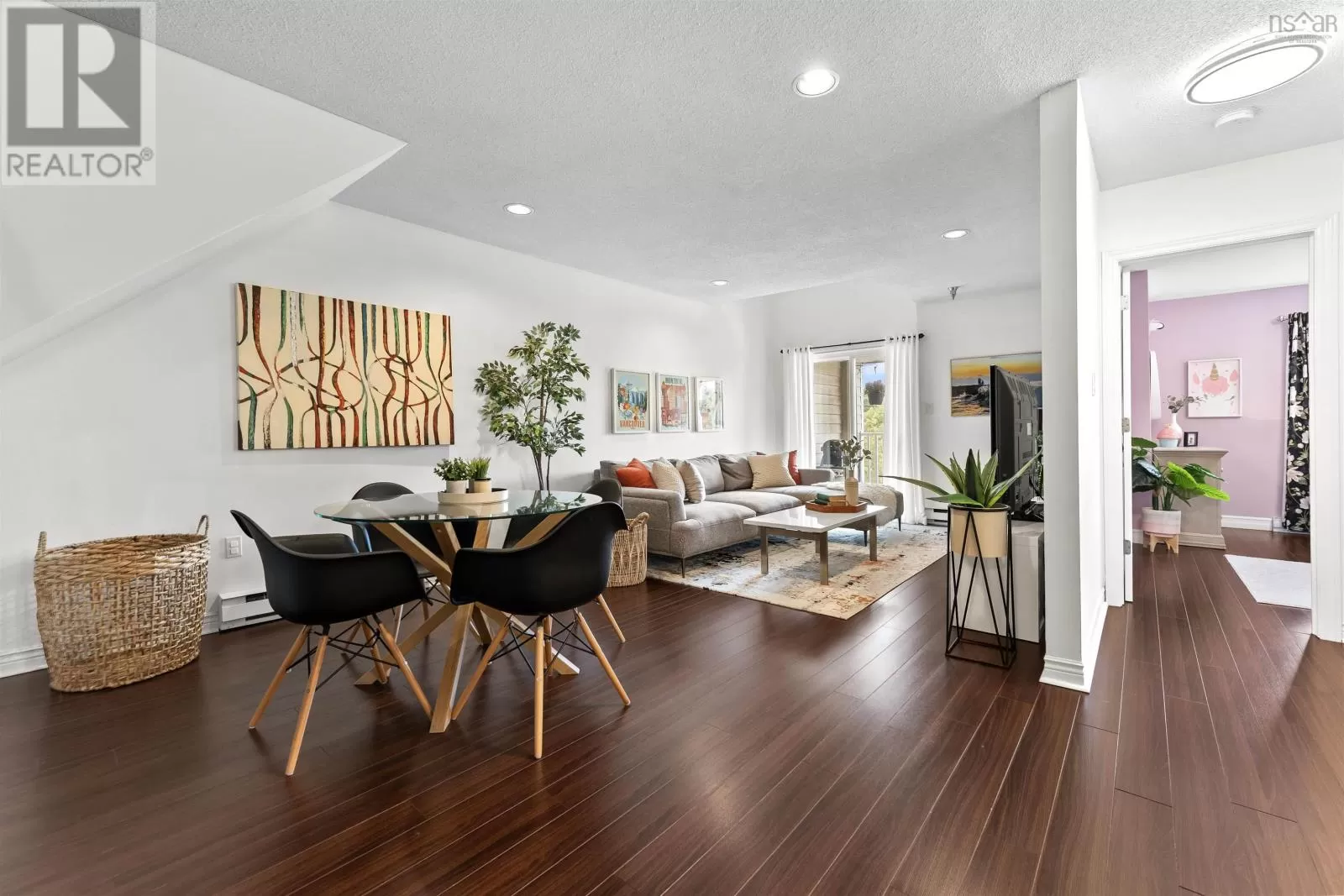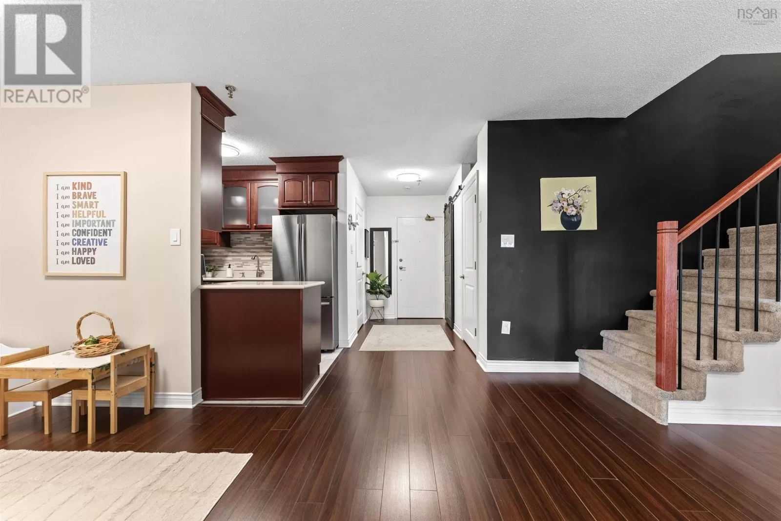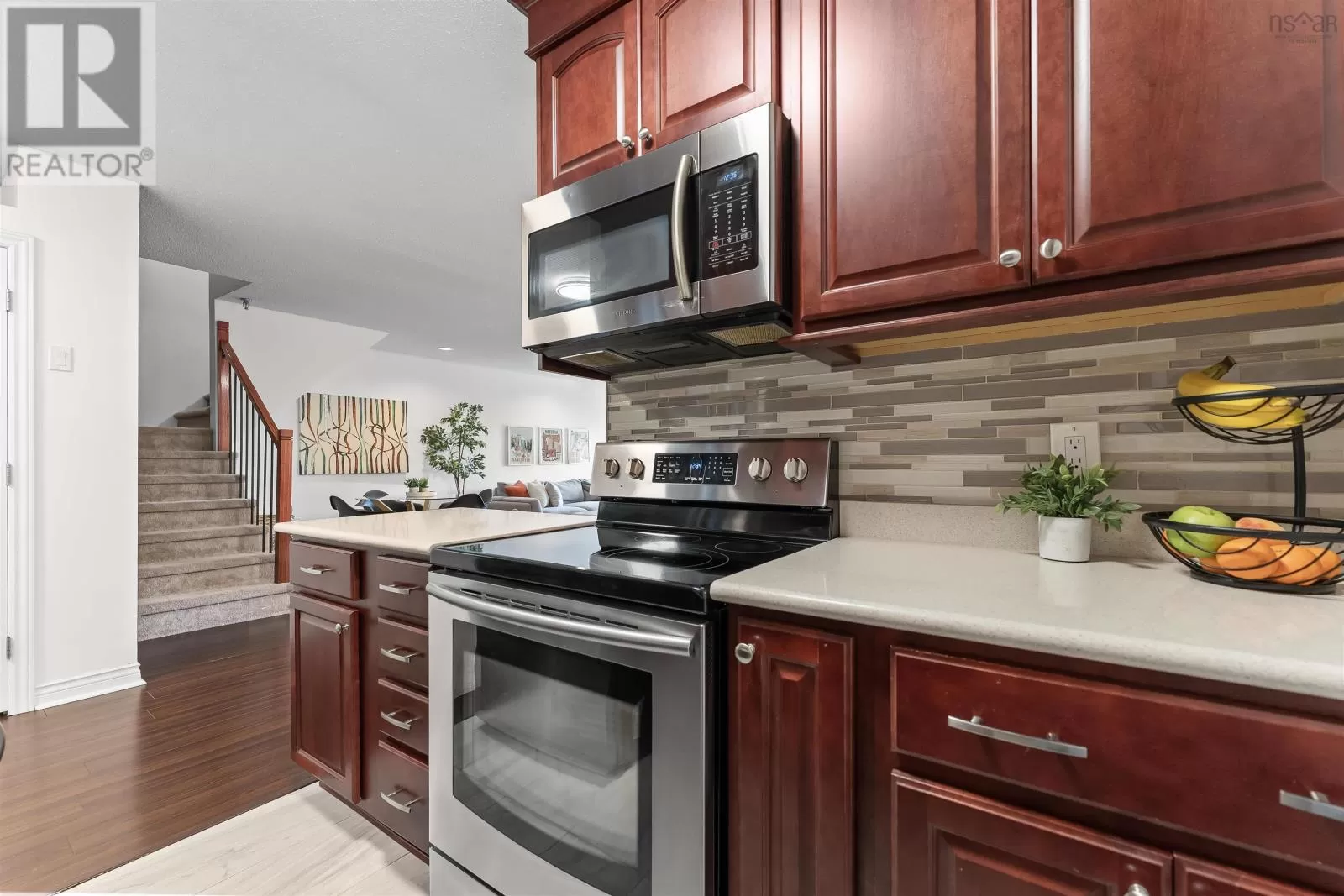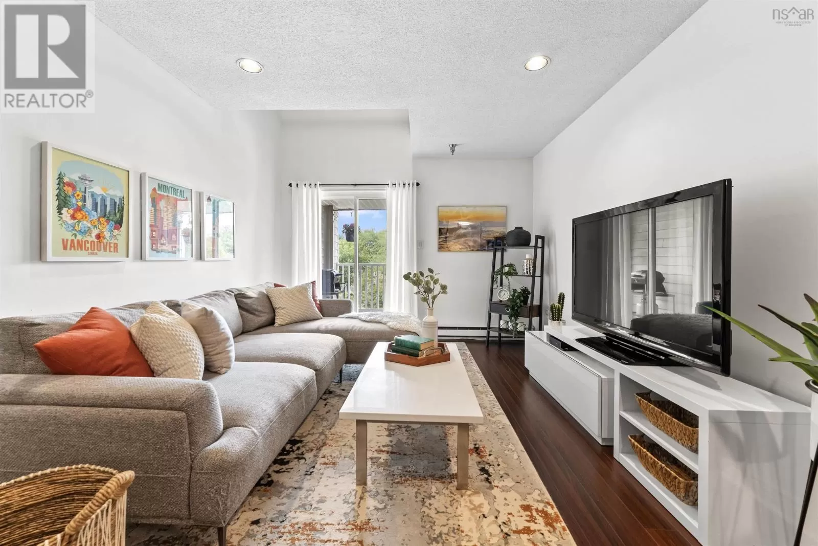 Dunbrack to Langbrae, building is on the right. Welcome home to Langbrae Gardens! You'll fall in love with this bright 2-bedroom plus den, 2-bathroom unit featuring 1,132 sq ft of beautifully designed living space spread across two floors. This stunning condo has been completely transformed from top to bottom. The extensively renovated kitchen showcases premium finishes including gleaming quartz countertops, solid maple cabinetry, elegant glass tile backsplash, and sleek stainless steel appliances. Retreat upstairs to your own primary suite complete with renovated ensuite bathroom. You'll love the convenience of in-unit laundry plus your own covered balcony (11x76) - ideal for year-round barbecuing. This top-floor unit occupies a preferred position on the building's quiet side with convenient elevator access. At just $400 monthly for condo fees (covering water, snow removal, garbage, exterior maintenance, landscaping, party room rental, superintendent services, and assigned parking), this is exceptional value for worry-free living! The prime Clayton Park location offers unbeatable convenience; 2 minutes to transit, 4 minutes to groceries and Canada Games Centre, 5 minutes to Mainland Commons, 20 minutes to downtown Halifax. Don't miss this rare opportunity, a condo that truly feels like home (id:27476)