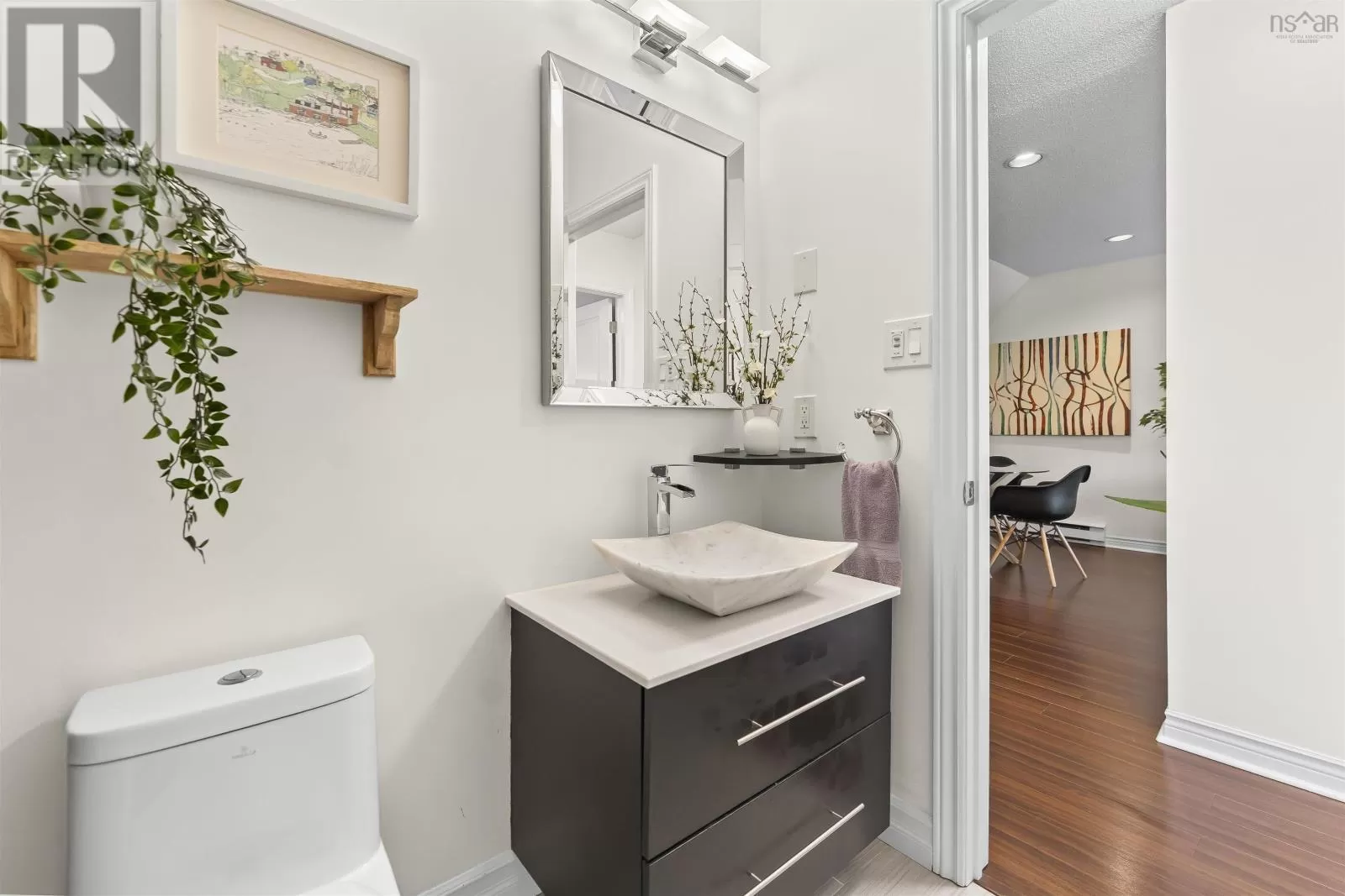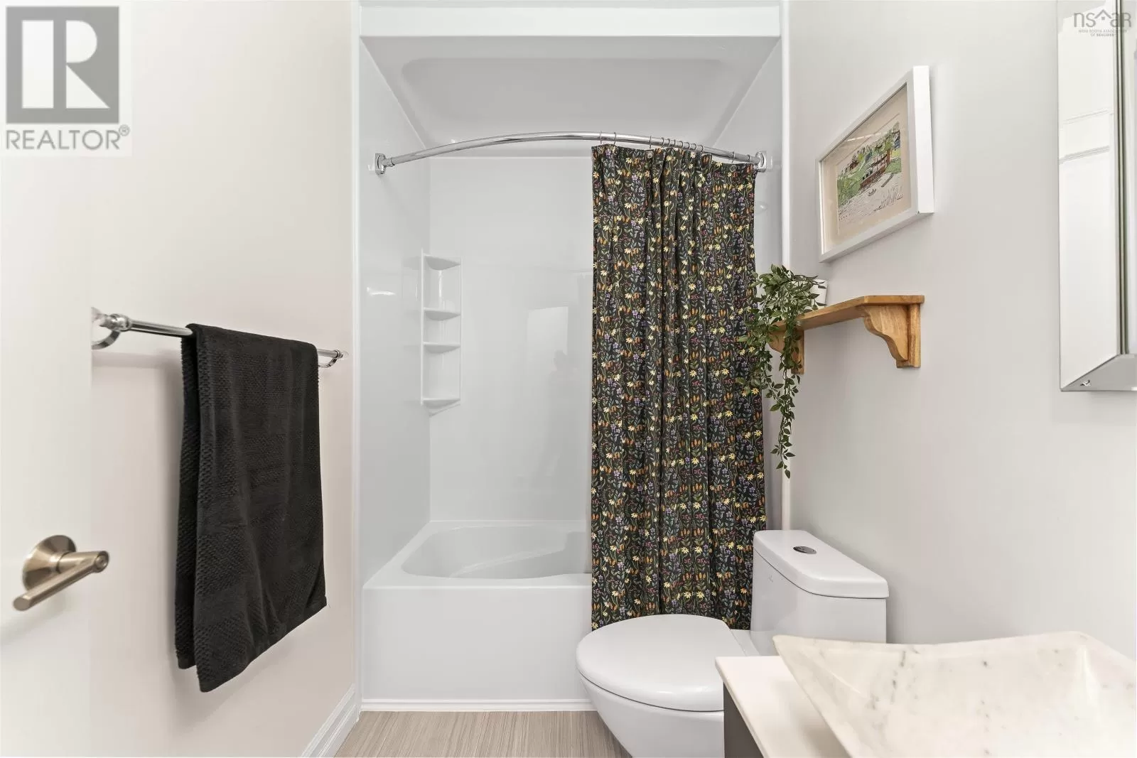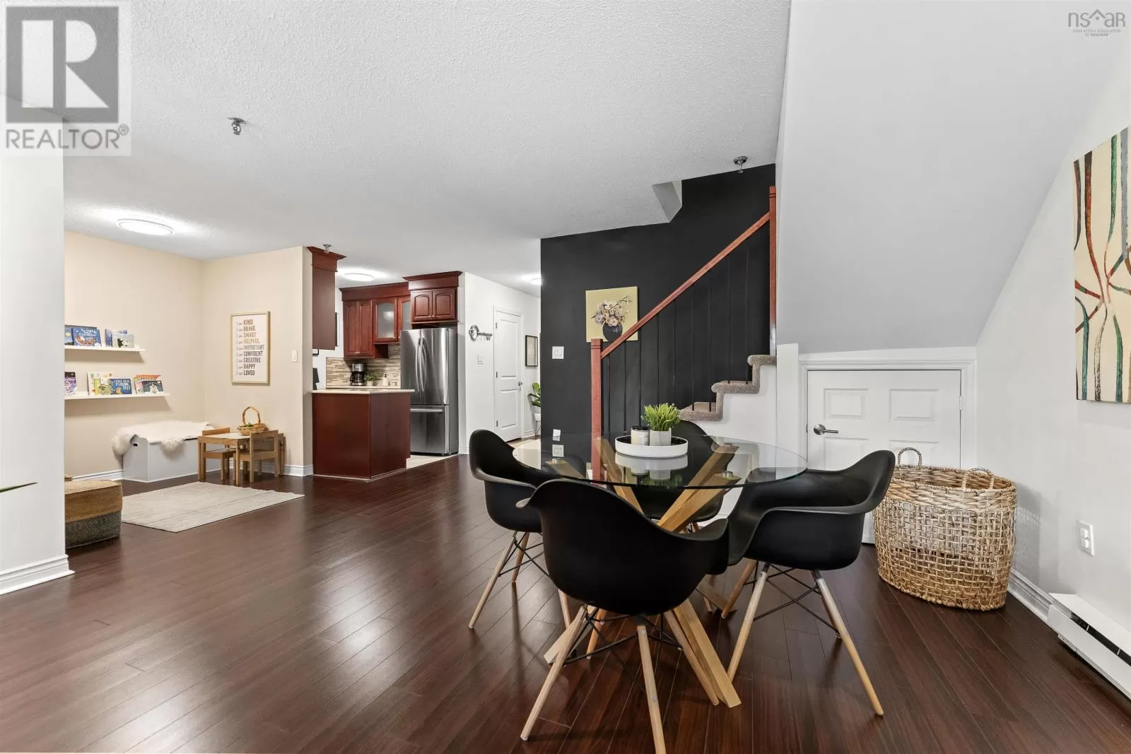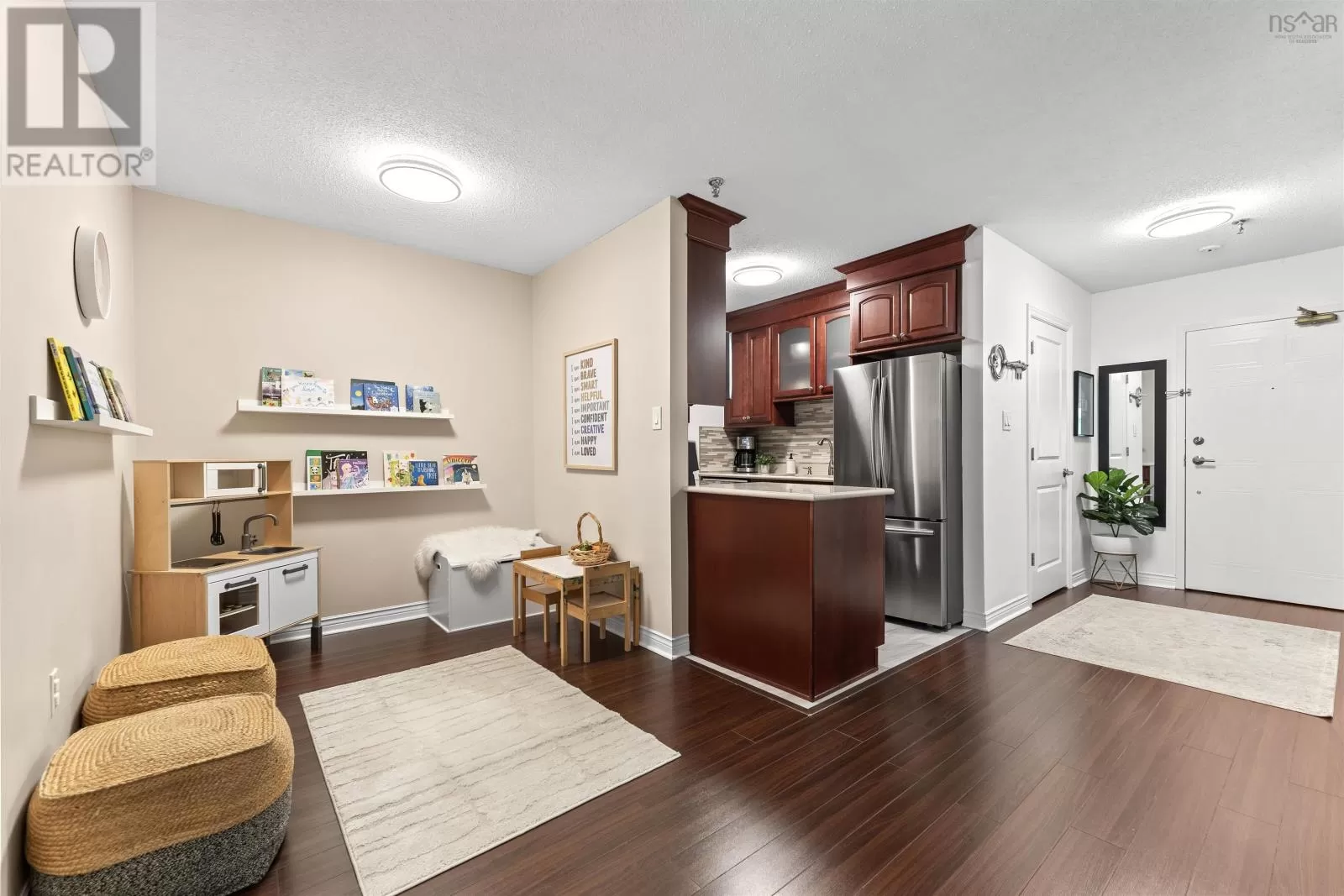 Dunbrack to Langbrae, building is on the right. Welcome home to Langbrae Gardens! You'll fall in love with this bright 2-bedroom plus den, 2-bathroom unit featuring 1,132 sq ft of beautifully designed living space spread across two floors. This stunning condo has been completely transformed from top to bottom. The extensively renovated kitchen showcases premium finishes including gleaming quartz countertops, solid maple cabinetry, elegant glass tile backsplash, and sleek stainless steel appliances. Retreat upstairs to your own primary suite complete with renovated ensuite bathroom. You'll love the convenience of in-unit laundry plus your own covered balcony (11x76) - ideal for year-round barbecuing. This top-floor unit occupies a preferred position on the building's quiet side with convenient elevator access. At just $400 monthly for condo fees (covering water, snow removal, garbage, exterior maintenance, landscaping, party room rental, superintendent services, and assigned parking), this is exceptional value for worry-free living! The prime Clayton Park location offers unbeatable convenience; 2 minutes to transit, 4 minutes to groceries and Canada Games Centre, 5 minutes to Mainland Commons, 20 minutes to downtown Halifax. Don't miss this rare opportunity, a condo that truly feels like home (id:27476)
