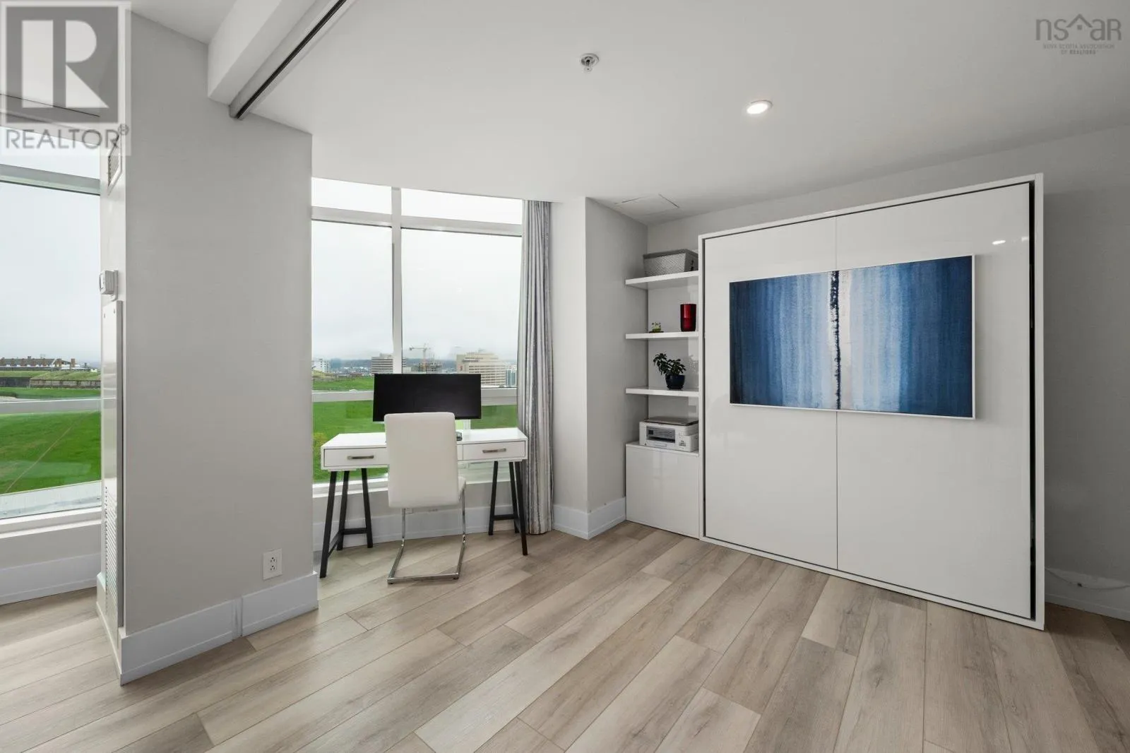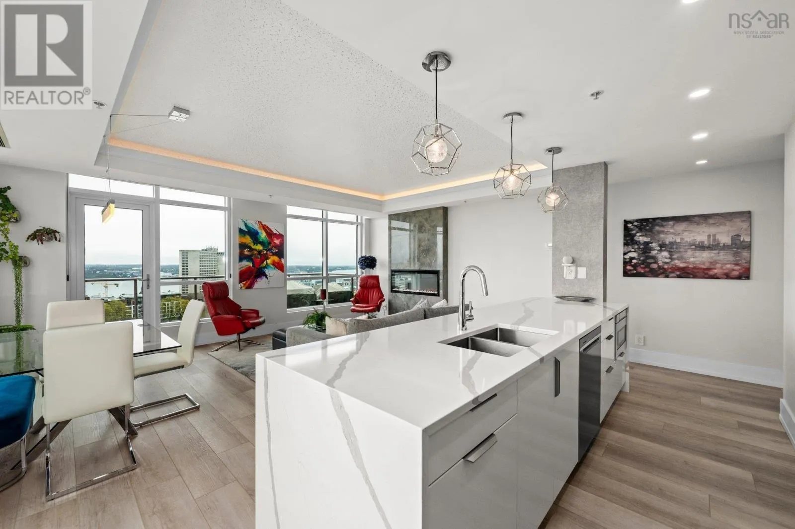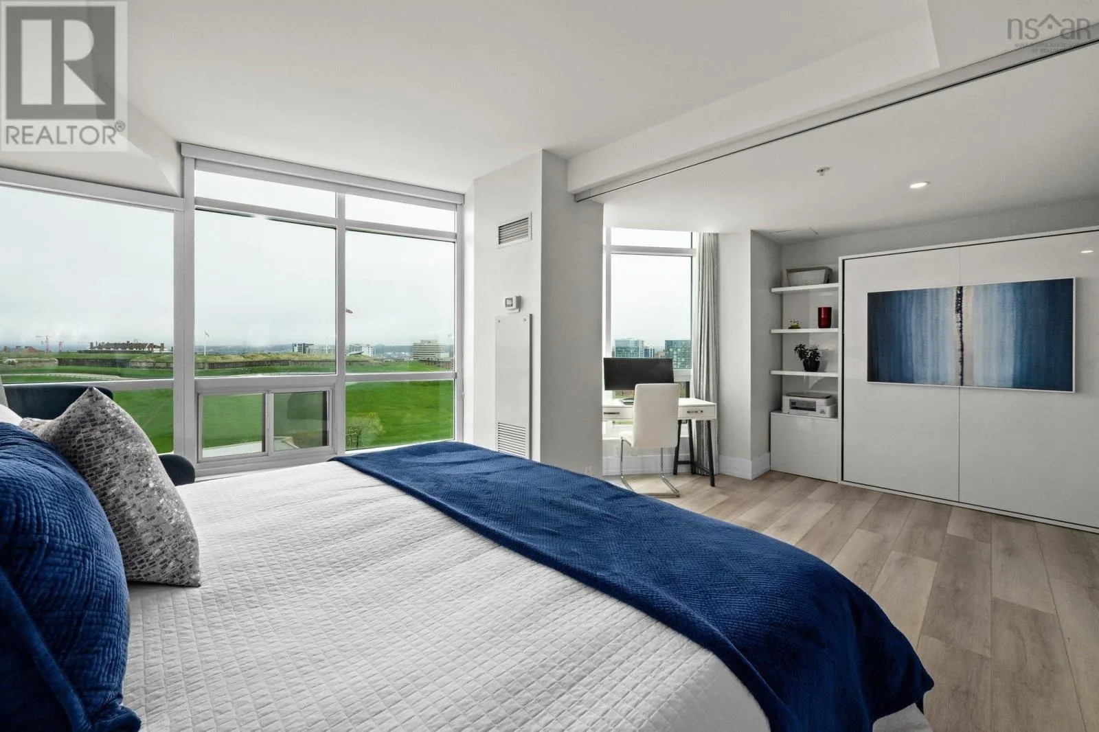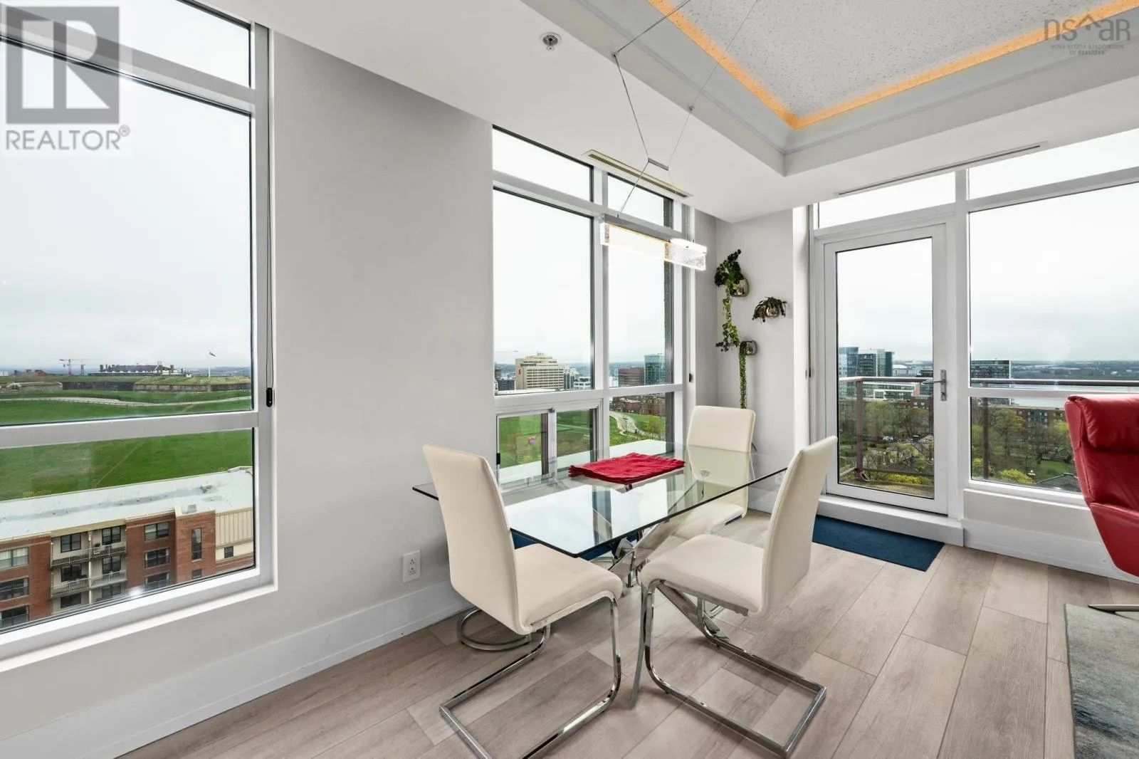 Dresden Row between Sackville and Spring Garden Road parkade accessed off Annandale St This is a unique chance for buyers to own an exceptional suite in the Martello, located in the vibrant Spring Garden Road Business District at the heart of Downtown Halifax. This condo is bathed in natural light and offers sweeping views of Citadel Hill, Downtown Halifax, and the picturesque Halifax Harbour. Professionally redesigned by Doucet Watts & Davis Interiors four years ago, the space combines sophistication and charm. Situated on the 14th signature floor, the master suite opens seamlessly to the second bedroom, which includes a built-in Murphy bed. An innovative room divider ensures privacy for your guests, while maintaining the versatility of the space. Enjoy the convenience of in-suite laundry, hot water, and ductless AC. Heat, water, parking, and a storage unit are also included in the condo fees. The master suite features a spacious vanity and a luxurious shower. The main bathroom is thoughtfully designed with a beautifully crafted tub, built-in shelves, and accent lighting under the vanity. The kitchen, dining, and living areas flow together effortlessly. An elegant wall fireplace adds warmth and ambiance, while surrounding windows provide breathtaking 180-degree views of greenery, downtown, and the harbour. Living in the Martello comes with a host of amenities, including 24/7 Concierge Service for your convenience and peace of mind. Party and conference rooms, a billiards room, and a rooftop barbeque with indoor and outdoor sitting areas on the 18th floor. Stay active in the well-equipped gym. Across the street, youll find Petes Frootique, perfect for fresh groceries. Additionally, the indoor access to Park Lane Mall offers unmatched convenience, with a theatre, food galley, spa, shopping, NSLC, and much more. For fitness enthusiasts, GoodLife Gym is conveniently located just outside the front door, making wellness easily accessible. (id:27476)
