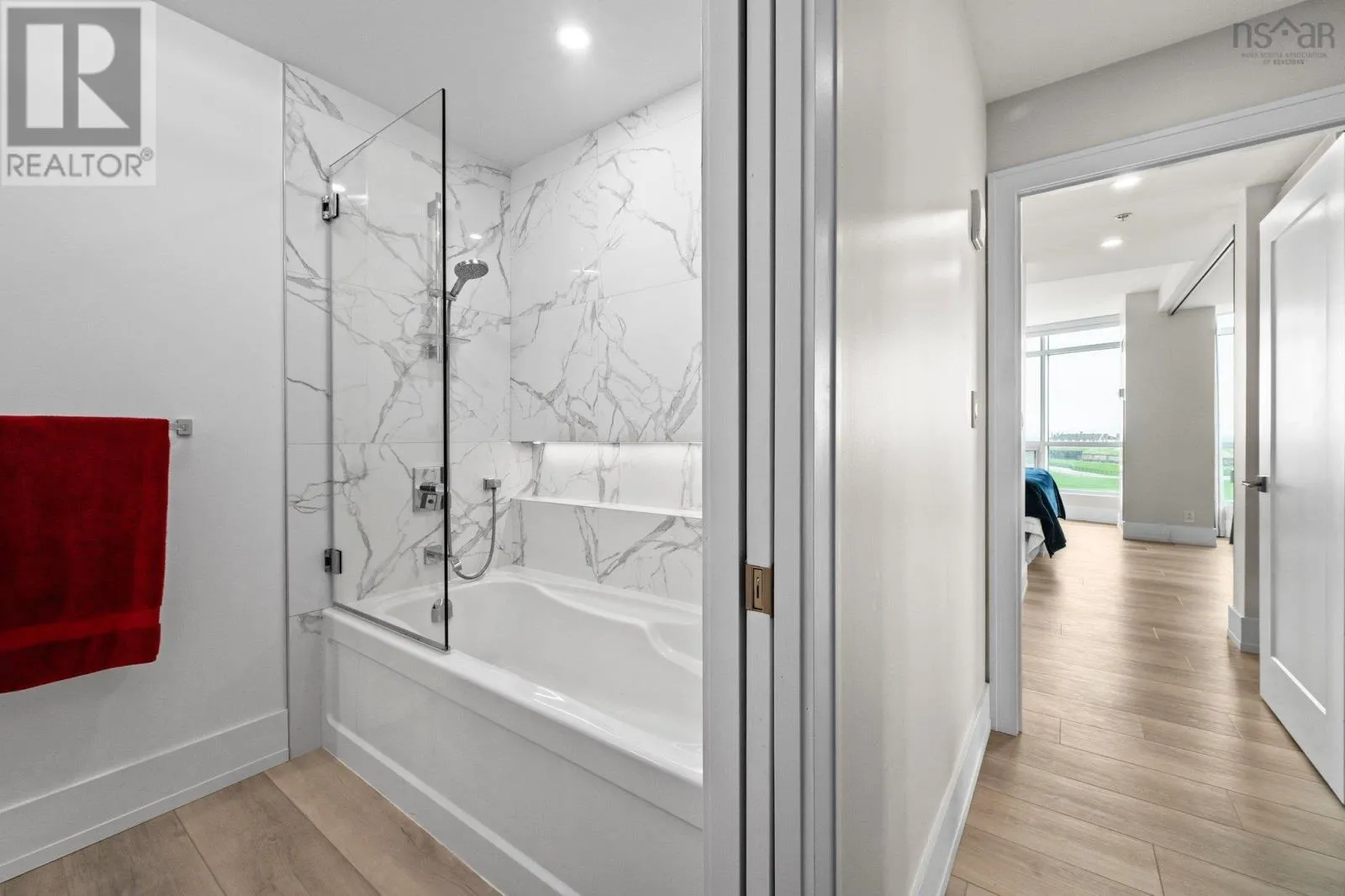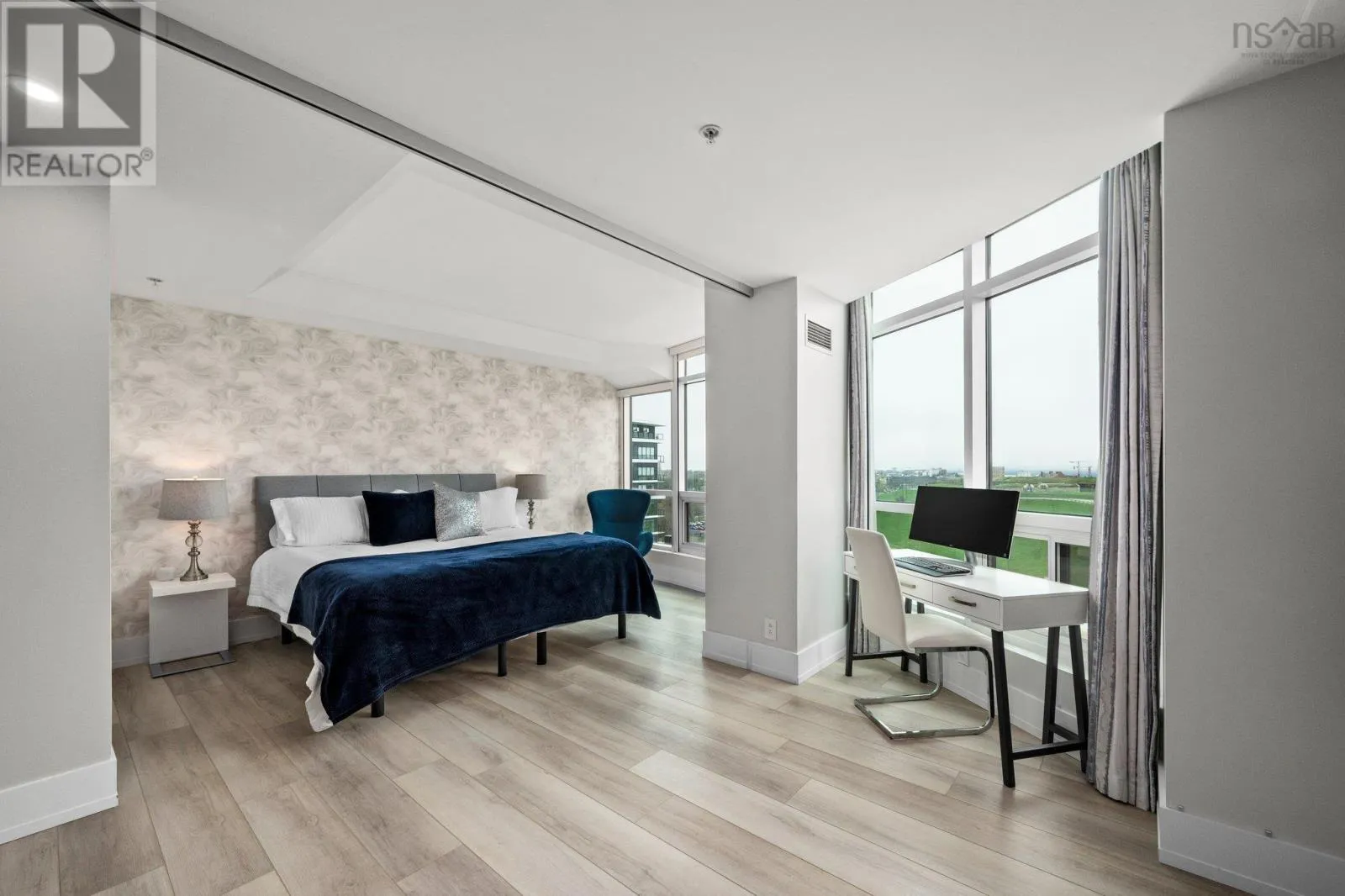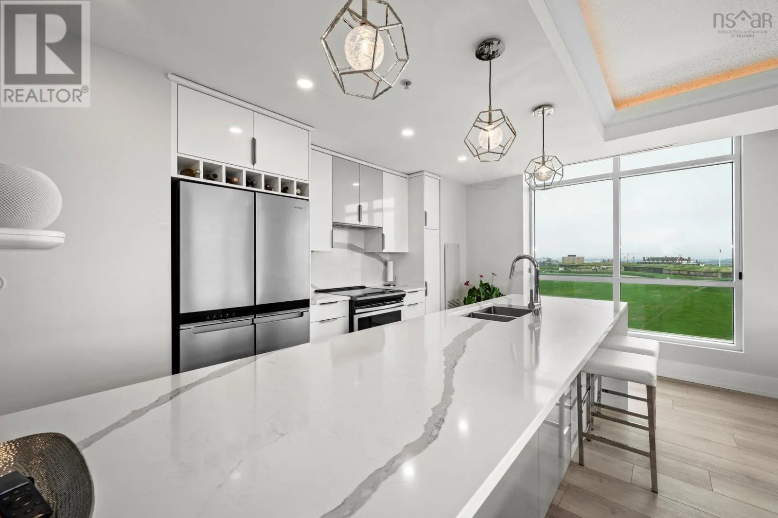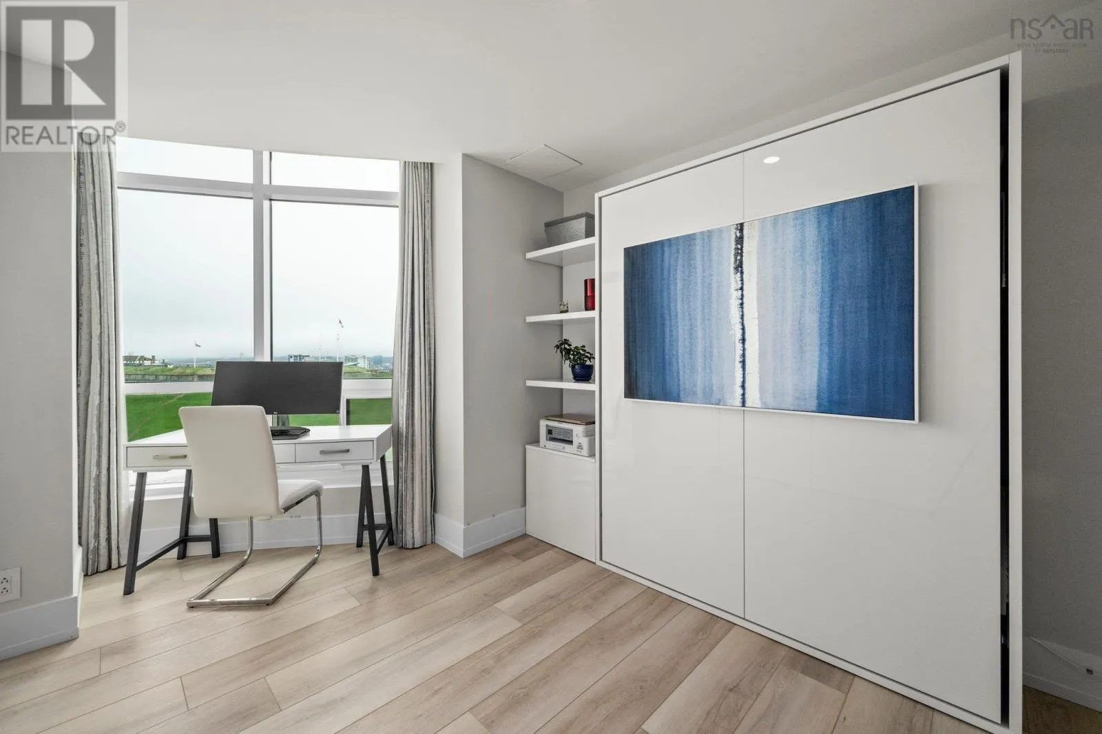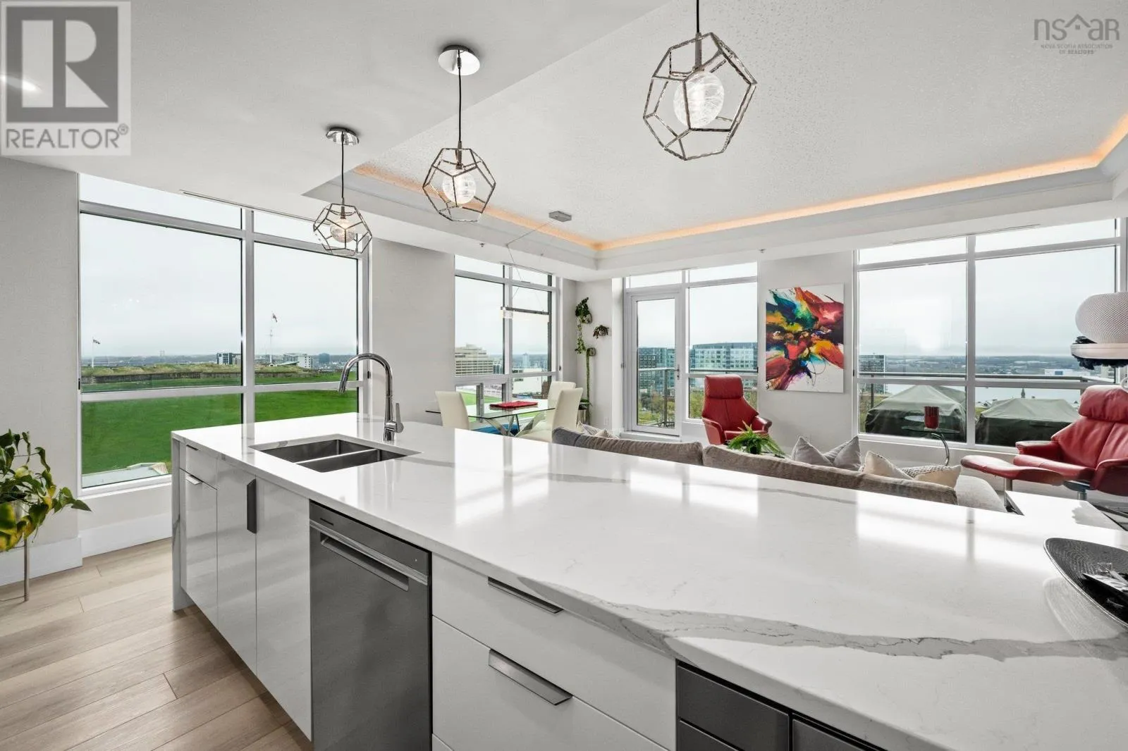 Dresden Row between Sackville and Spring Garden Road parkade accessed off Annandale St This is a unique chance for buyers to own an exceptional suite in the Martello, located in the vibrant Spring Garden Road Business District at the heart of Downtown Halifax. This condo is bathed in natural light and offers sweeping views of Citadel Hill, Downtown Halifax, and the picturesque Halifax Harbour. Professionally redesigned by Doucet Watts & Davis Interiors four years ago, the space combines sophistication and charm. Situated on the 14th signature floor, the master suite opens seamlessly to the second bedroom, which includes a built-in Murphy bed. An innovative room divider ensures privacy for your guests, while maintaining the versatility of the space. Enjoy the convenience of in-suite laundry, hot water, and ductless AC. Heat, water, parking, and a storage unit are also included in the condo fees. The master suite features a spacious vanity and a luxurious shower. The main bathroom is thoughtfully designed with a beautifully crafted tub, built-in shelves, and accent lighting under the vanity. The kitchen, dining, and living areas flow together effortlessly. An elegant wall fireplace adds warmth and ambiance, while surrounding windows provide breathtaking 180-degree views of greenery, downtown, and the harbour. Living in the Martello comes with a host of amenities, including 24/7 Concierge Service for your convenience and peace of mind. Party and conference rooms, a billiards room, and a rooftop barbeque with indoor and outdoor sitting areas on the 18th floor. Stay active in the well-equipped gym. Across the street, youll find Petes Frootique, perfect for fresh groceries. Additionally, the indoor access to Park Lane Mall offers unmatched convenience, with a theatre, food galley, spa, shopping, NSLC, and much more. For fitness enthusiasts, GoodLife Gym is conveniently located just outside the front door, making wellness easily accessible. (id:27476)