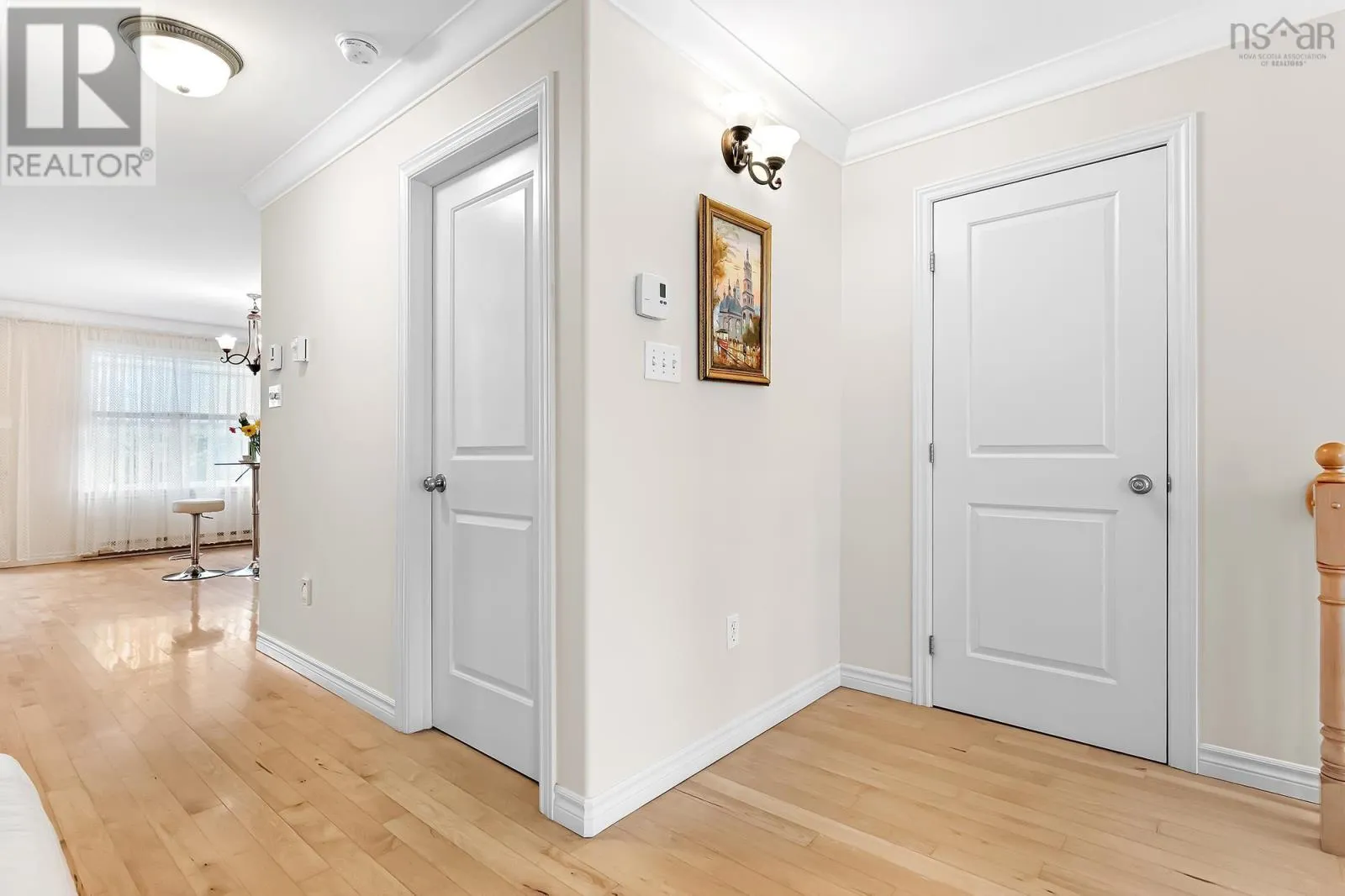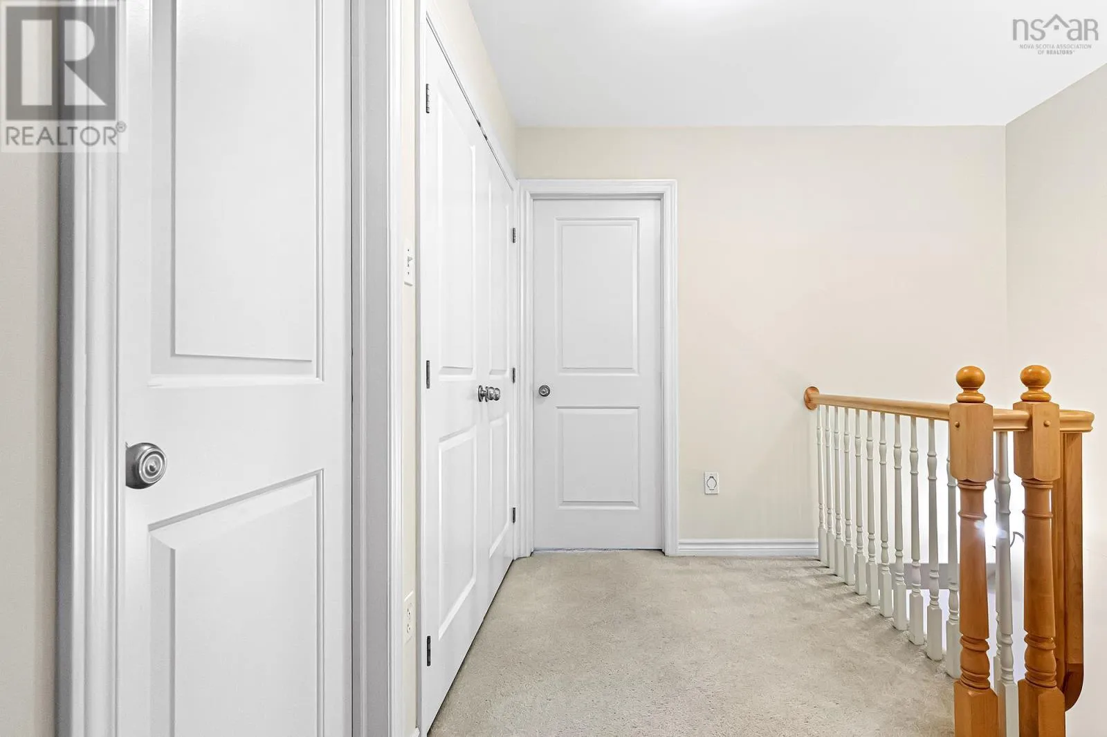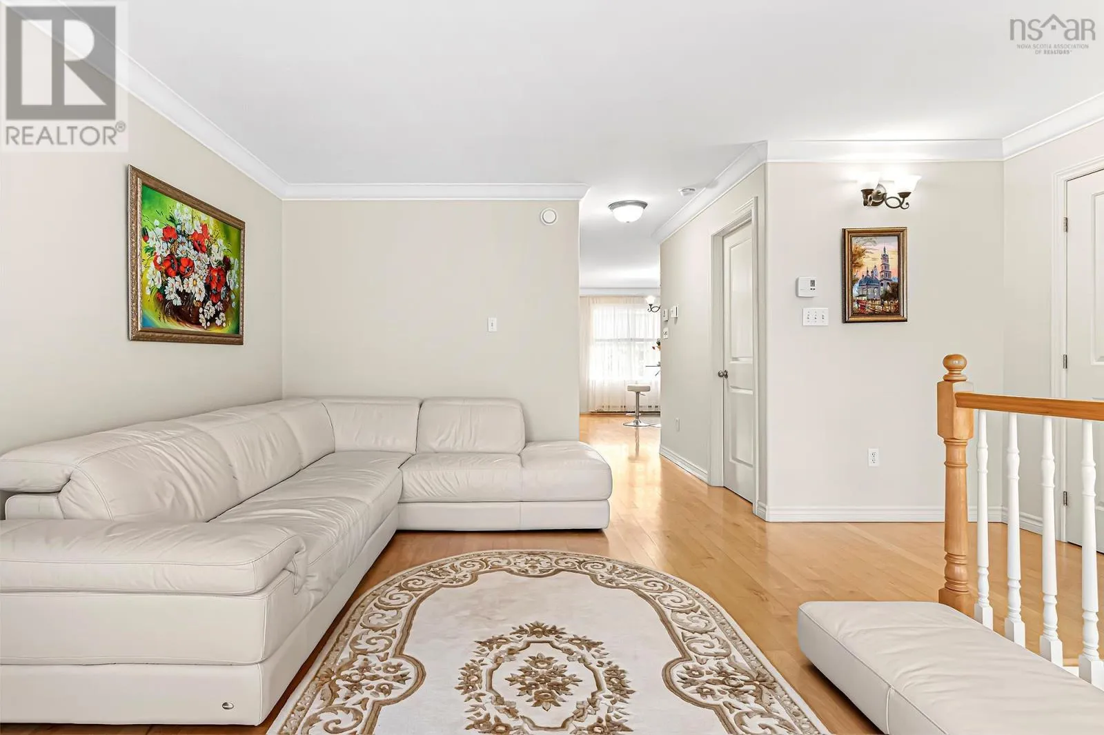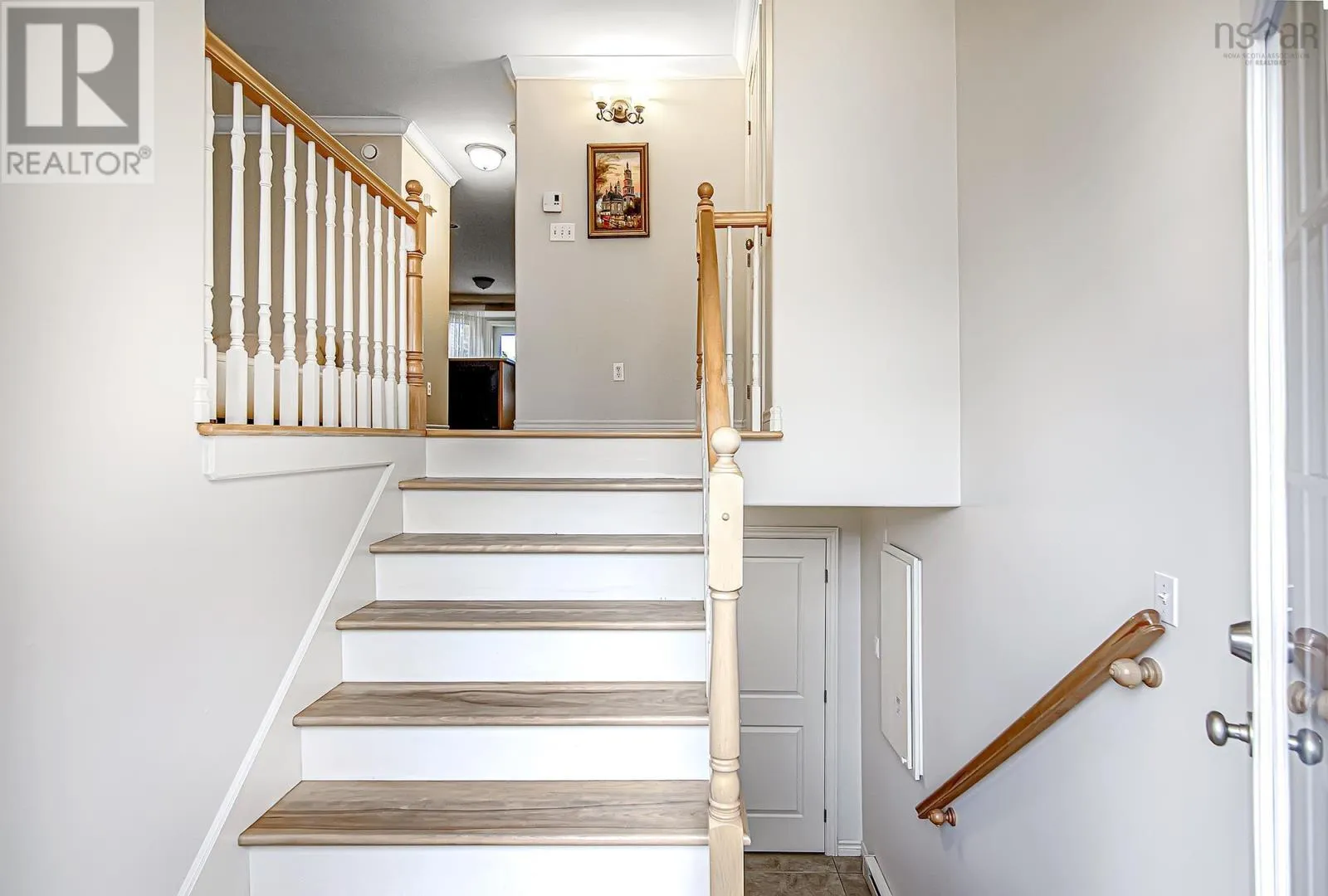 Larry Uteck, to Starboard, to Brigadier Welcome to modern living in Royal Hemlock, Halifax! This clean, bright, and freshly painted townhouse offers convenience and comfort. As you step inside, you'll immediately notice how well-maintained this home is. The welcoming entrance leads you to the main floor, featuring open-concept living spaces with hardwood floors throughout. The spacious living room flows seamlessly into the kitchen and dining area, which opens onto a good-sized deck overlooking a serene greenbelt. A convenient powder room completes the main level. Upstairs, you'll find a large primary suite with a walk-in closet and a full ensuite bathroom. Two additional well-proportioned bedrooms, a main bathroom, and a laundry room provide ample space and convenience. The downstairs area boasts a large recreation room with a walk-out to a private patio, a half bathroom, plenty of storage, and a single-car garage. (id:27476)