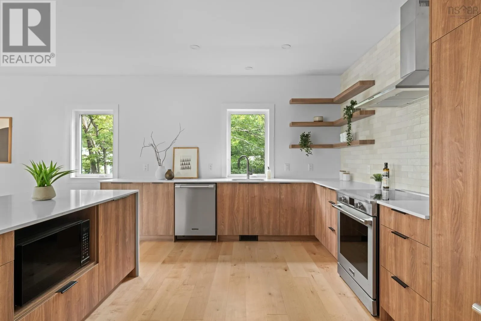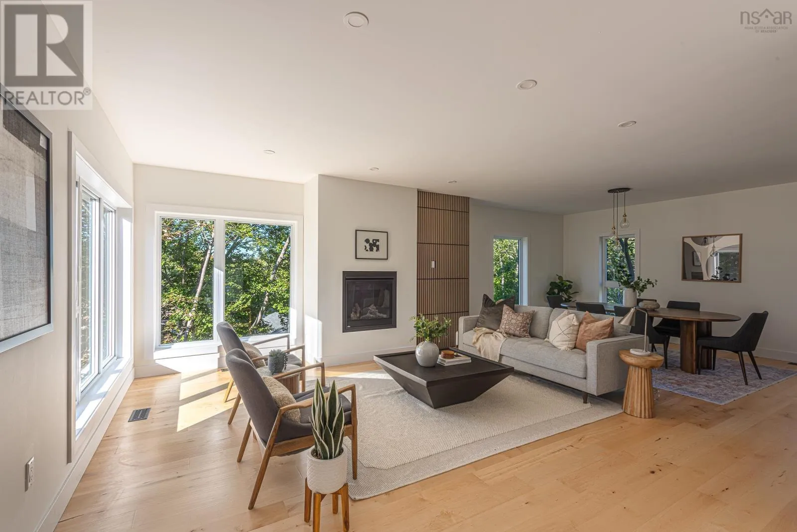 Herring Cove Rd to Purcells Cove Rd. Destination will be on the left after 6.3km. Introducing 3080 Purcells Cove Road - a striking new residence by Rosebank Homes in collaboration with award-winning RHAD Architects. This 3,079 sq ft contemporary home blends architectural vision with modern livability, offering 4 bedrooms, 3.5 baths, and a setting defined by water views and natural beauty. A sculptural open-riser staircase sets the stage upon entry, leading to a main level where clean lines and warm textures converge. The open-concept living space features engineered hardwood floors, a propane fireplace, and floor-to-ceiling windows that draw in natural light, while the chefs kitchen shines with quartz countertops, custom cabinetry, and premium Frigidaire Professional appliances. Upstairs, the vaulted primary suite feels like a retreat, with views across the Arm and a spa-inspired ensuite with dual sinks, in-floor heating, and walk-in shower. Two additional bedrooms, a full bath, and laundry complete the upper level, while the fully developed lower level offers a versatile rec room, fourth bedroom, full bath, and abundant storage. Anchored within one of Halifaxs most coveted coastal communities, this home invites exploration. Hike the Purcells Cove Backlands, swim in Williams Lake or Purcells Pond, or watch the sunset from the rugged headlands - all moments from your door. When you're ready to explore further, you're perfectly positioned - 15 minutes to Halifax's vibrant waterfront and cultural district, 25 minutes to the pristine shores of Crystal Crescent Beach. 3080 Purcells Cove Road is not just a residence-it is an architectural statement, perfectly poised between city and sea. (id:27476)