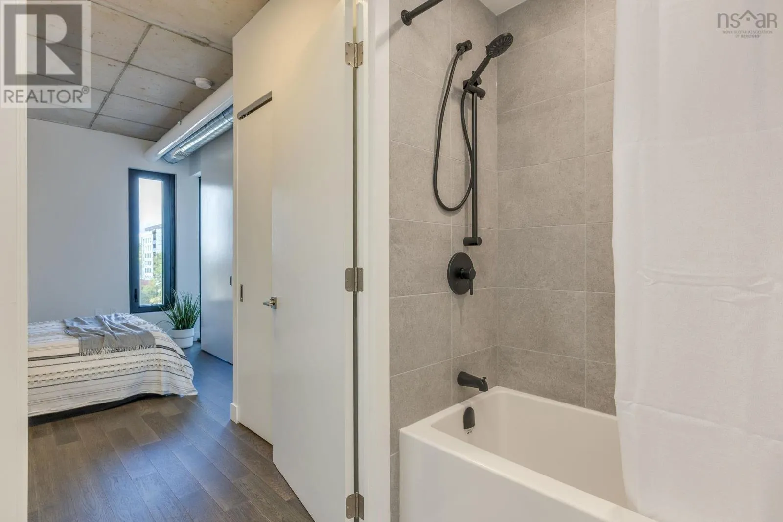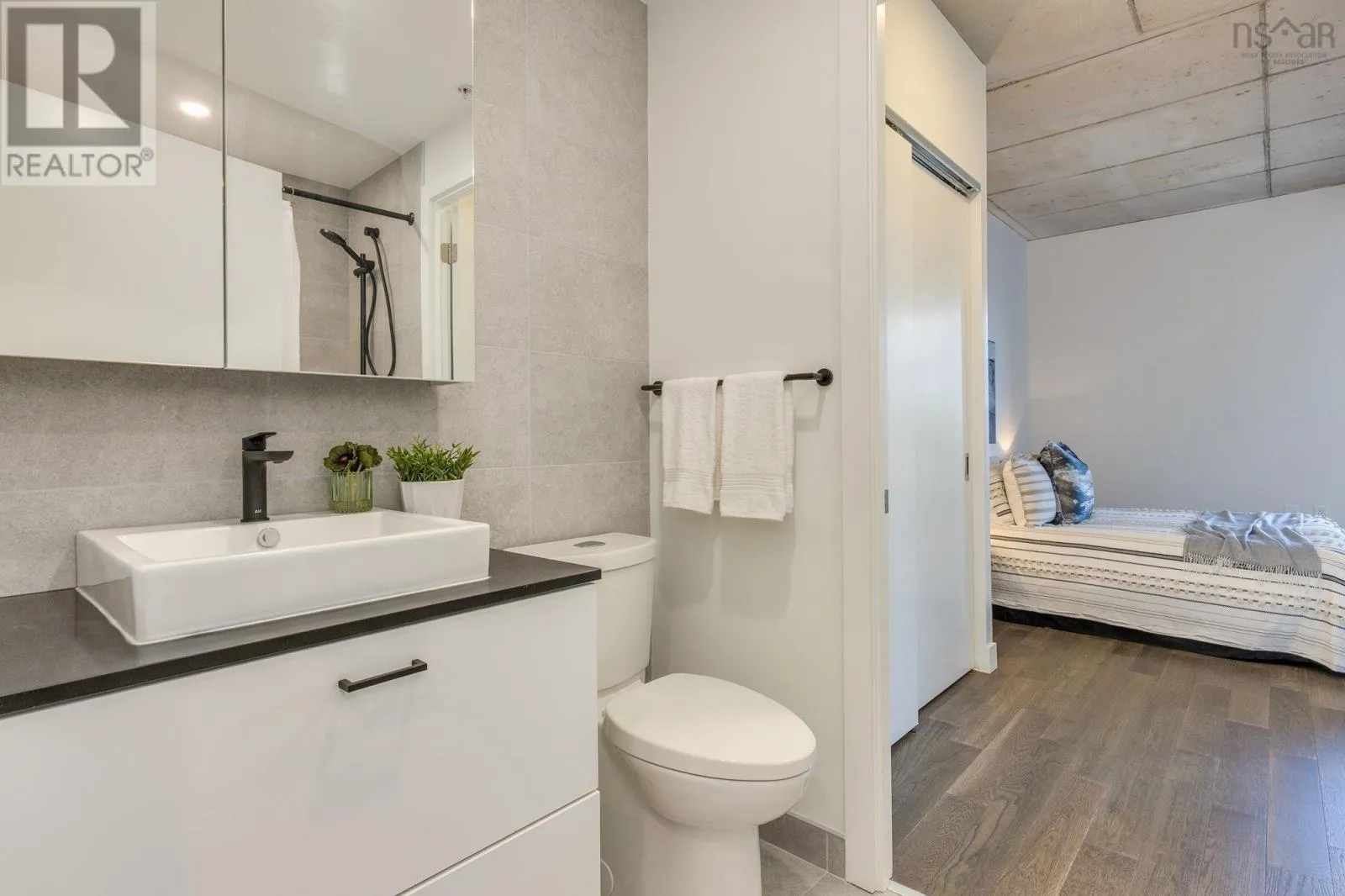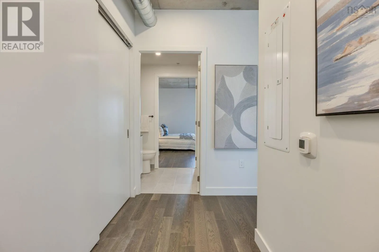 The corner of Gottingen Street and Bilby Street Step into a lifestyle of comfort, design, and unbeatable convenience in this brand-new 1-bedroom, 1-bath condo at NRTH, Halifaxs newest boutique building. Just steps from the Hydrostone Market, top-rated restaurants, cafés, parks, and everyday amenities, this home is nestled in one of the citys most vibrant and walkable neighbourhoods. Inside, the condo showcases a modern, minimalist design with an open layout that maximizes functionality. Thoughtful finishes like quartz countertops, a sleek kitchen, and an exposed concrete accent wall add style and character. The versatile main living area adapts easily to your lifestyle, while the spacious primary bedroom features a walk-through closet with excellent storage that connects to the bathroom for everyday comfort and convenience.Low condo fees and thoughtful building amenities set this property apart: enjoy a fully equipped gym, yoga room, outdoor patio, bike storage, and efficient natural gas heating/cooling. Whether youre searching for a chic new home or a smart investment, this condo delivers on every front. (id:27476)