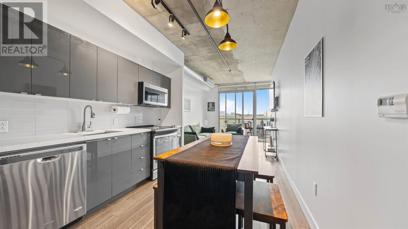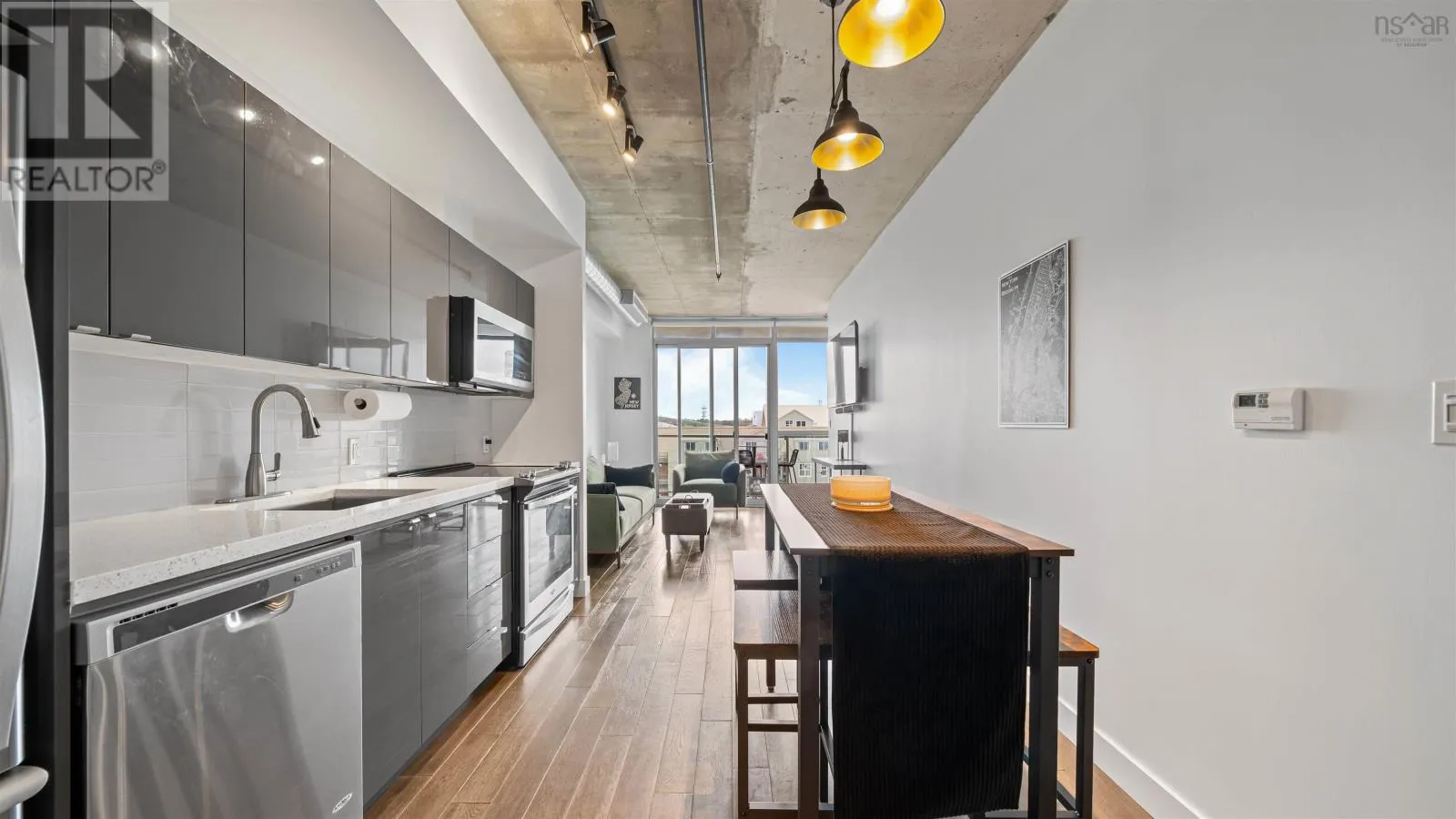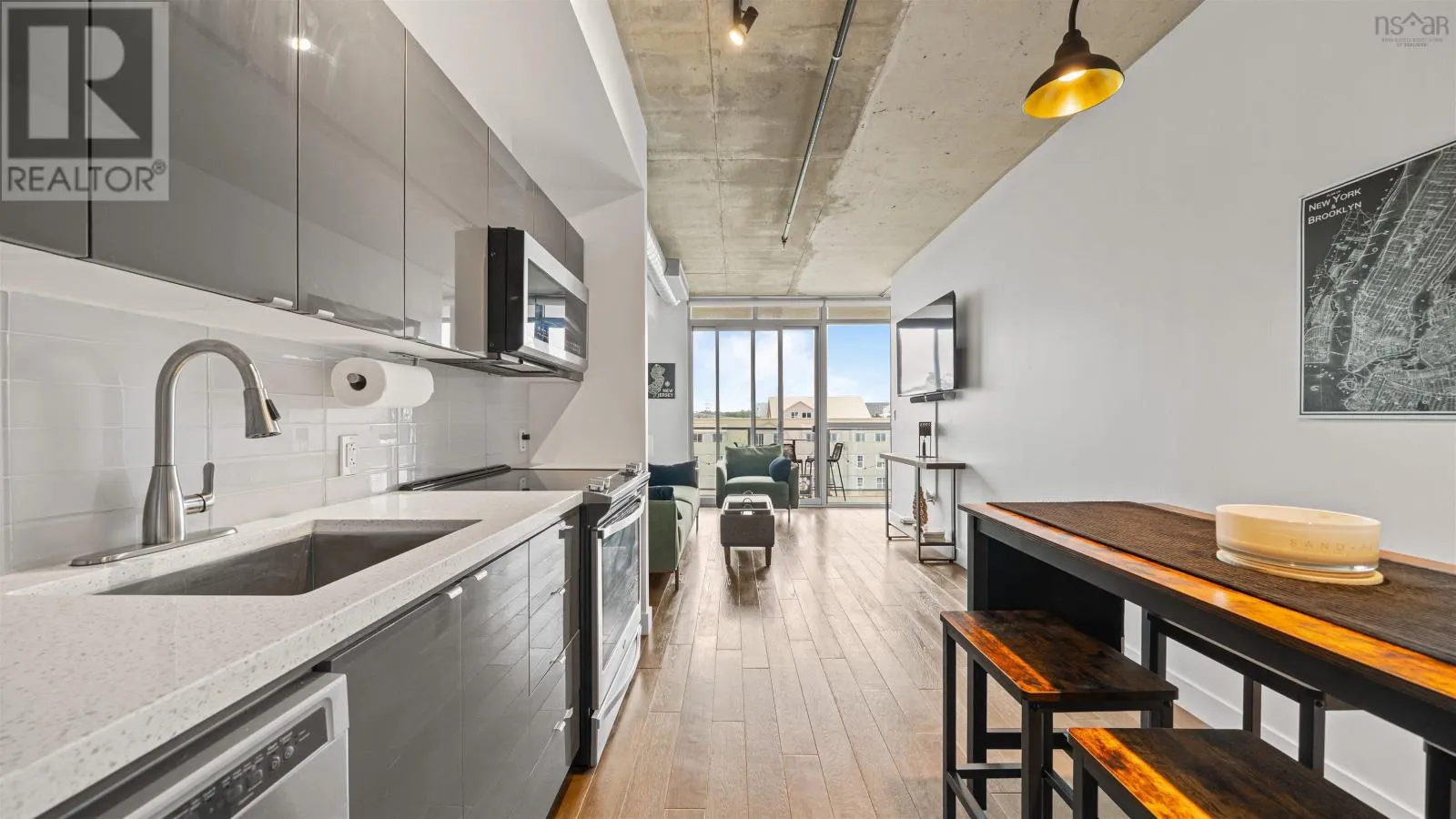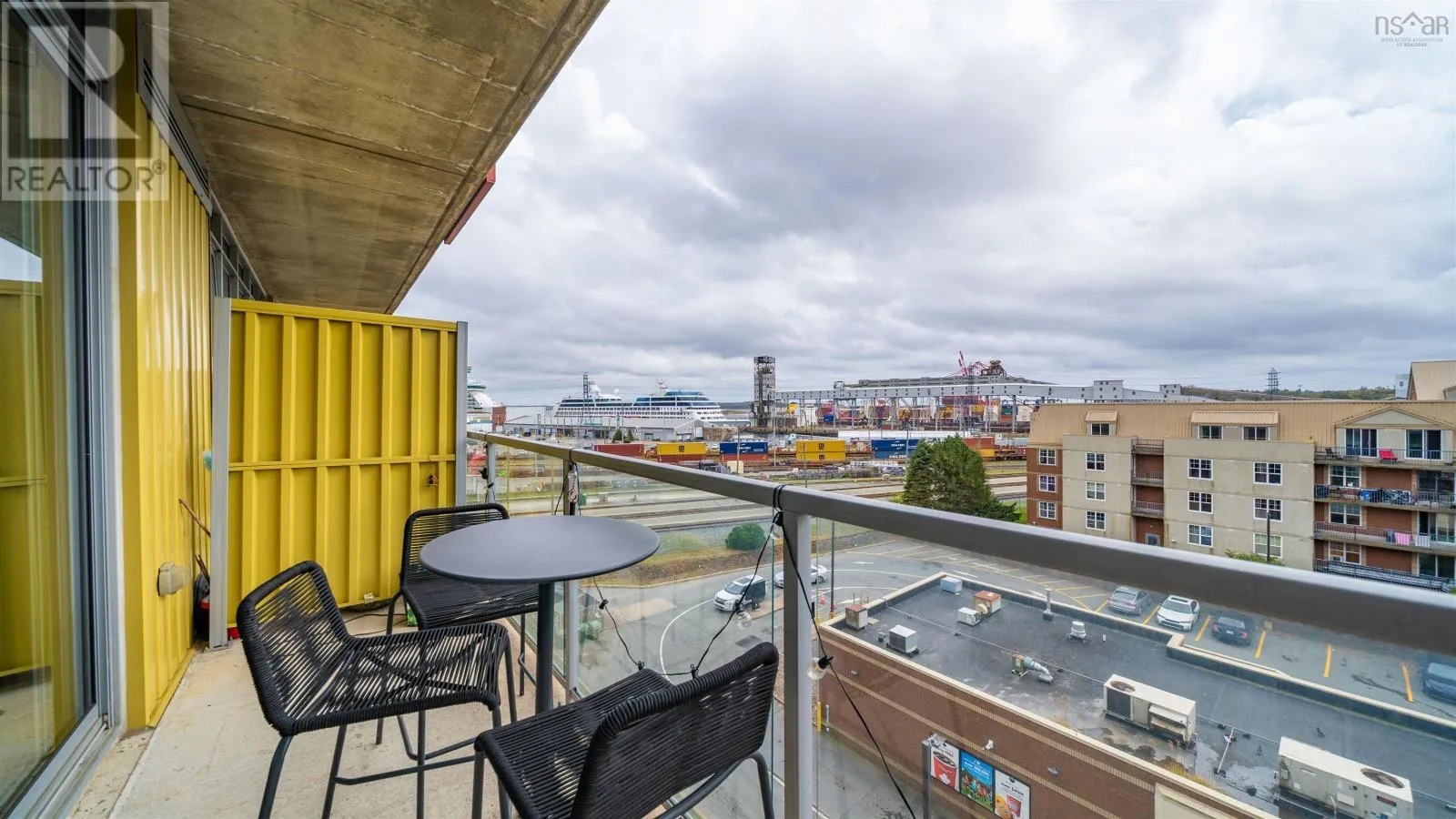 end of Barrington - south Urban charm meets waterfront living.Welcome to Southport Condos a striking blend of Halifaxs historic charm and modern sophistication. Perfectly situated in the heart of downtown, this 1-bedroom + den condo placesyou within walking distance of the waterfront boardwalk, Point Pleasant Park, universities, world-class dining, and the vibrant energy of the South End of Barrington Street.Step inside and be immediately drawn to the 9 exposed concrete ceilings, quartz countertops, and industrial-inspired finishes that define this elegant yet contemporary space. Theopen-concept layout flows seamlessly to a spacious private deck the perfect spot to start your morning coffee or unwind in the evening as you watch cruise ships glide into theharbour.This well-managed building offers exceptional amenities, including a fully equipped fitness centre, an impressive rooftop patio ideal for entertaining, and secure undergroundparking. The low condo fees of just $284.09 make this property as practical as it is beautiful.Whether youre a young professional seeking the convenience of downtown living, an investor looking for a strong rental opportunity, or someone ready to downsize without compromise Unit 515 at 1065 Barrington offers the lifestyle youve been waiting for.Dont miss your chance to own a piece of Halifaxs iconic waterfront energy. (id:27476)