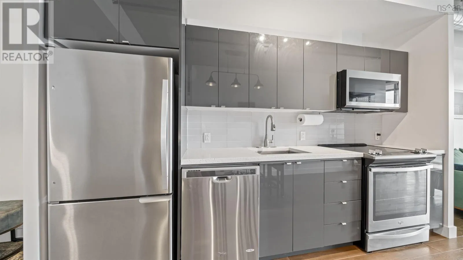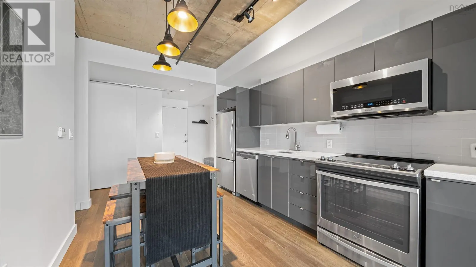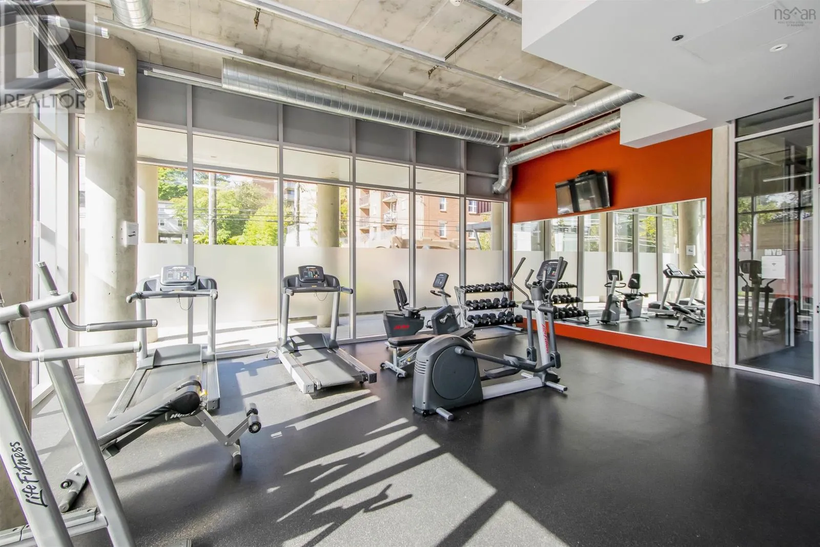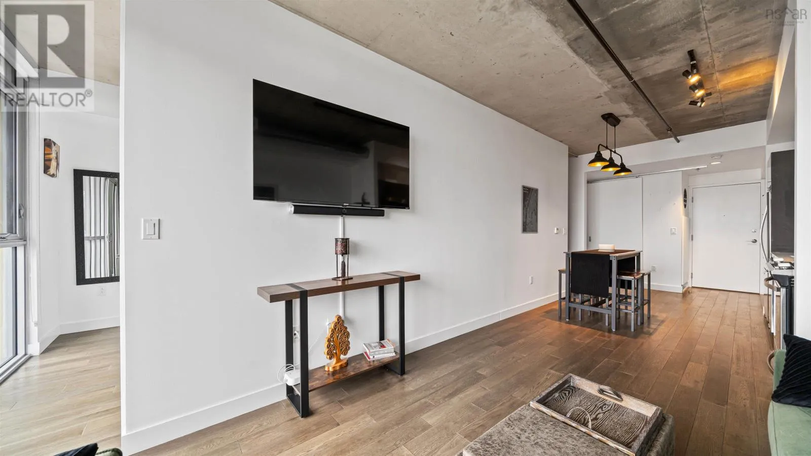 end of Barrington - south Urban charm meets waterfront living.Welcome to Southport Condos a striking blend of Halifaxs historic charm and modern sophistication. Perfectly situated in the heart of downtown, this 1-bedroom + den condo placesyou within walking distance of the waterfront boardwalk, Point Pleasant Park, universities, world-class dining, and the vibrant energy of the South End of Barrington Street.Step inside and be immediately drawn to the 9 exposed concrete ceilings, quartz countertops, and industrial-inspired finishes that define this elegant yet contemporary space. Theopen-concept layout flows seamlessly to a spacious private deck the perfect spot to start your morning coffee or unwind in the evening as you watch cruise ships glide into theharbour.This well-managed building offers exceptional amenities, including a fully equipped fitness centre, an impressive rooftop patio ideal for entertaining, and secure undergroundparking. The low condo fees of just $284.09 make this property as practical as it is beautiful.Whether youre a young professional seeking the convenience of downtown living, an investor looking for a strong rental opportunity, or someone ready to downsize without compromise Unit 515 at 1065 Barrington offers the lifestyle youve been waiting for.Dont miss your chance to own a piece of Halifaxs iconic waterfront energy. (id:27476)