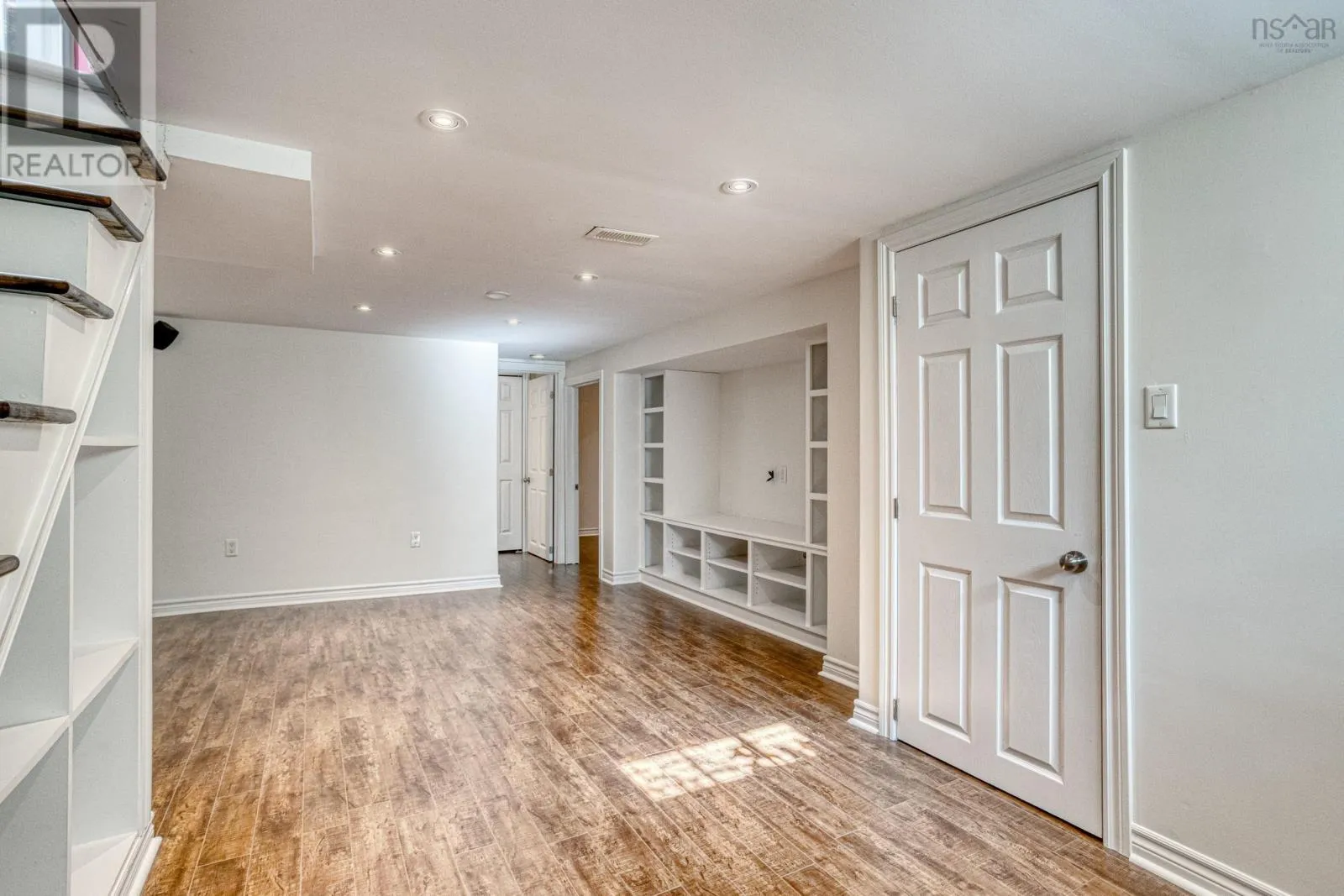 Bedford Hwy to Fern Ave, left on Dowell Dr. Attention first time buyers! Discover peaceful living in Fernleigh Park, Rockingham, one of Bedfords most convenient and sought-after neighborhoods. This charming 3-bedroom, 1.5-bath family home sits on a beautiful 8,400 sq. ft. corner lot, offering the perfect blend of comfort, character, and privacy. Inside, sunlight pours through the large picture windows of the inviting living room, highlighting the wood fireplace and refinished original hardwood floors. The formal dining room provides a welcoming space for family meals, while the spacious kitchen offers excellent counter space, ample storage, with direct access to the ground-level deck, perfect for outdoor entertaining and featuring a convenient propane hookup for your BBQ. Down the hall, youll find three generous bedrooms and an updated full bath, providing a cozy retreat for the whole family. The finished lower level expands your living space with a comfortable family room with built-ins, a flexible office or hobby area, and a convenient half bath with laundry. Additional features include a freshly painted interior, an attached single-car garage, double driveway and a utility room with extra storage. With a new septic system recently installed, this home is move-in ready and worry-free. Enjoy a quiet, tree-lined setting close to everythingminutes to Larry Uteck Blvd, Hemlock Ravine Park, and just 20 minutes to downtown Halifax or 15 minutes to Bayers Lake. This Rockingham gem combines timeless charm with modern conveniencean ideal place to start your next chapter. (id:27476)
