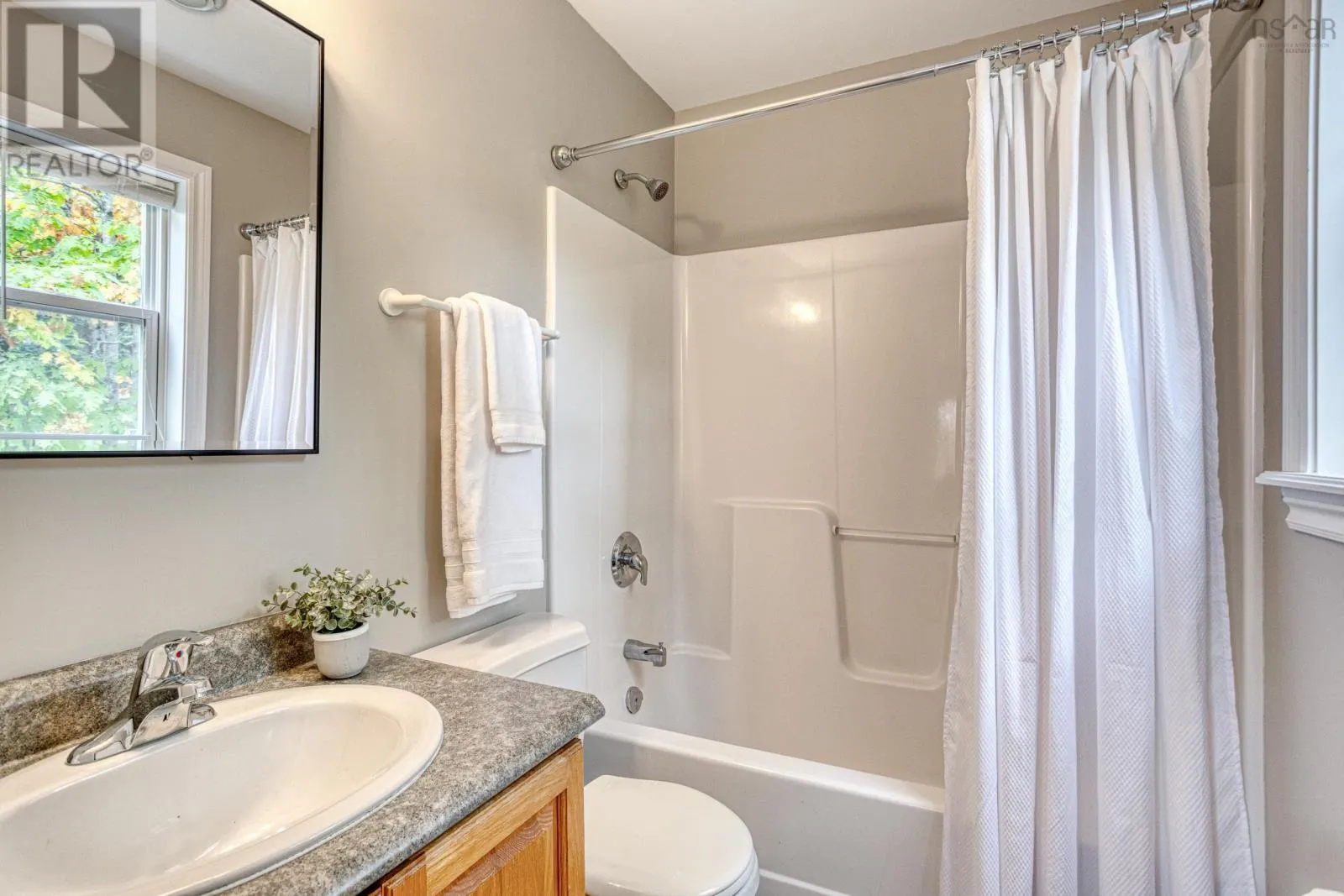 Dunbrack to Rockhaven Welcome to Rockhaven Drive, a mature tree-lined street with views of the Bedford Basin and minutes to the peninsula. 4B boasts the perfect floorplan. A main level perfect for entertaining with its inviting living area, dining room for dinner parties and a very generous kitchen leading to a private patio. To complete the package, there is a convenient powder room. The upper level offers a primary suite with full bath and walk in closet, plus its own deck, the perfect perch to enjoy your morning coffee while enjoying basin views. There are two additional bedrooms, a three piece bath and upper level laundry as an added convenience. The lower level consists of a generous garage space with its own exterior entrance and an added bonus! Located off the garage is a finished flex space with its own attached bath which makes the perfect home office. With a 2nd laundry hook up present, this area could also work well as a home based aesthetics business. The possibilities are endless! (id:27476)