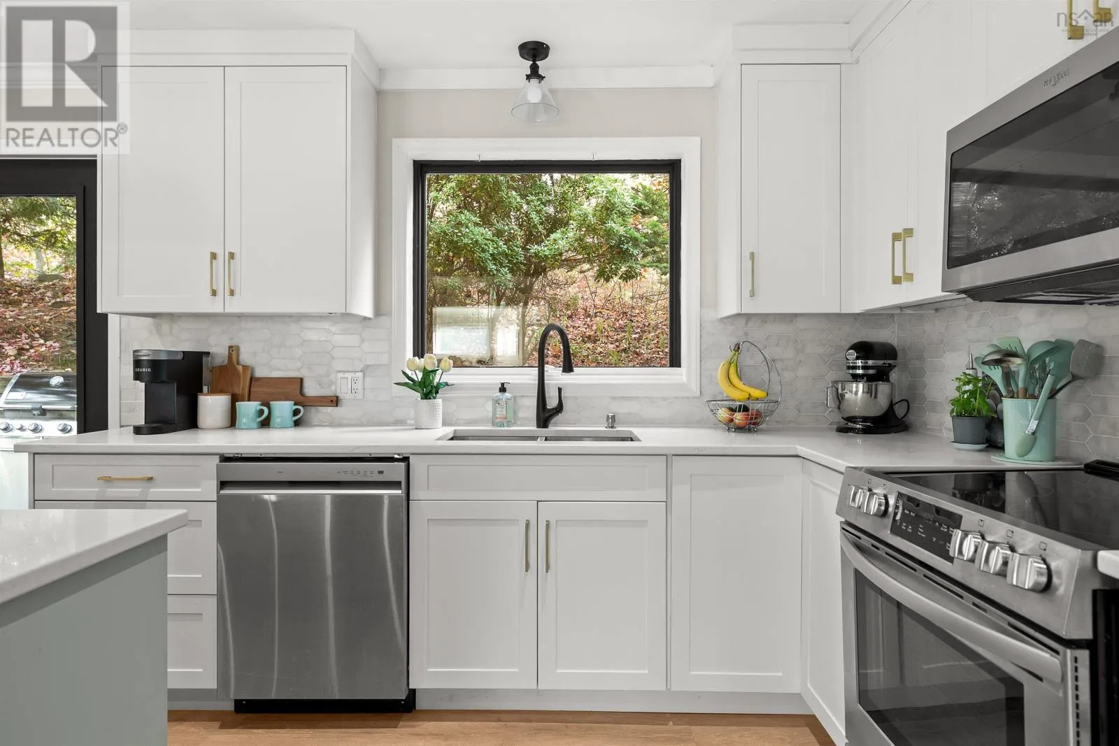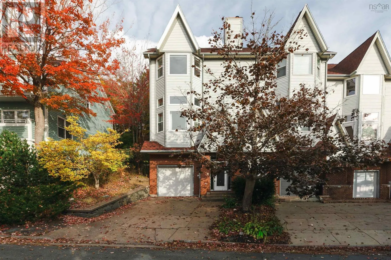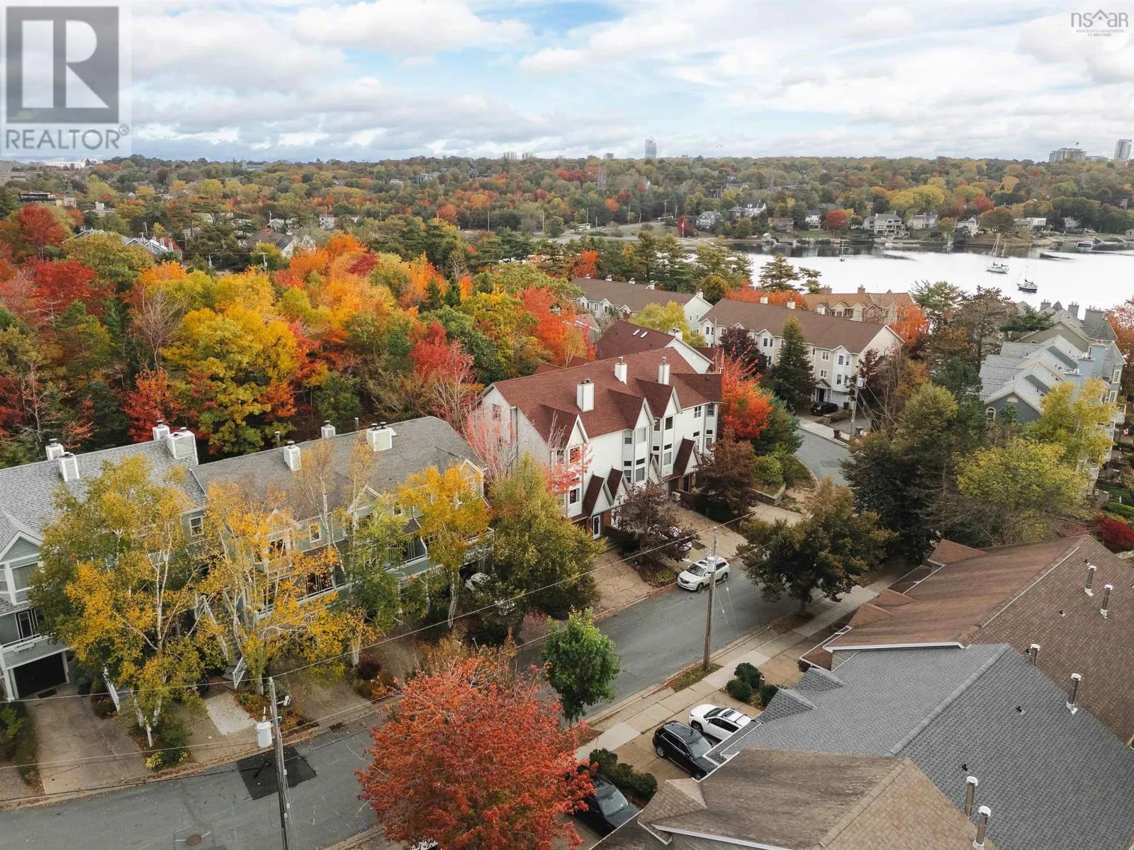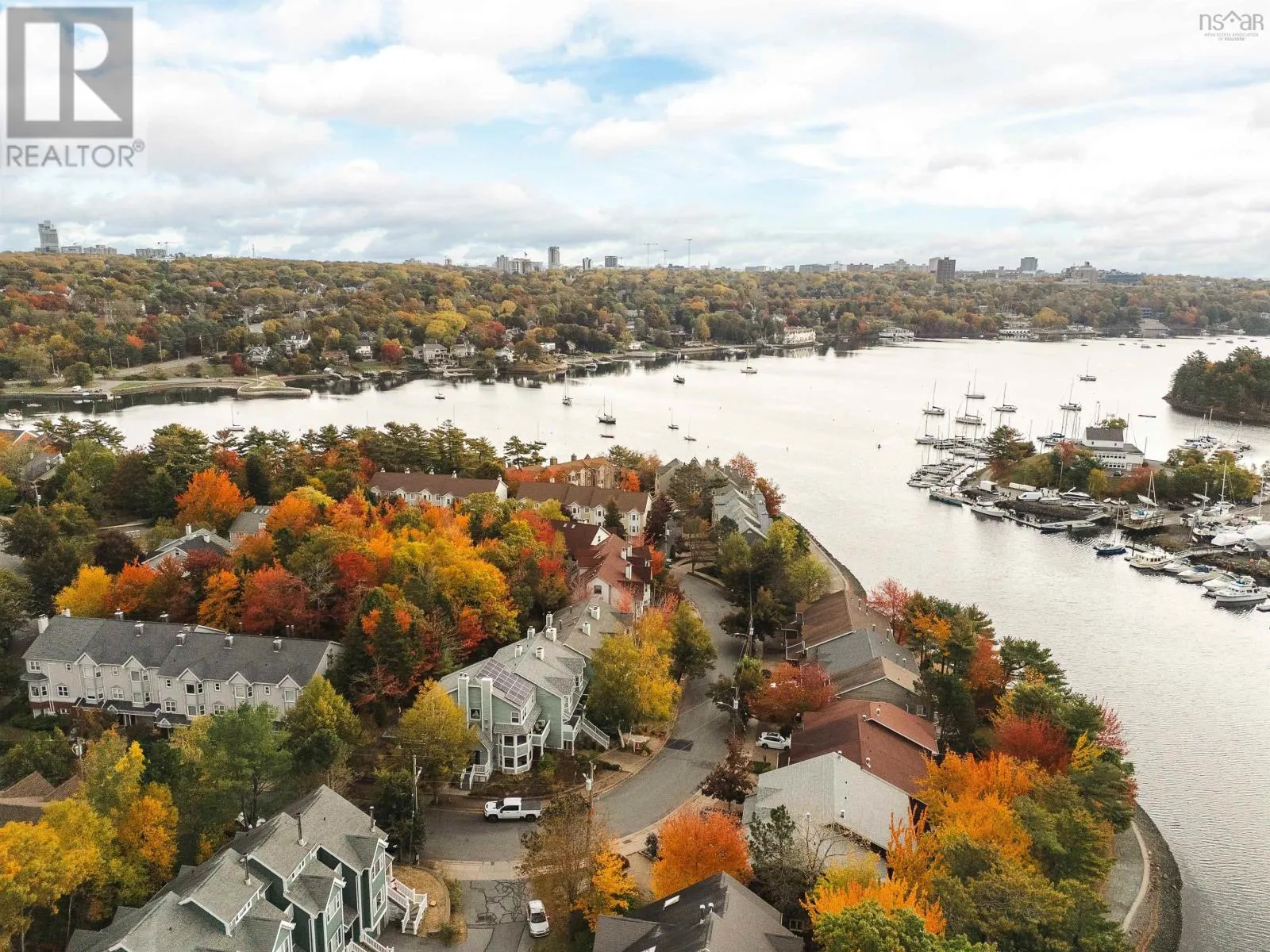 Purcell Cove Road to Anchor to Spinnaker Welcome to 201 Spinnaker Drive, an elegant seaside townhome in the highly sought-after Regatta Point community, one of Halifaxs most picturesque enclaves where coastal living meets urban convenience. Step inside to a spacious foyer with access to the garage, leading up to the second level featuring a bright bedroom or den and a full bathroom, ideal for guests or a home office. The third floor invites you to the heart of the home: a sunken living room with oversized windows and a cozy fireplace that set the tone for warmth and comfort. The adjoining dining area flows seamlessly into the custom Mother Hubbards kitchen (2022), a true showpiece complete with quartz countertops, a spacious island, built-ins, pendant lighting, and new appliances including a fridge and stove (2022), dishwasher (2023), and washer and dryer (2022). This level opens onto a private, sun-soaked deck surrounded by mature trees, the perfect spot to unwind or entertain. The home has been painted top to bottom (2022) with the front exterior refreshed (2025), adding to its crisp curb appeal. Upstairs, the expansive primary suite features dual closets and water views, while two additional bedrooms (currently combined for an extra-spacious layout) and a full main bath complete this level. The loft offers a versatile flex space filled with natural light from skylights, perfect for a studio, fourth bedroom, or peaceful retreat. Additional updates include two new ductless heat pumps (Dec 2023), a new front roof (2024), and thoughtful design upgrades throughout. Finished on all five levels with an attached garage, this townhome blends timeless style with modern convenience. Just steps from your door, enjoy scenic coastal walking trails, the Armdale Yacht Club, and the vibrant amenities of downtown HalifaxRegatta Point truly offers the best of both worlds: serene seaside living with the energy of the city at your fingertips. (id:27476)