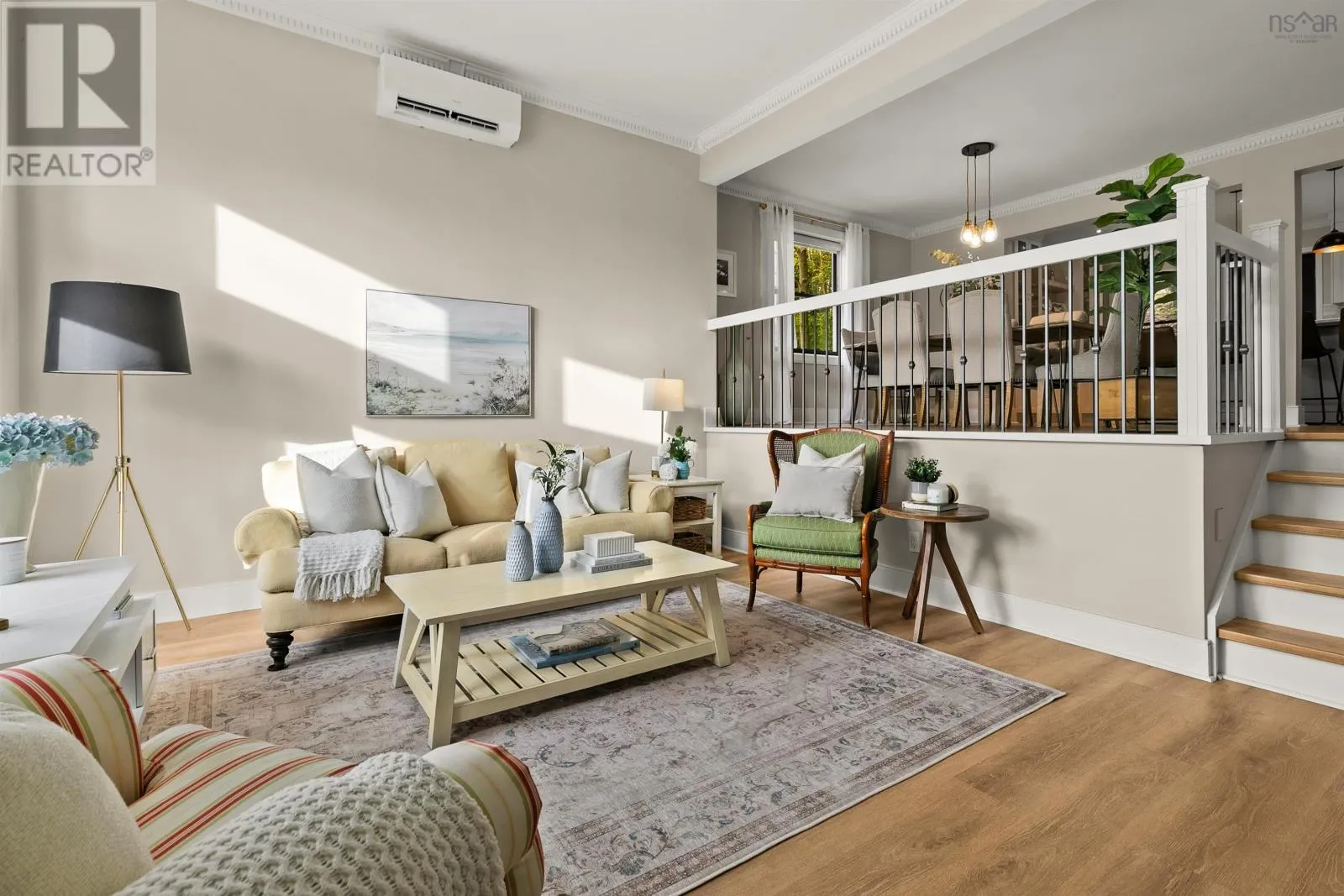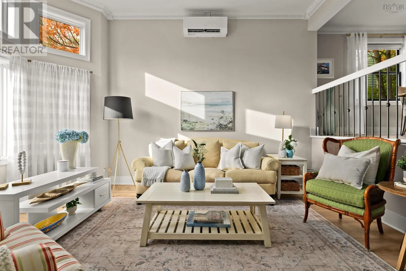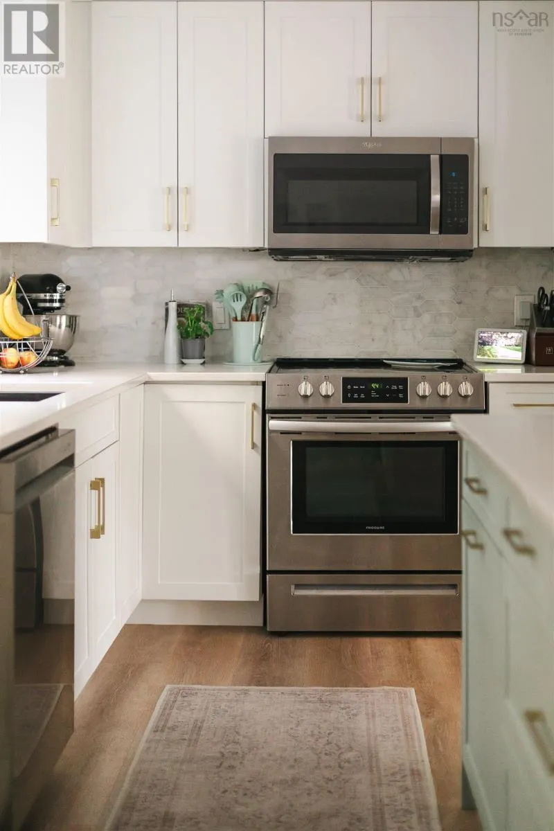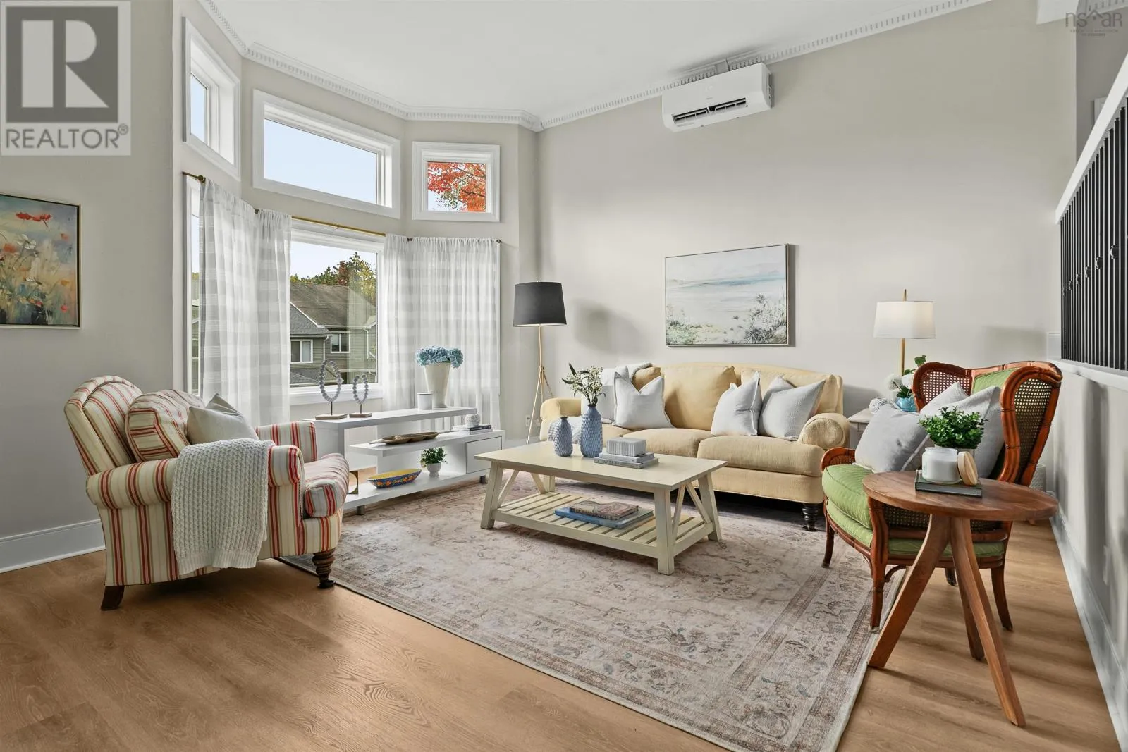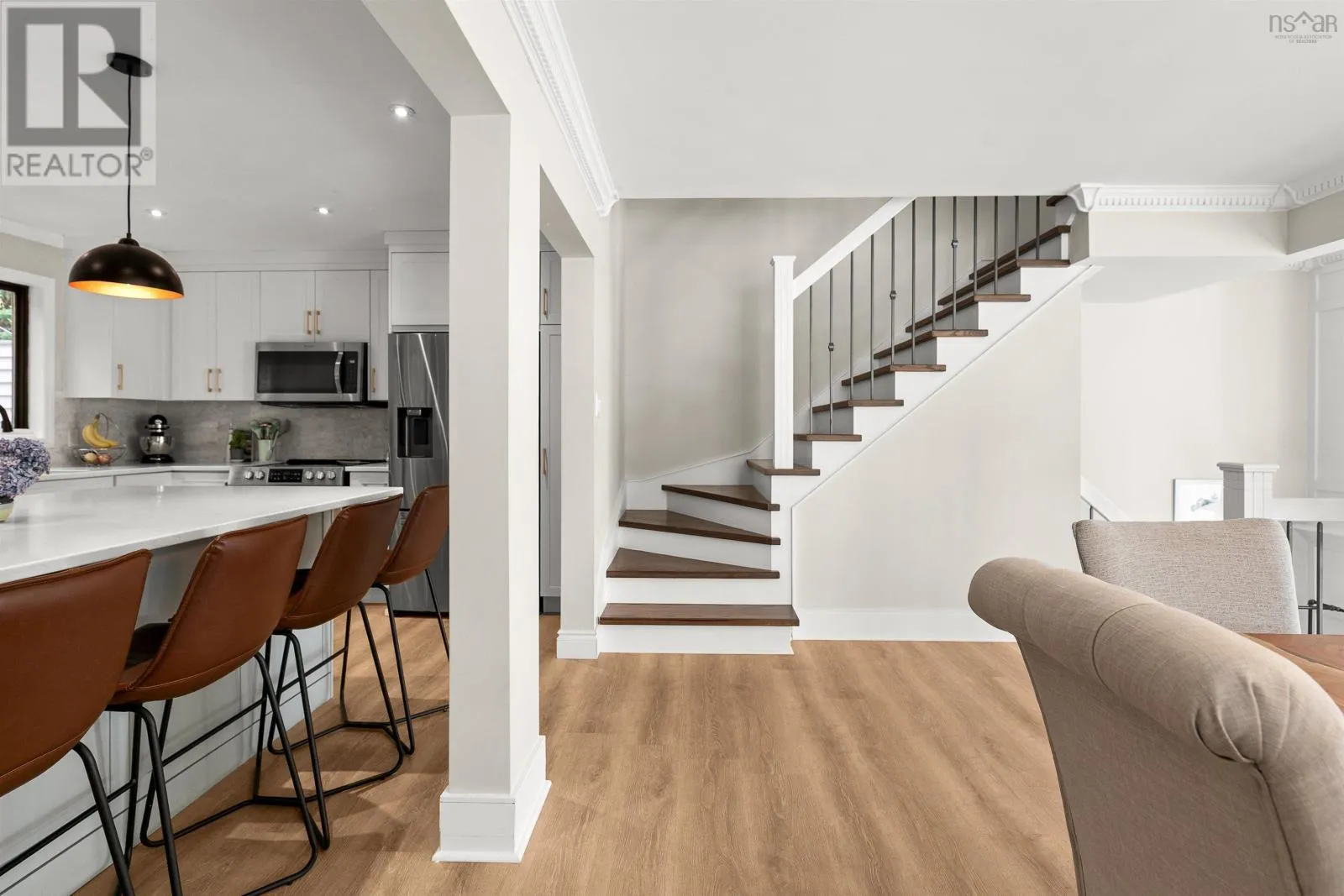 Purcell Cove Road to Anchor to Spinnaker Welcome to 201 Spinnaker Drive, an elegant seaside townhome in the highly sought-after Regatta Point community, one of Halifaxs most picturesque enclaves where coastal living meets urban convenience. Step inside to a spacious foyer with access to the garage, leading up to the second level featuring a bright bedroom or den and a full bathroom, ideal for guests or a home office. The third floor invites you to the heart of the home: a sunken living room with oversized windows and a cozy fireplace that set the tone for warmth and comfort. The adjoining dining area flows seamlessly into the custom Mother Hubbards kitchen (2022), a true showpiece complete with quartz countertops, a spacious island, built-ins, pendant lighting, and new appliances including a fridge and stove (2022), dishwasher (2023), and washer and dryer (2022). This level opens onto a private, sun-soaked deck surrounded by mature trees, the perfect spot to unwind or entertain. The home has been painted top to bottom (2022) with the front exterior refreshed (2025), adding to its crisp curb appeal. Upstairs, the expansive primary suite features dual closets and water views, while two additional bedrooms (currently combined for an extra-spacious layout) and a full main bath complete this level. The loft offers a versatile flex space filled with natural light from skylights, perfect for a studio, fourth bedroom, or peaceful retreat. Additional updates include two new ductless heat pumps (Dec 2023), a new front roof (2024), and thoughtful design upgrades throughout. Finished on all five levels with an attached garage, this townhome blends timeless style with modern convenience. Just steps from your door, enjoy scenic coastal walking trails, the Armdale Yacht Club, and the vibrant amenities of downtown HalifaxRegatta Point truly offers the best of both worlds: serene seaside living with the energy of the city at your fingertips. (id:27476)