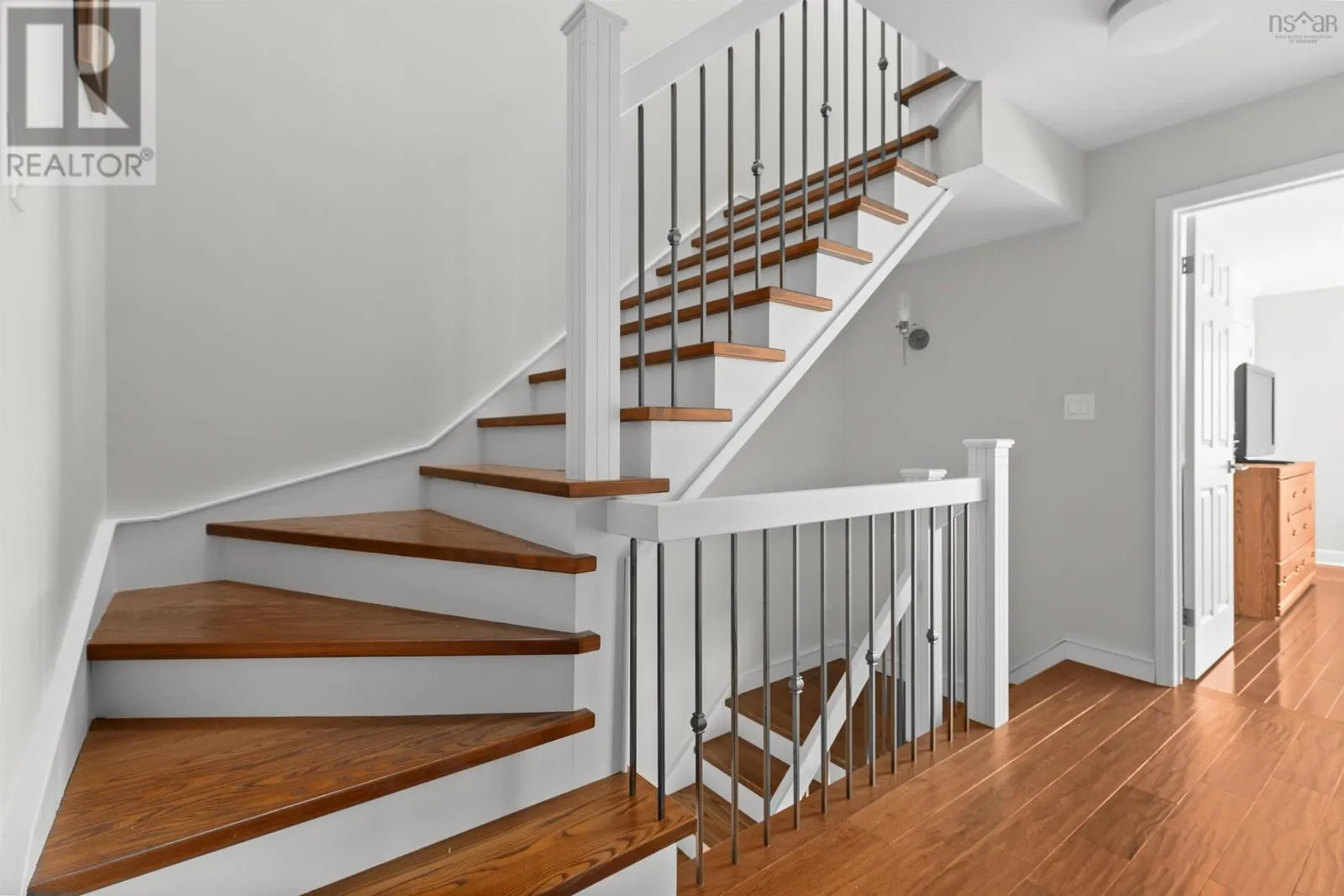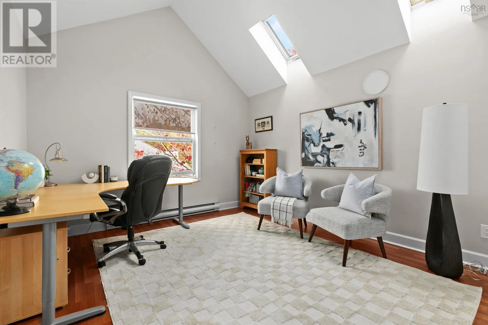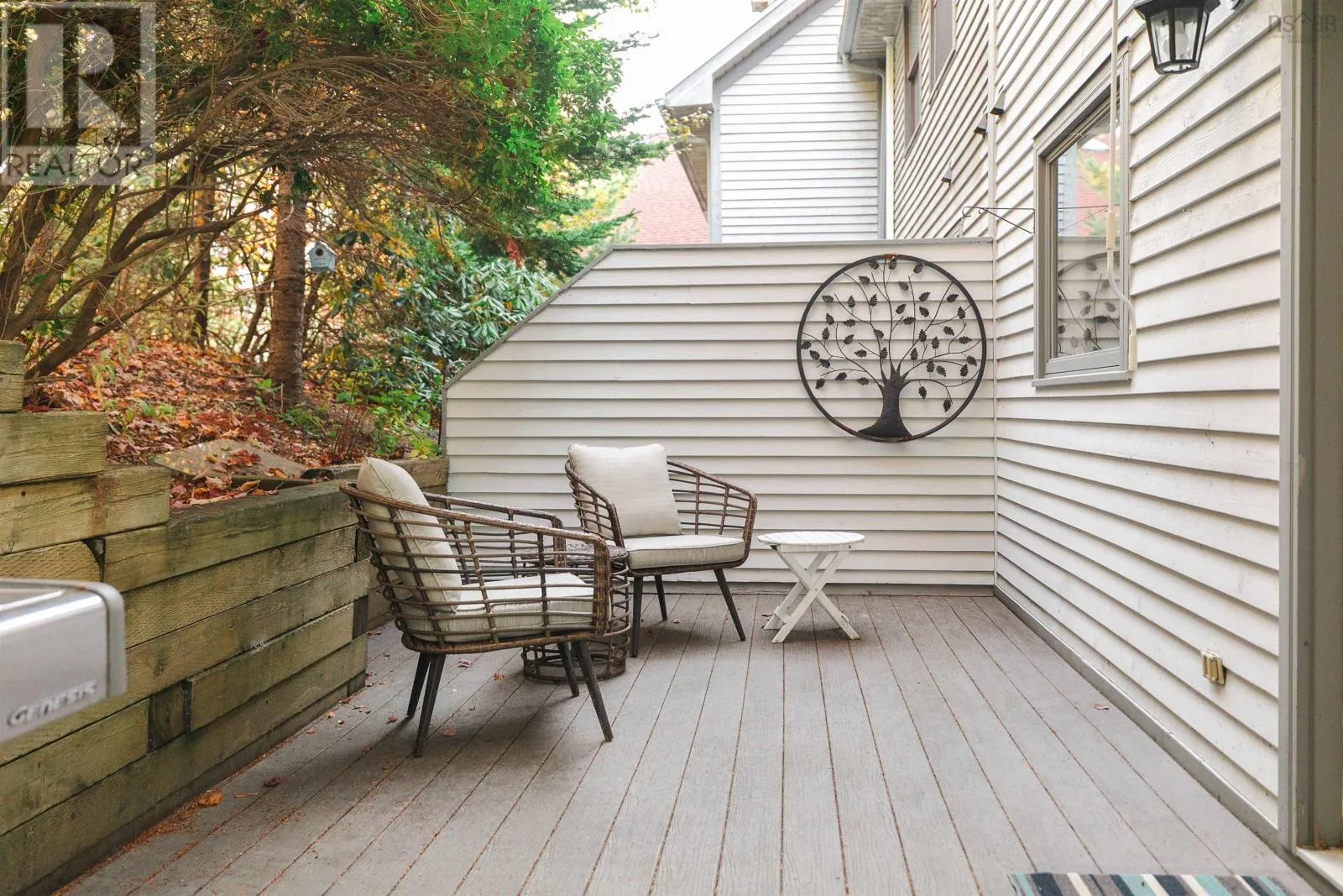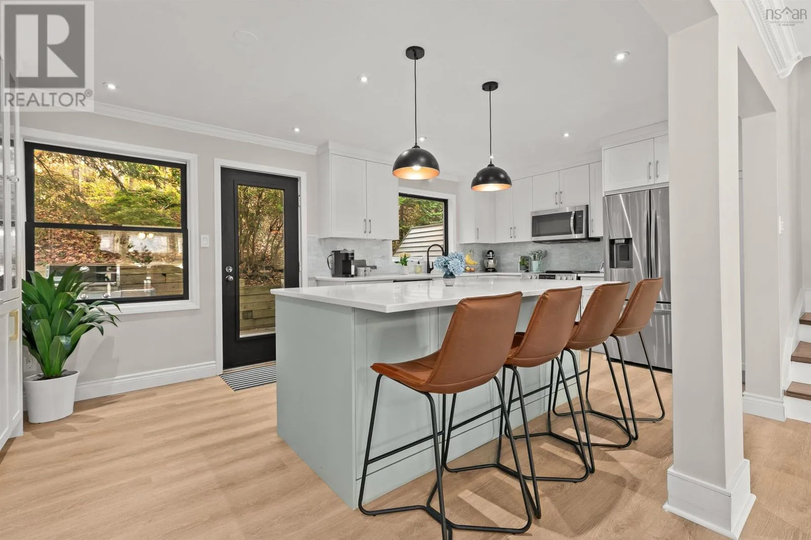 Purcell Cove Road to Anchor to Spinnaker Welcome to 201 Spinnaker Drive, an elegant seaside townhome in the highly sought-after Regatta Point community, one of Halifaxs most picturesque enclaves where coastal living meets urban convenience. Step inside to a spacious foyer with access to the garage, leading up to the second level featuring a bright bedroom or den and a full bathroom, ideal for guests or a home office. The third floor invites you to the heart of the home: a sunken living room with oversized windows and a cozy fireplace that set the tone for warmth and comfort. The adjoining dining area flows seamlessly into the custom Mother Hubbards kitchen (2022), a true showpiece complete with quartz countertops, a spacious island, built-ins, pendant lighting, and new appliances including a fridge and stove (2022), dishwasher (2023), and washer and dryer (2022). This level opens onto a private, sun-soaked deck surrounded by mature trees, the perfect spot to unwind or entertain. The home has been painted top to bottom (2022) with the front exterior refreshed (2025), adding to its crisp curb appeal. Upstairs, the expansive primary suite features dual closets and water views, while two additional bedrooms (currently combined for an extra-spacious layout) and a full main bath complete this level. The loft offers a versatile flex space filled with natural light from skylights, perfect for a studio, fourth bedroom, or peaceful retreat. Additional updates include two new ductless heat pumps (Dec 2023), a new front roof (2024), and thoughtful design upgrades throughout. Finished on all five levels with an attached garage, this townhome blends timeless style with modern convenience. Just steps from your door, enjoy scenic coastal walking trails, the Armdale Yacht Club, and the vibrant amenities of downtown HalifaxRegatta Point truly offers the best of both worlds: serene seaside living with the energy of the city at your fingertips. (id:27476)
